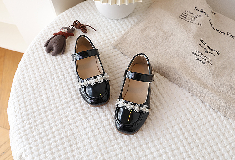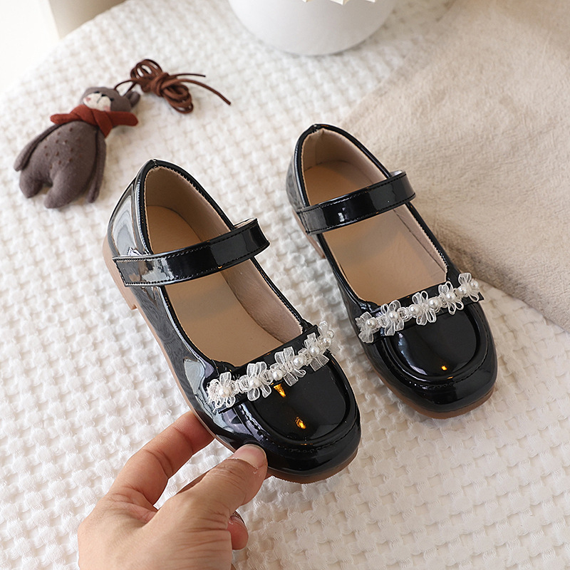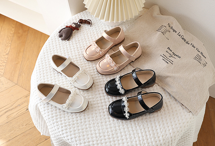 这双玛丽珍鞋,宛如童话中走出的梦幻单品。鞋面泛着柔和光泽,质感轻盈。精致的搭扣与蕾丝巧妙结合,缀满的珍珠似洒落的星辰,灵动又优雅。它将甜美与浪漫完美融合,穿上它,小女孩仿佛置身于绮丽梦境,每一步都踏出纯真与美好,无论是参加派对还是日常出行,都能成为众人瞩目的焦点,是童年时光里一抹温柔的亮色。