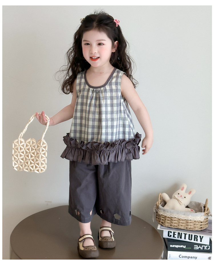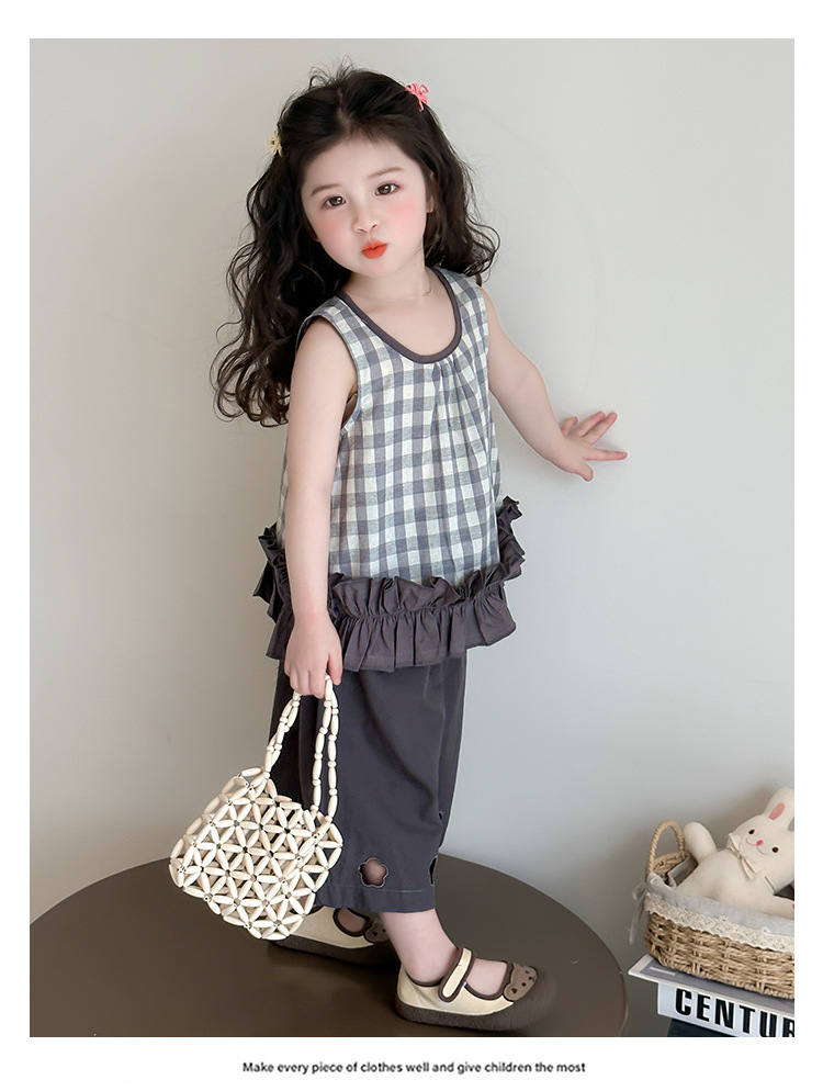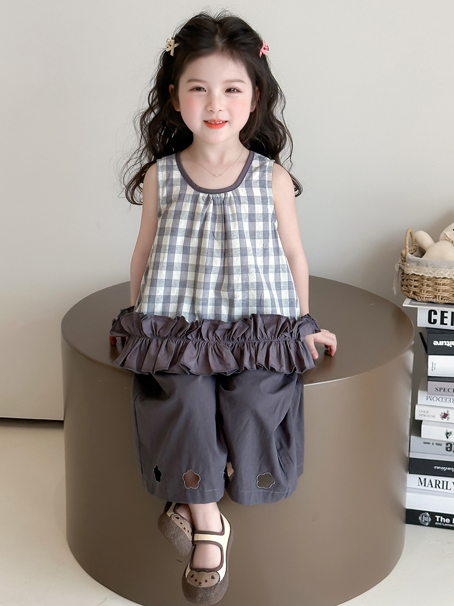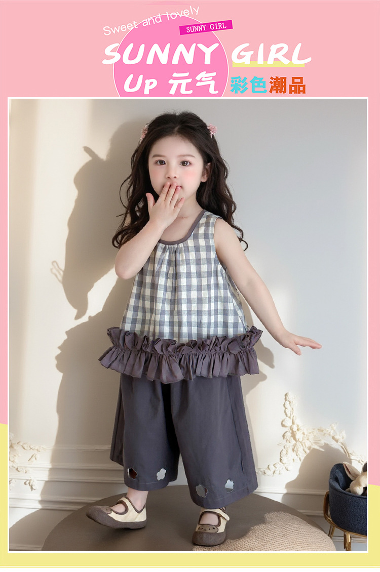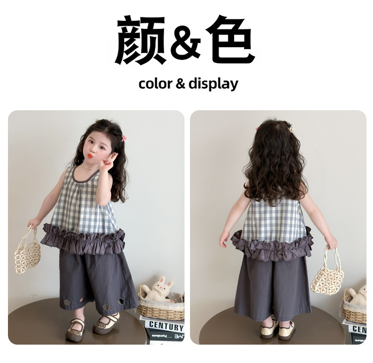 소녀 격자 무늬 캐주얼 세트 2025 여름 새로운 패션 소녀 세련된 투피스 세트 어린이 여름 원피스스토어 가기