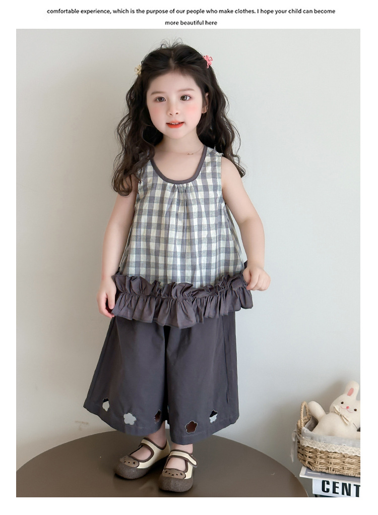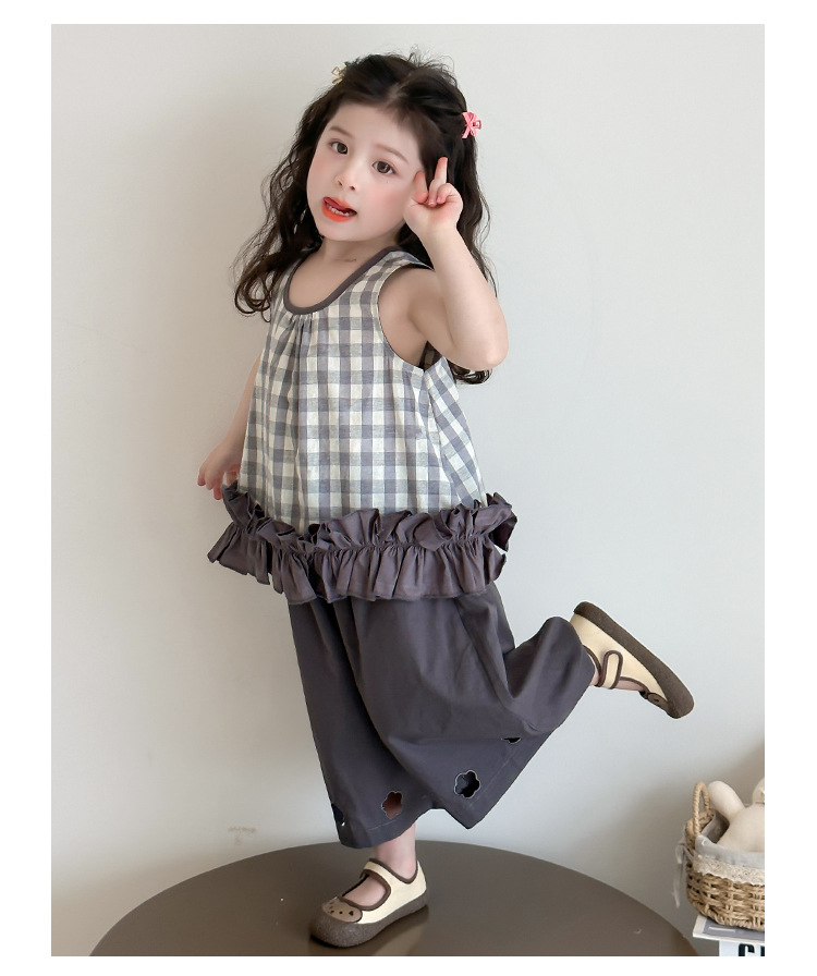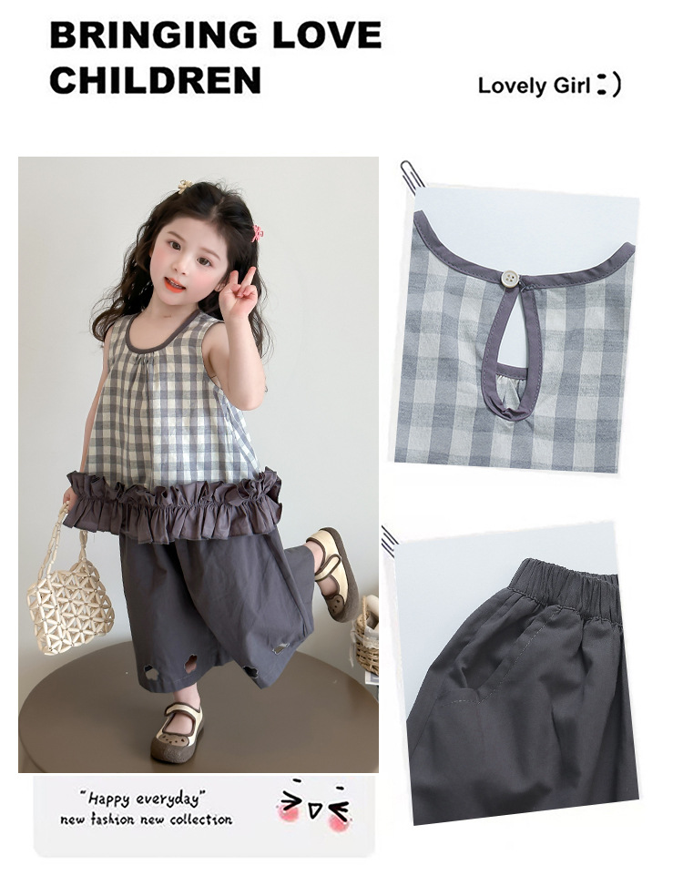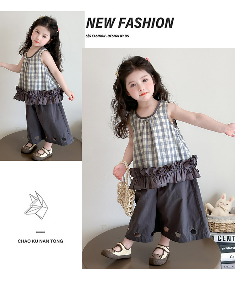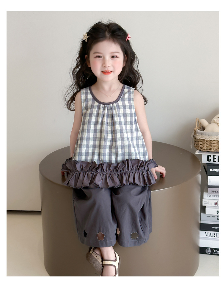 소녀 격자 무늬 캐주얼 세트 2025 여름 새로운 패션 소녀 세련된 투피스 세트 어린이 여름 원피스스토어 가기