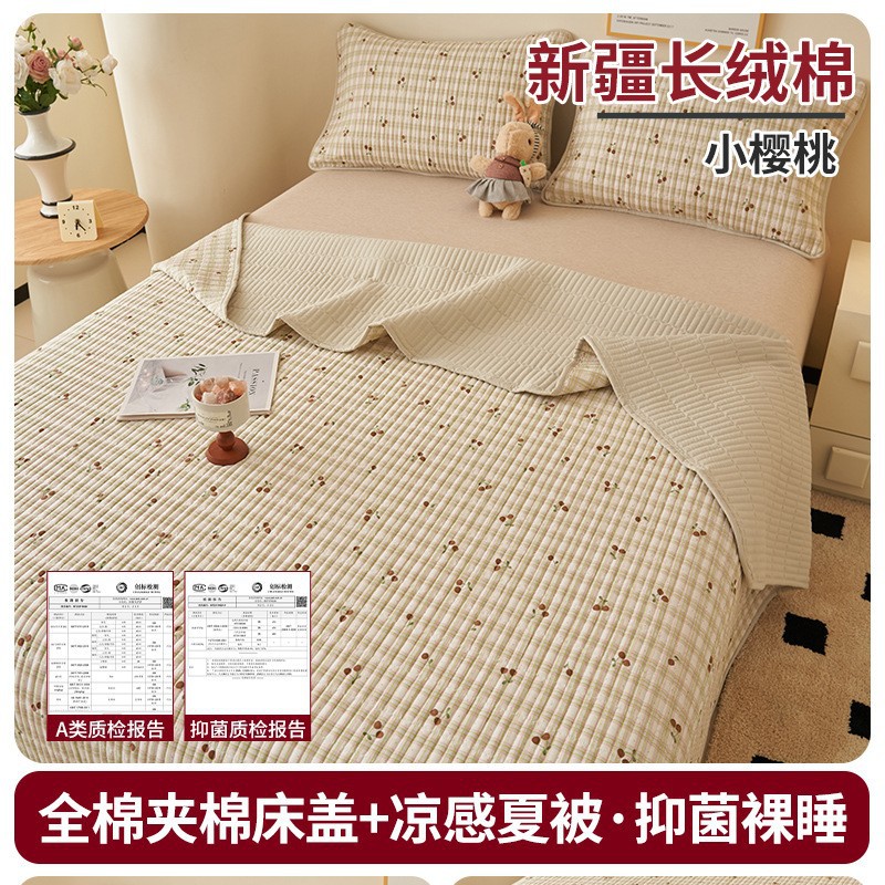 순면 침대 커버 싱글 피스 누비 이불 퀼트 면 다다미 침대 시트 여름 시원한 이불 에어컨 이불 3 피스 세트 두꺼운 미끄럼 방지