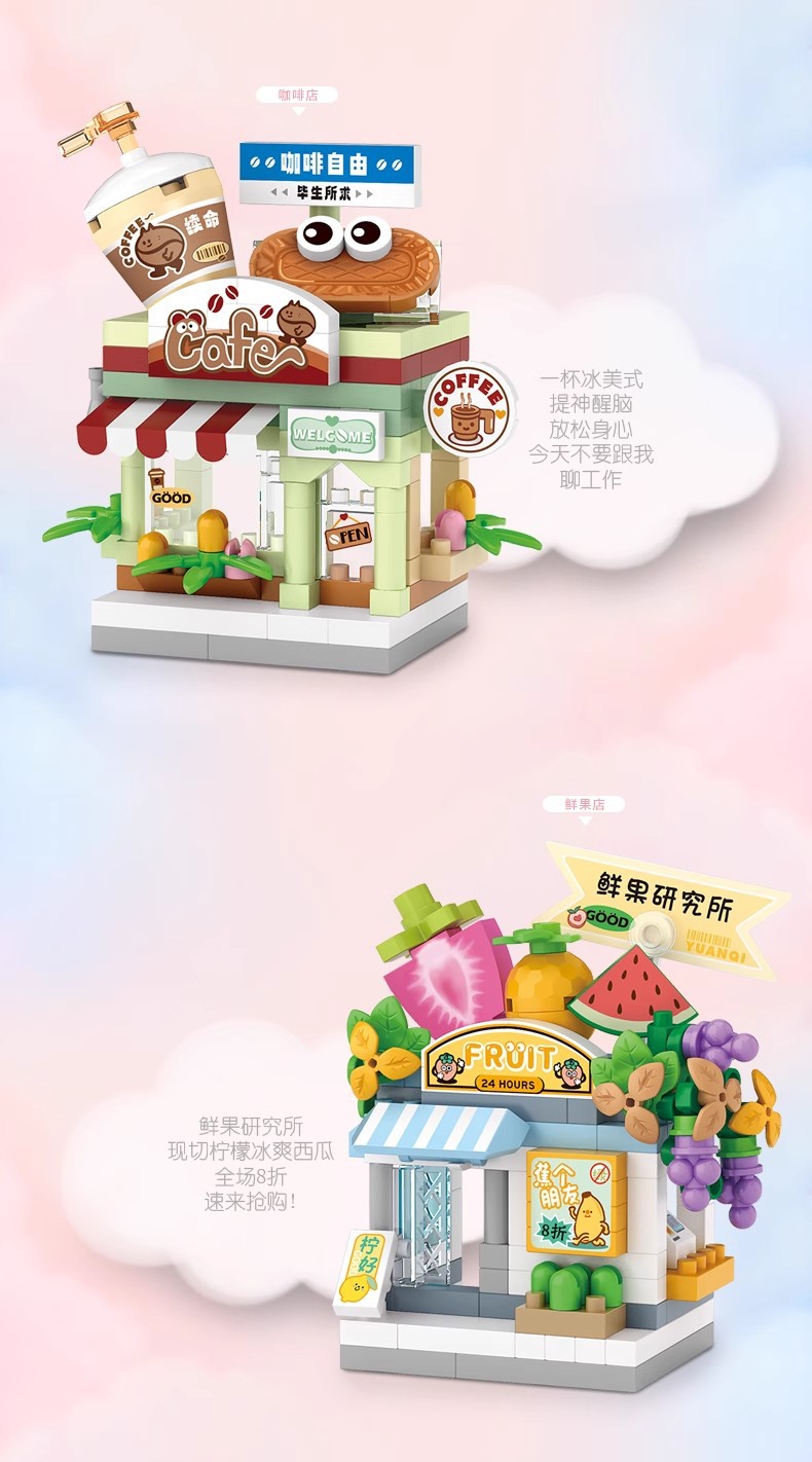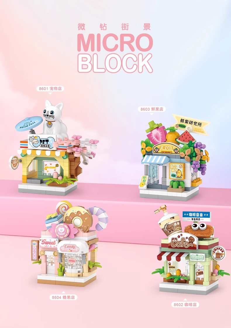Loz 빌딩 블록 스트리트 뷰 8604 시리즈 어린이 조립 미니 과립 스위트 샵 빌딩 모델 작은 집 국경스토어 가기
