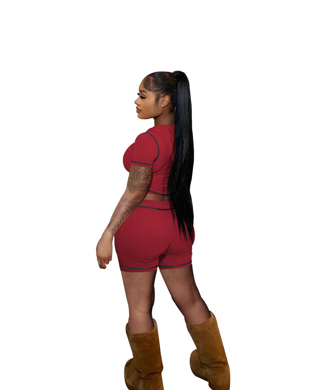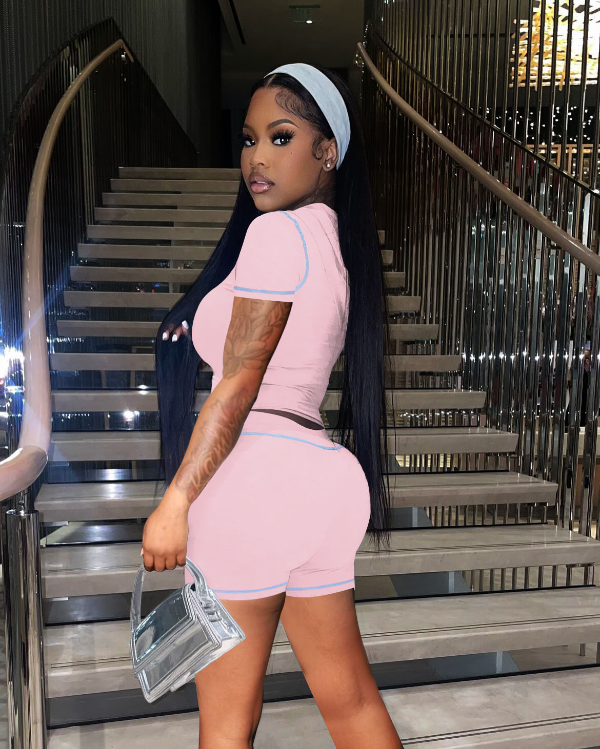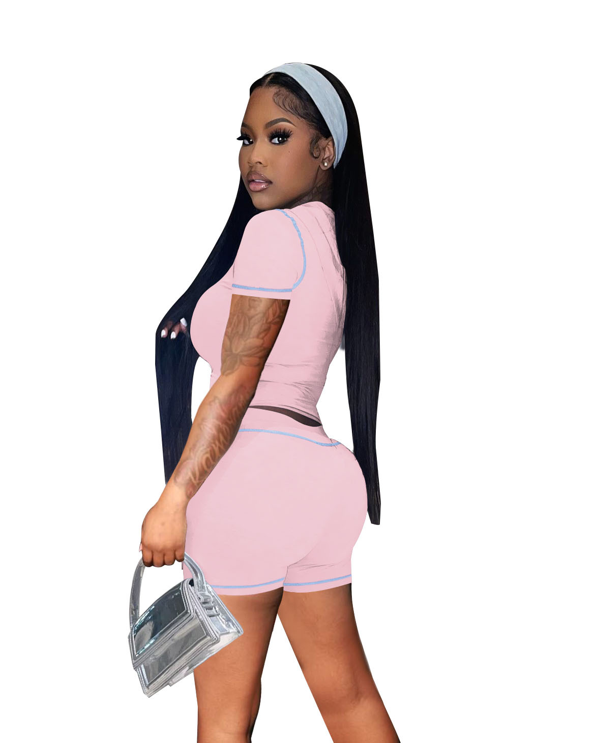 D10130 유럽과 미국 국경 25 여름 지퍼 후드 카디건 높은 탄성 스포츠 캐주얼 짧은 소매 반바지 핫 걸 투피스 세트스토어 가기