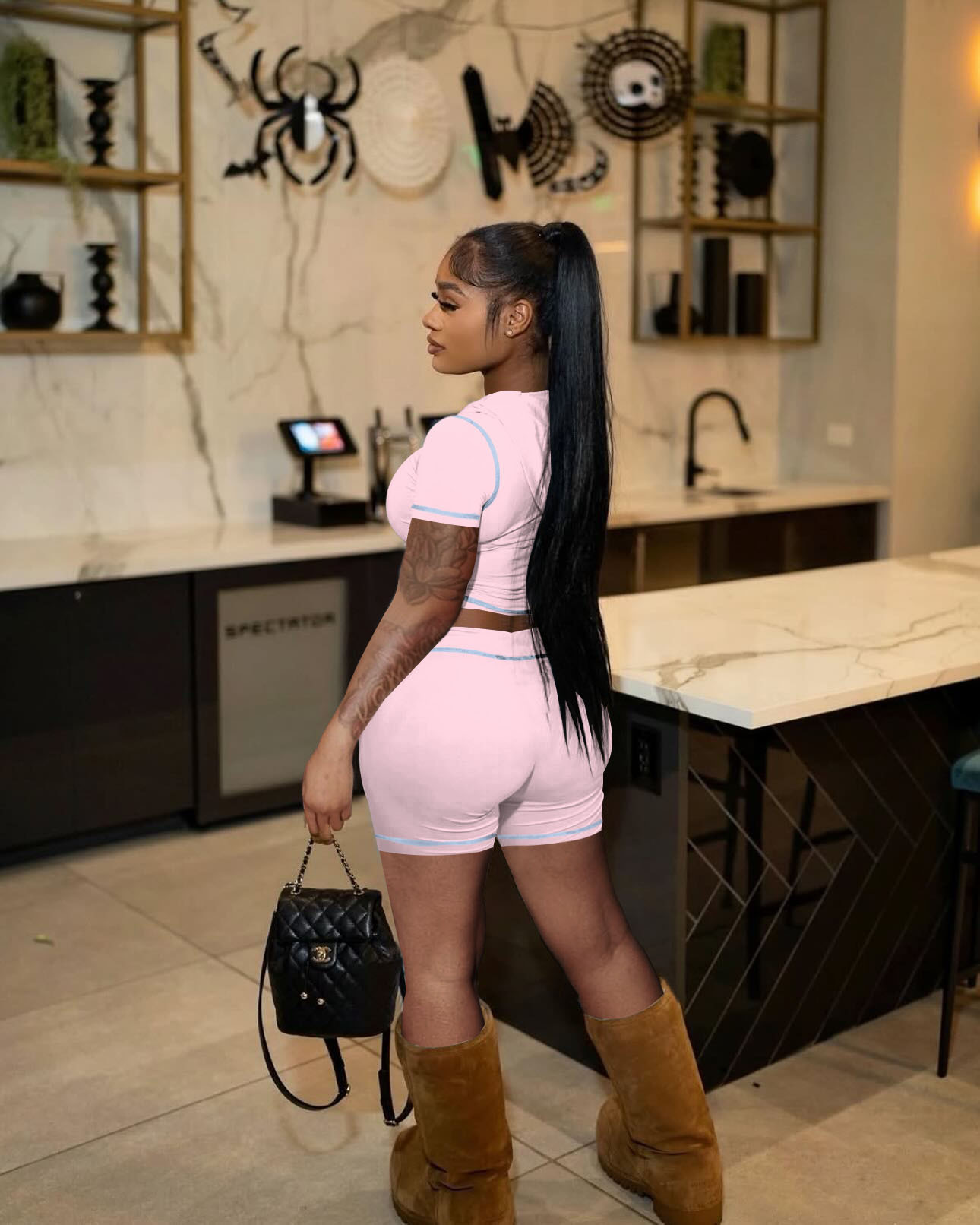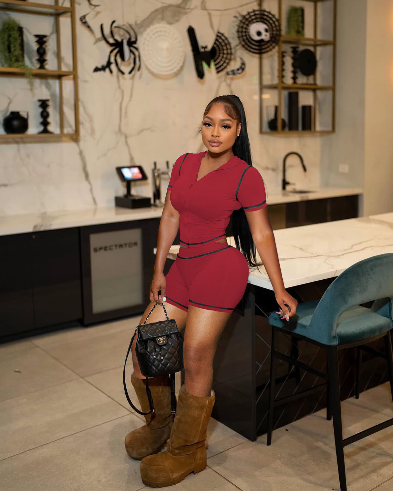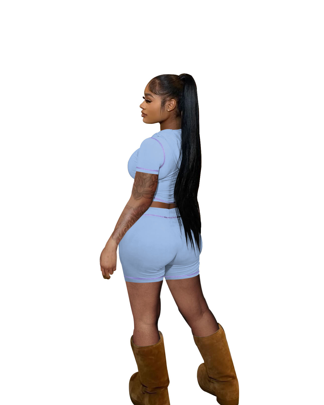 D10130 유럽과 미국 국경 25 여름 지퍼 후드 카디건 높은 탄성 스포츠 캐주얼 짧은 소매 반바지 핫 걸 투피스 세트스토어 가기