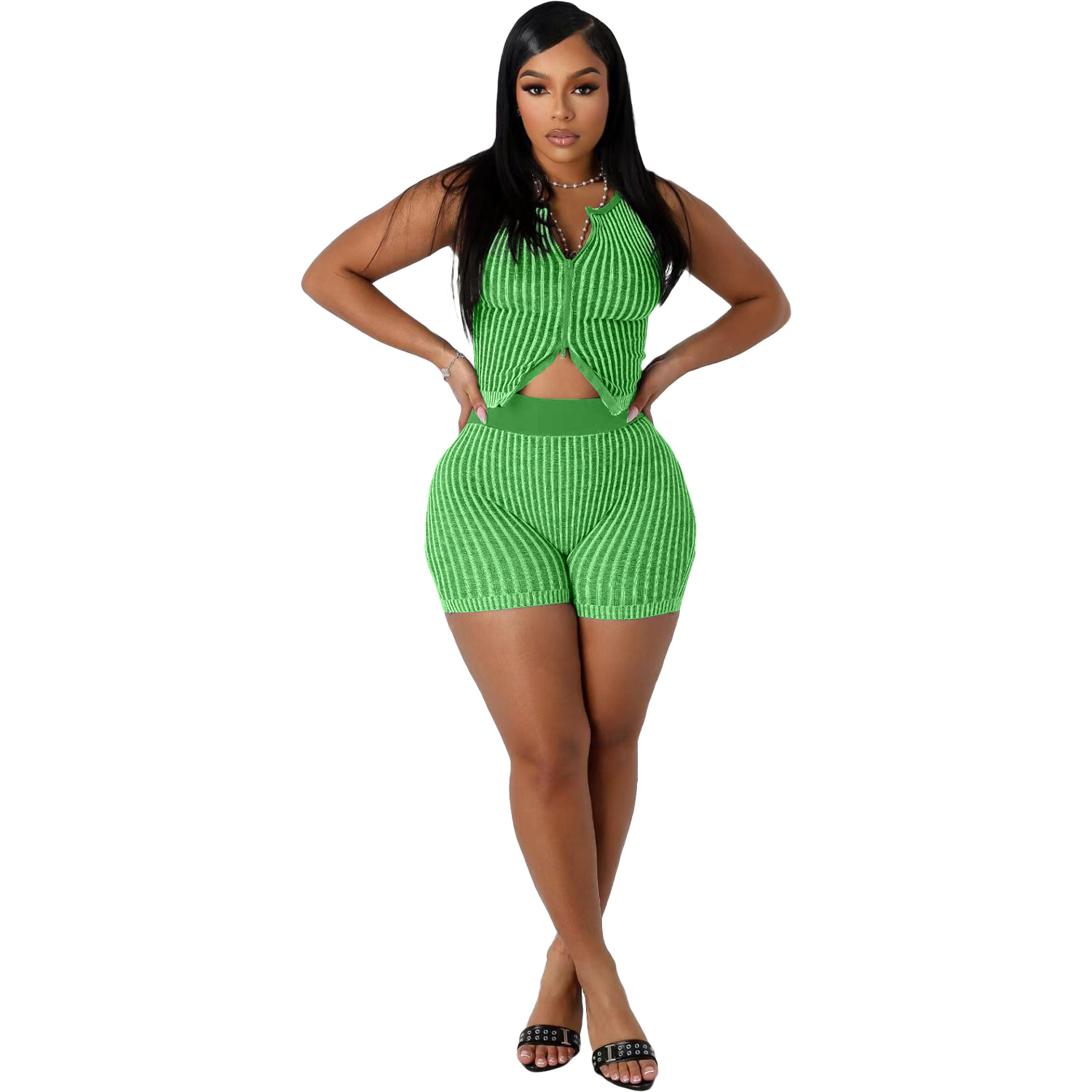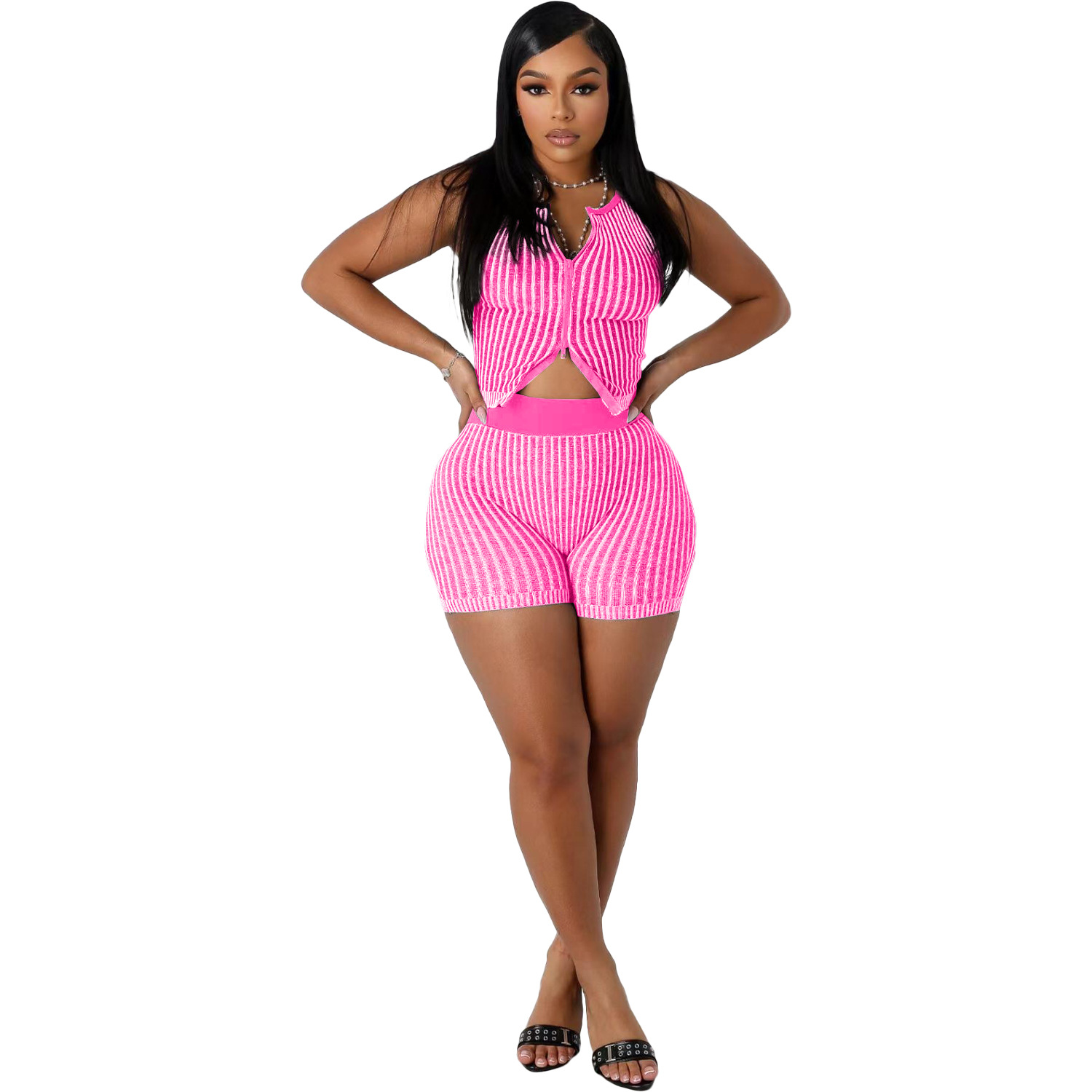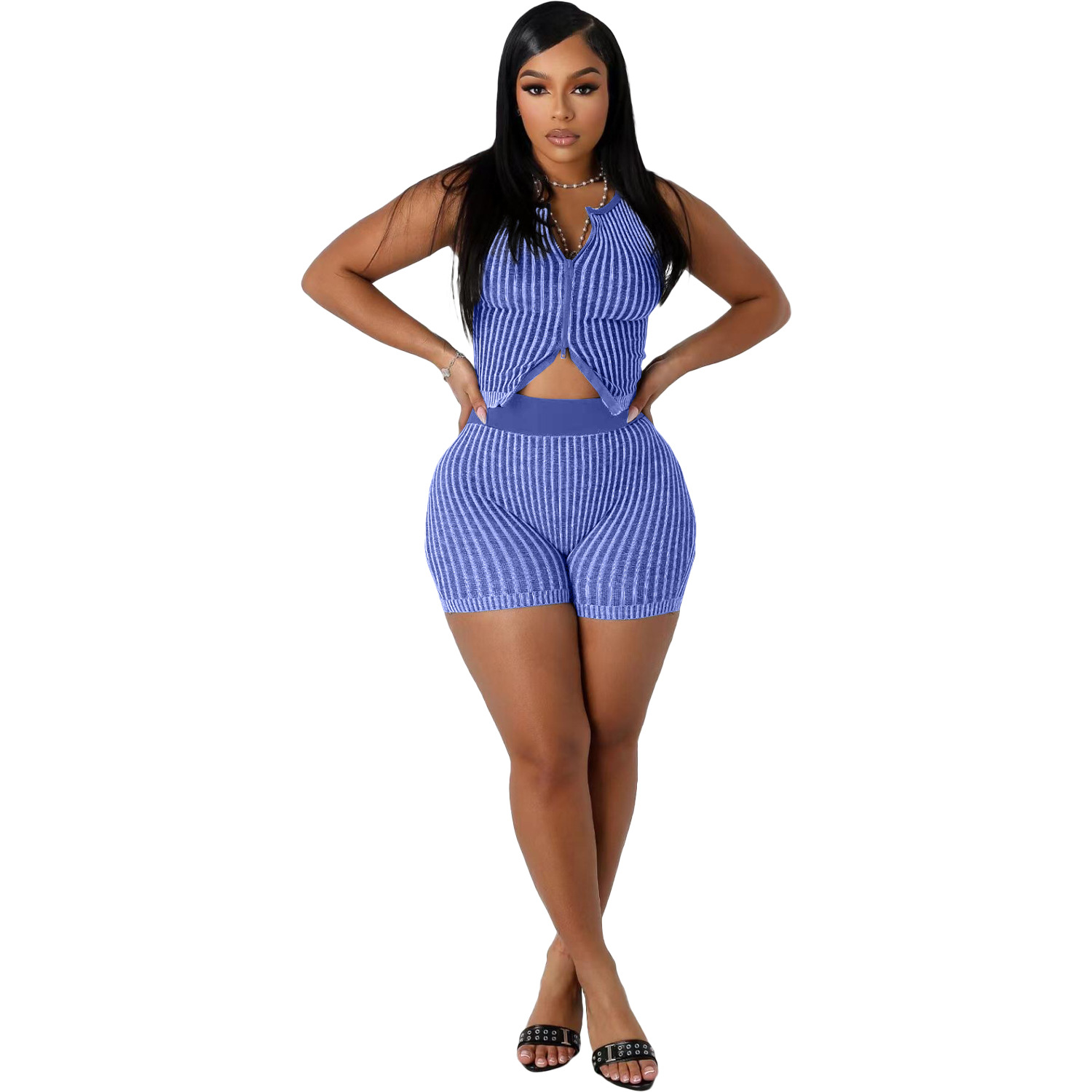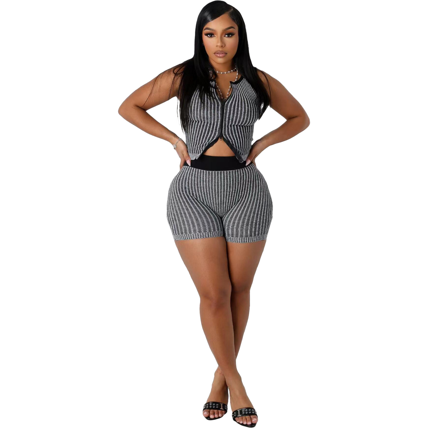 NY8190 아마존 유럽과 미국 여성 니트 스웨터 양방향 지퍼 패션 캐주얼 세트