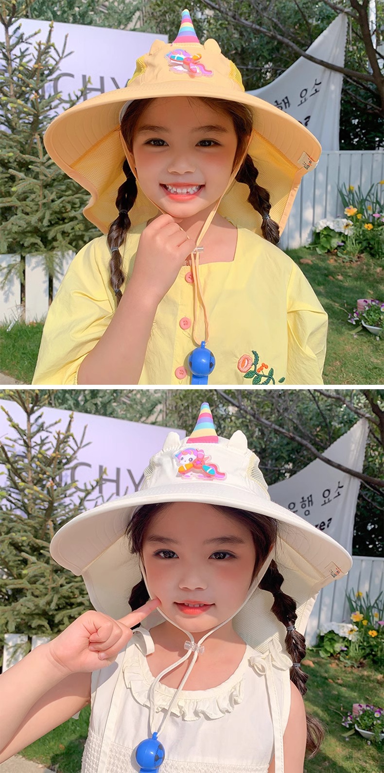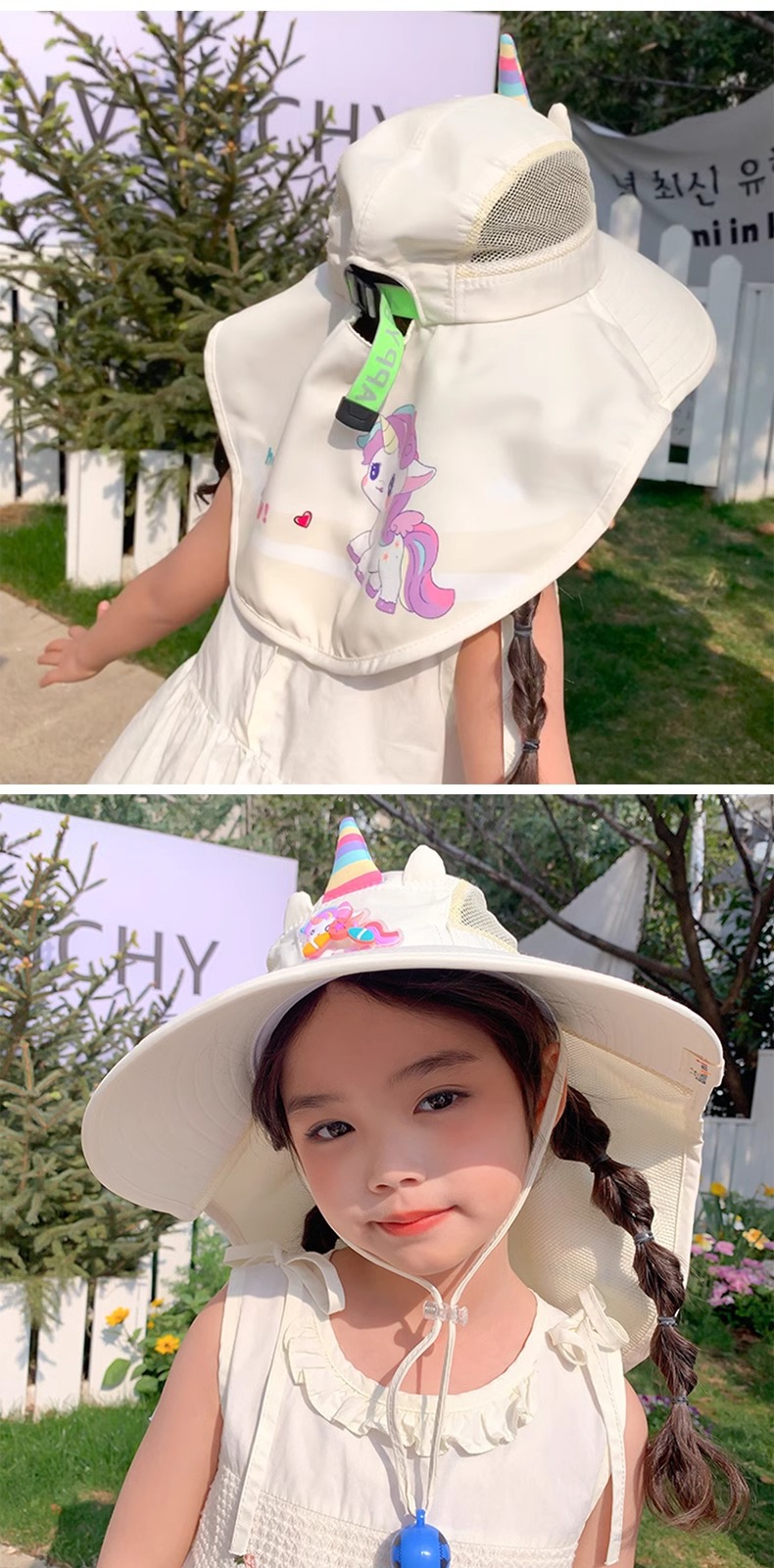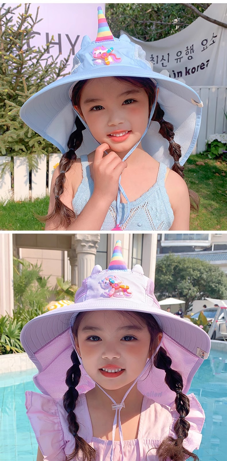 유니콘 대형 챙 태양 모자 어린이 태양 보호 모자 여름 소녀 목도리 태양 모자 안티 UV 비치 모자