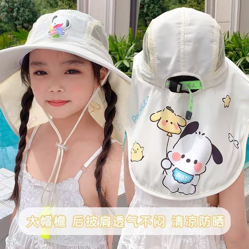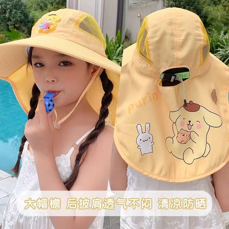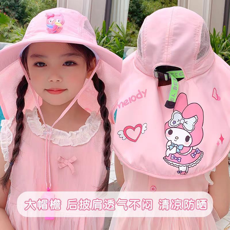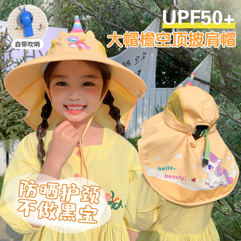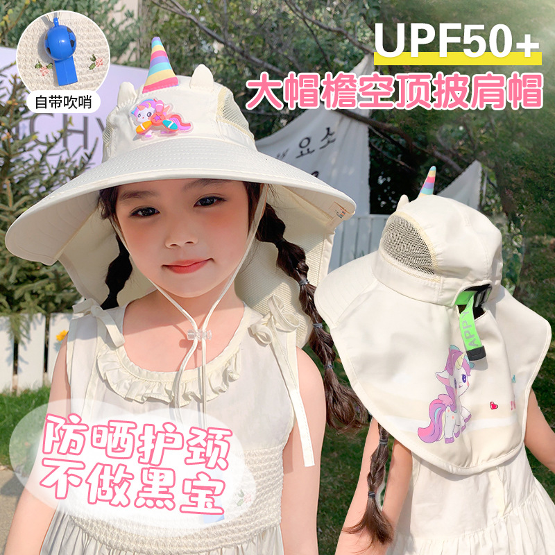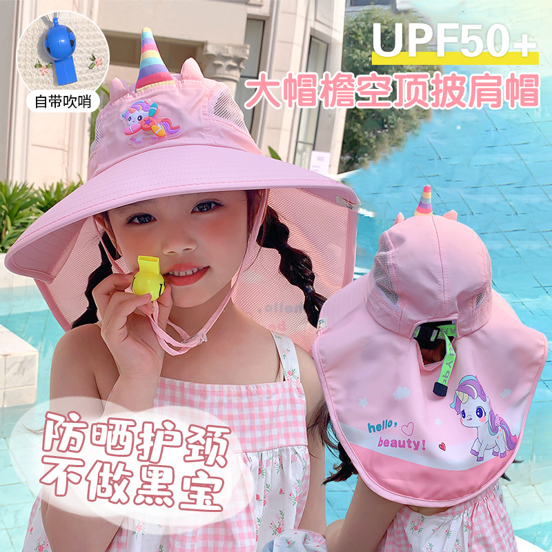 유니콘 대형 챙 태양 모자 어린이 태양 보호 모자 여름 소녀 목도리 태양 모자 안티 UV 비치 모자