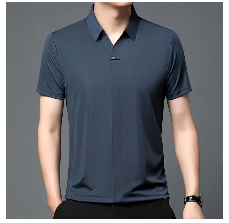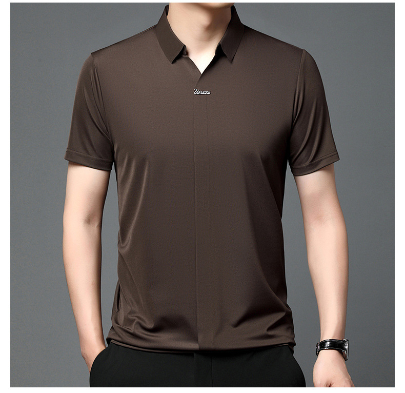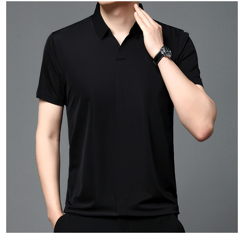 2024 년 여름 새로운 중년 얇은 옷깃 폴로 셔츠 남성 풀오버 패션 캐주얼 남성 반팔 티셔츠 남성