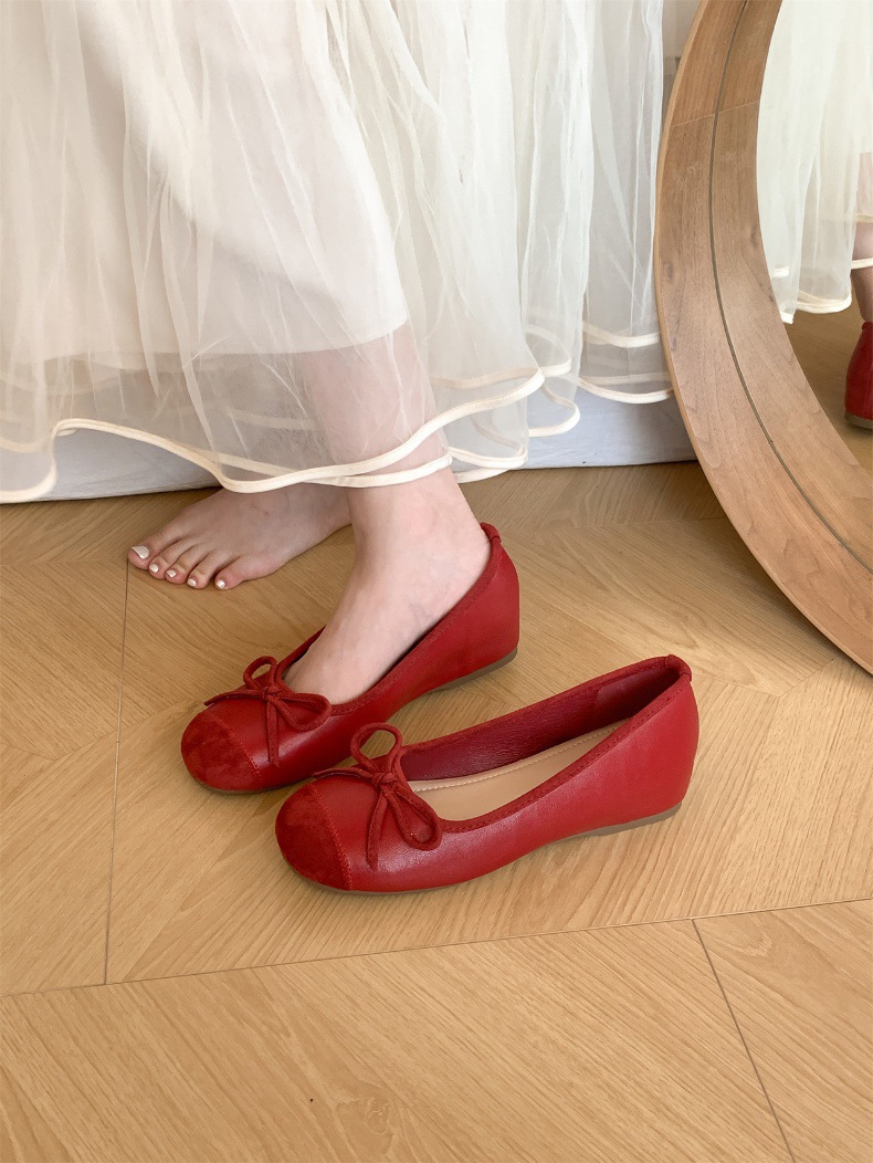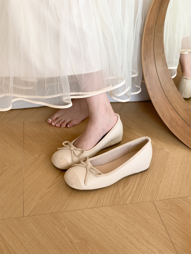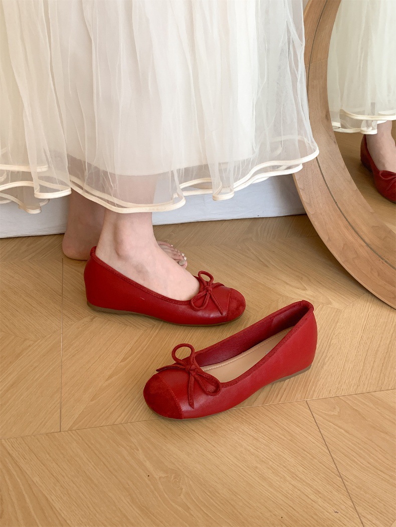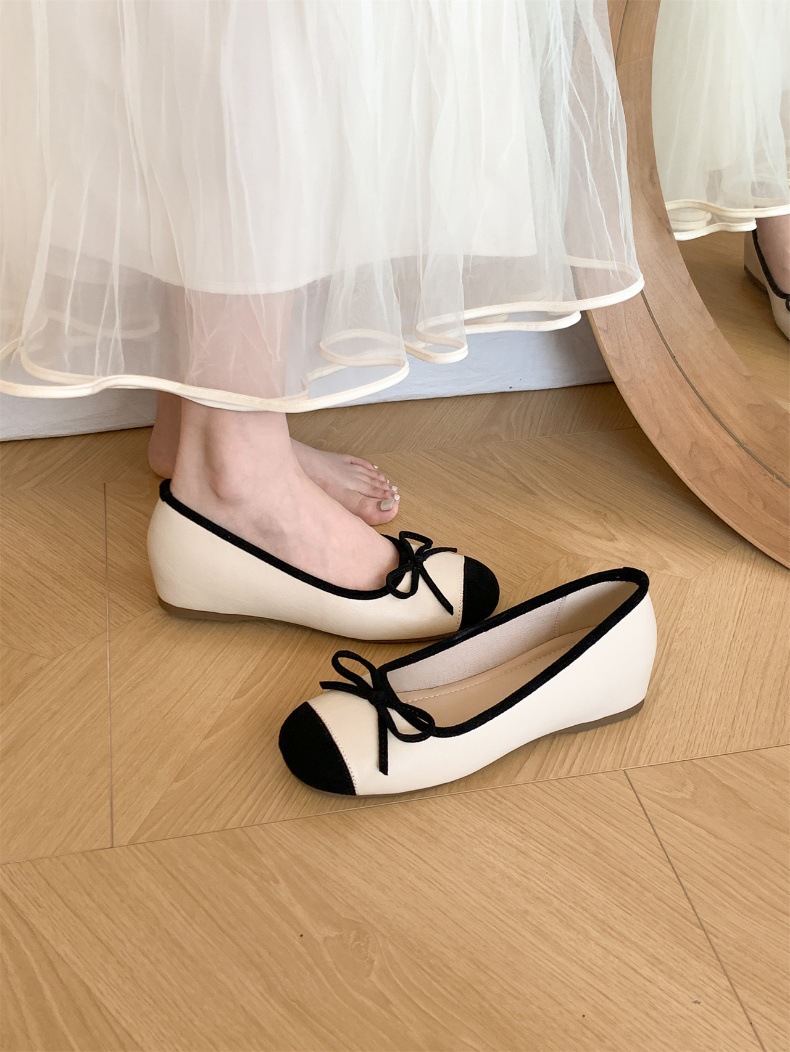 내부 높이 증가 버전 ~ 프랑스 요정 스타일 얕은 활 신발 여성의 봄과 가을 부드러운 하단 색상 일치 작은 샤넬 스타일 신발