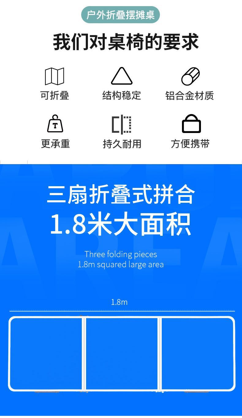 • 【升级圆管1.8米】蓝色-单桌