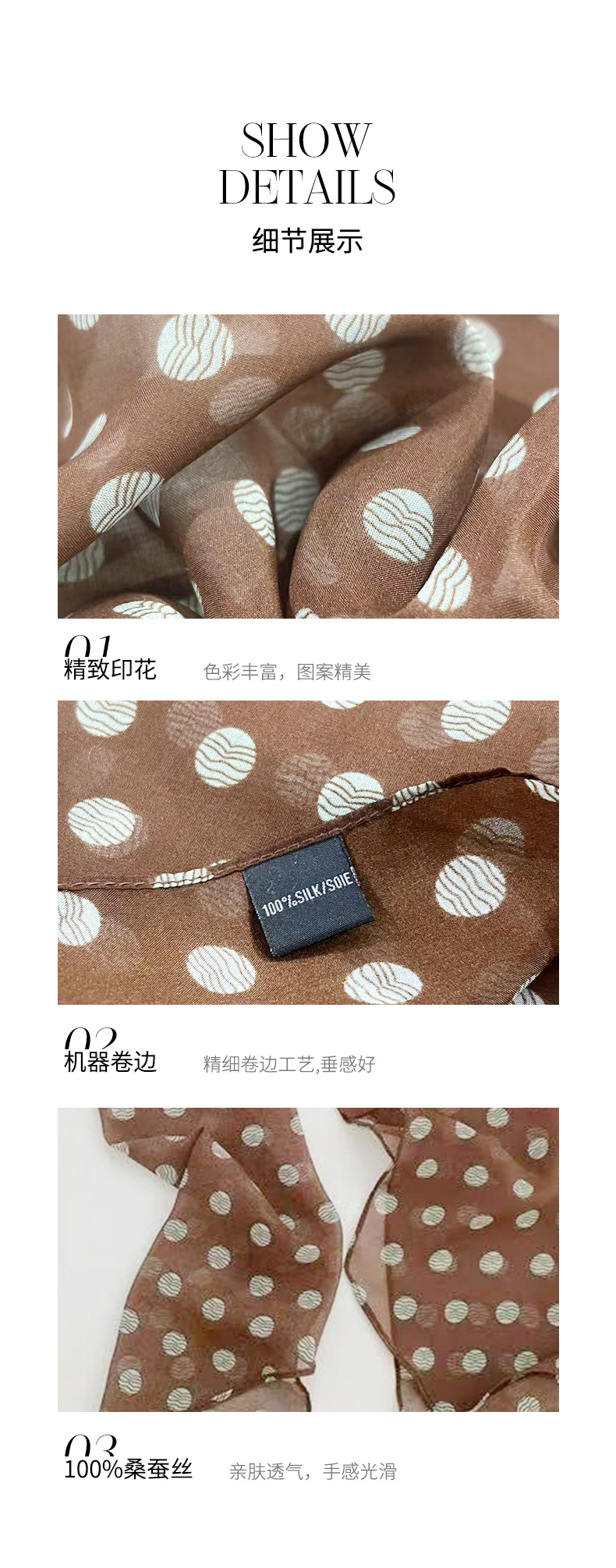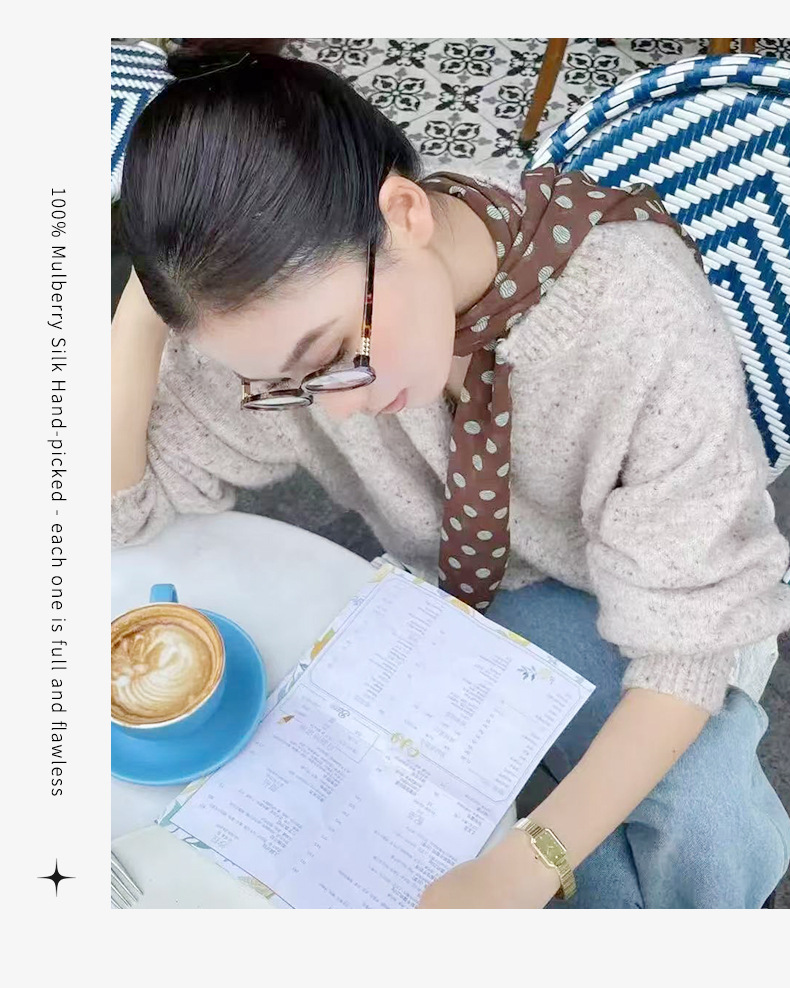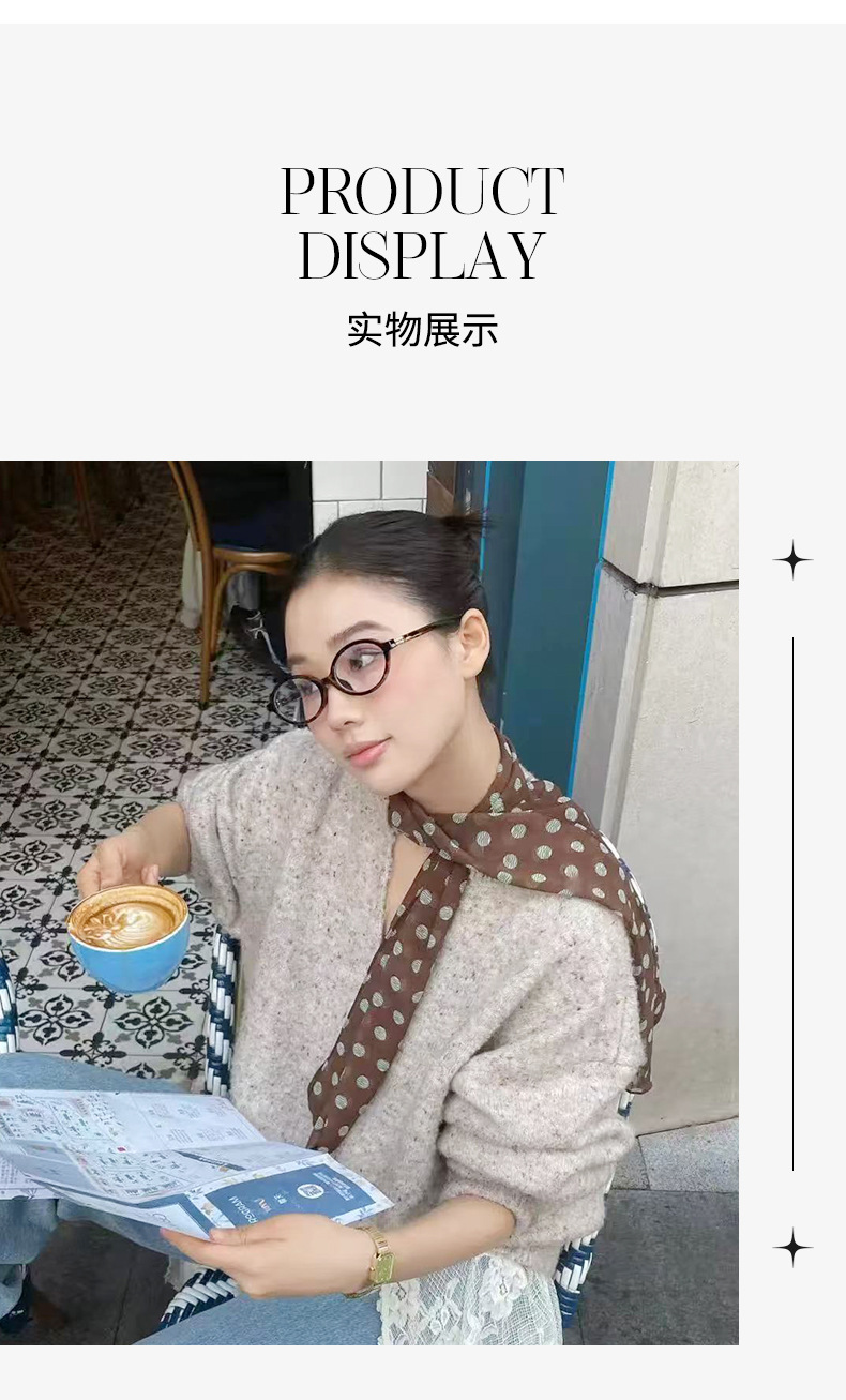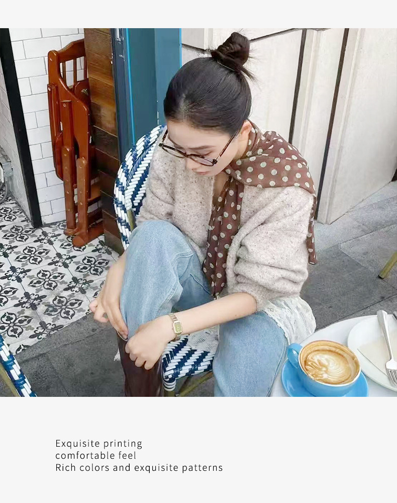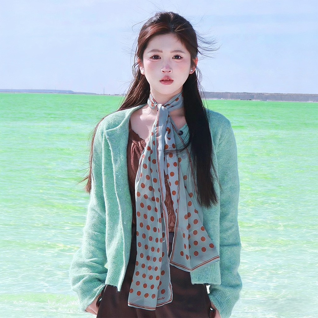 여성을위한 새로운 갈색 폴카 도트 실크 쉬폰 스카프 봄과 여름 하이 엔드 100% 뽕나무 실크 헤어 밴드 머리 긴 스카프스토어 가기