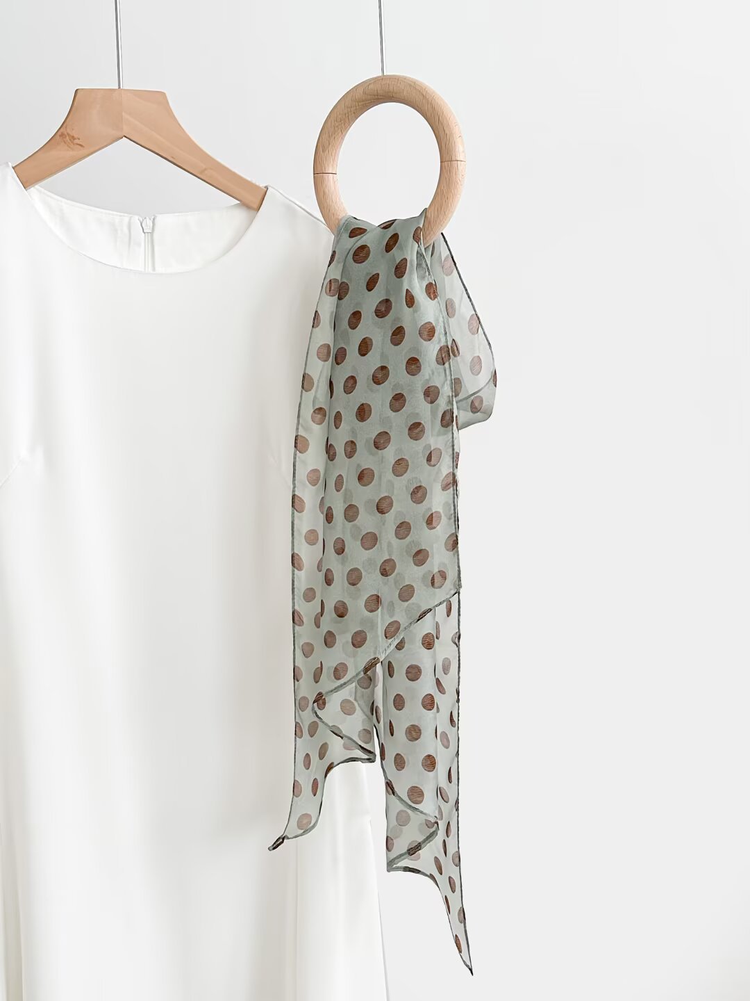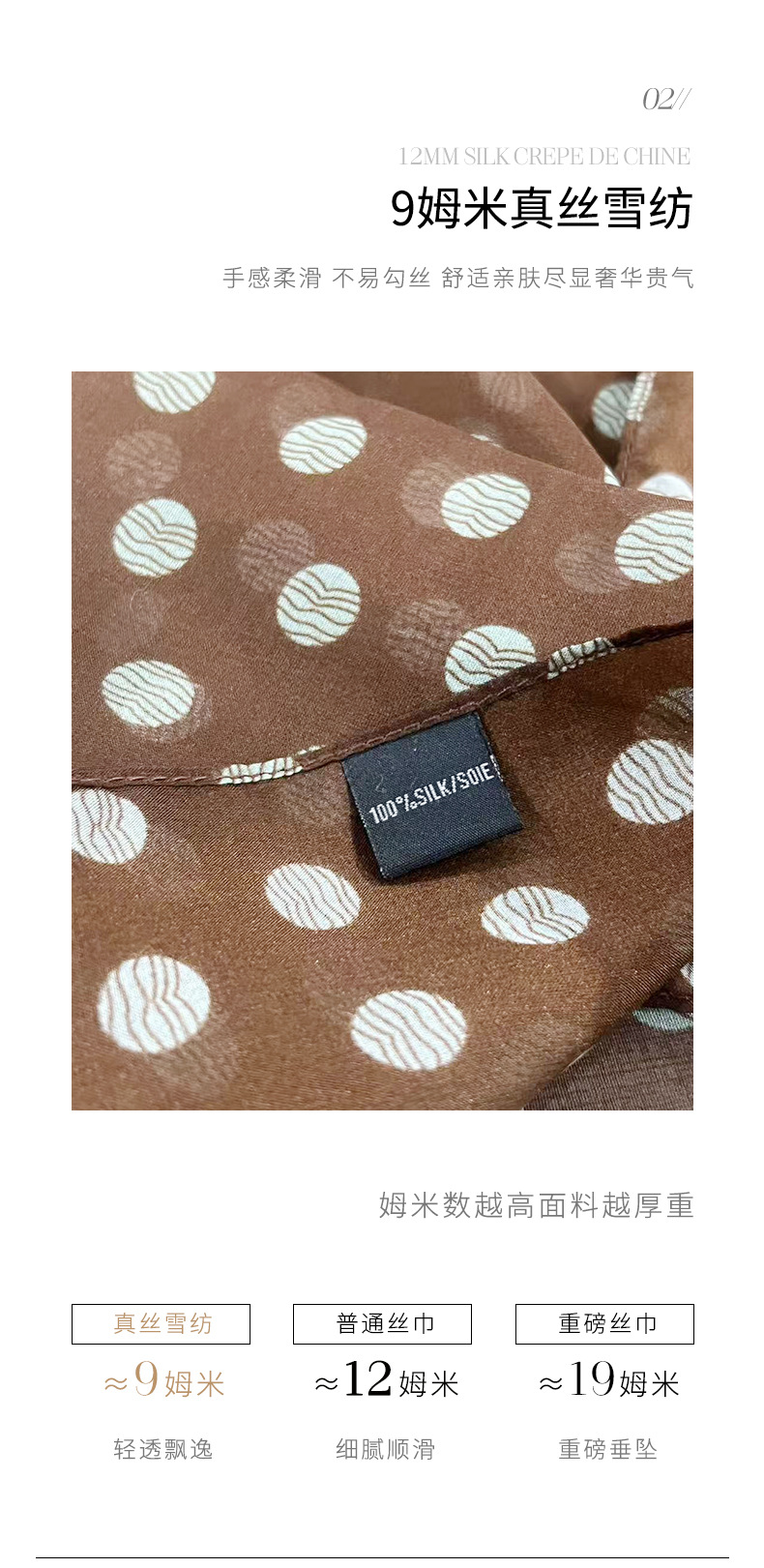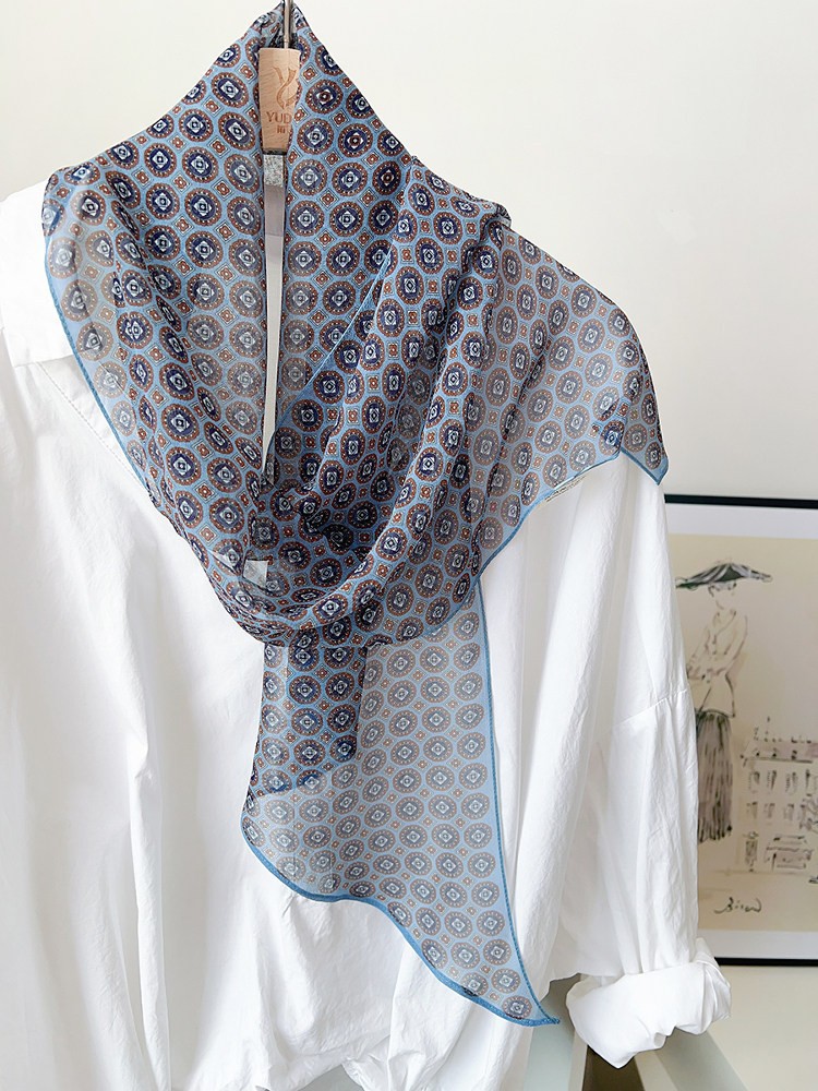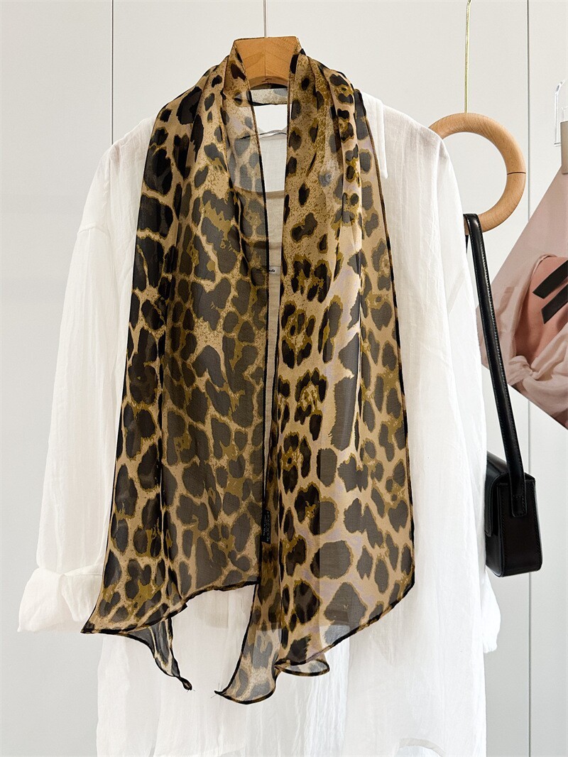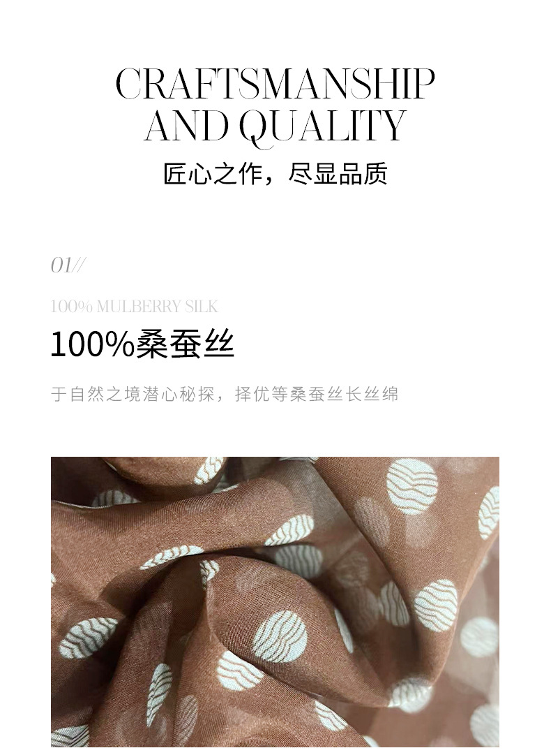 여성을위한 새로운 갈색 폴카 도트 실크 쉬폰 스카프 봄과 여름 하이 엔드 100% 뽕나무 실크 헤어 밴드 머리 긴 스카프스토어 가기