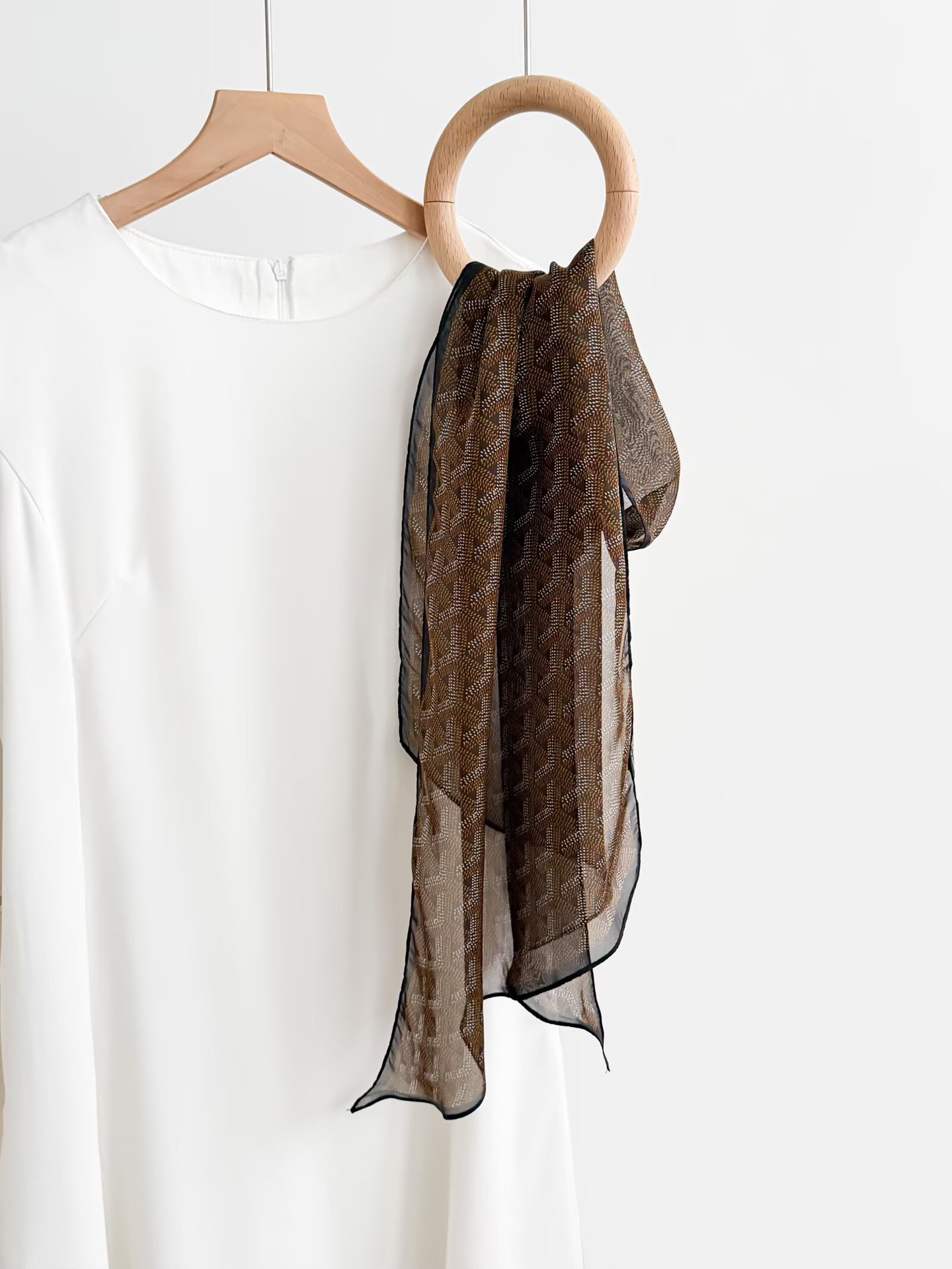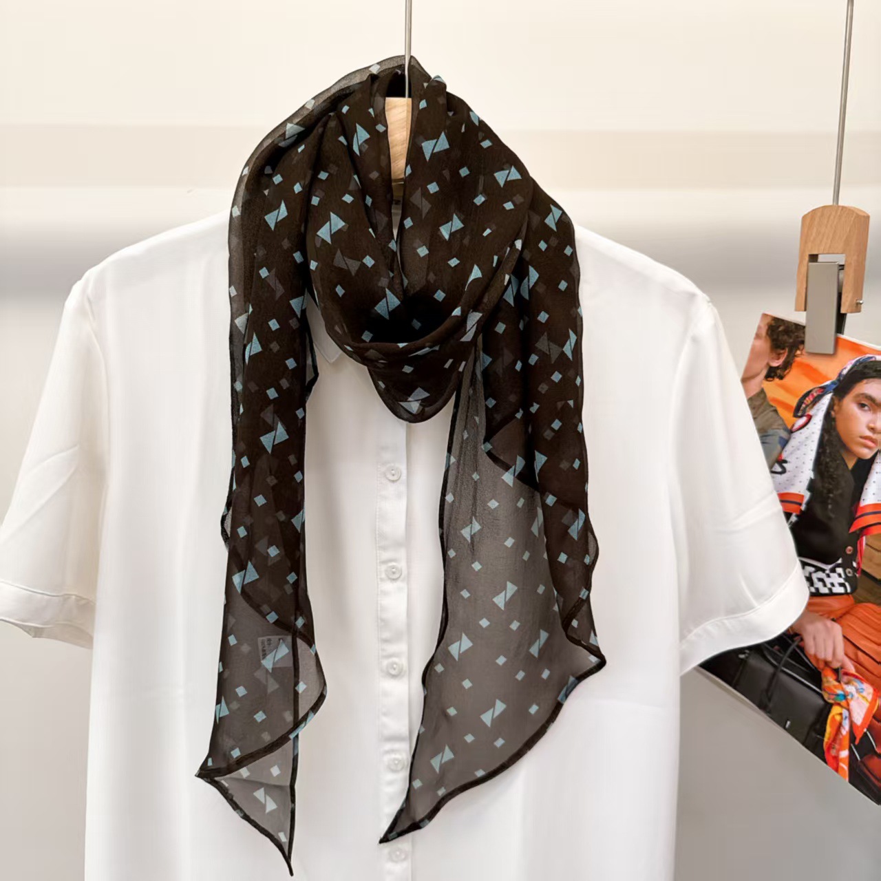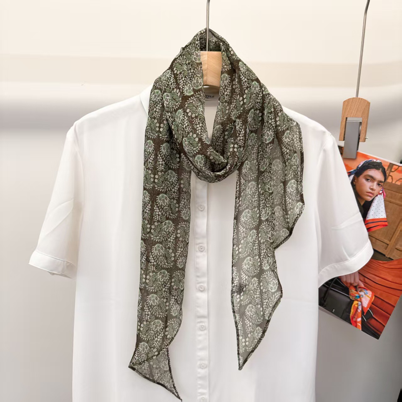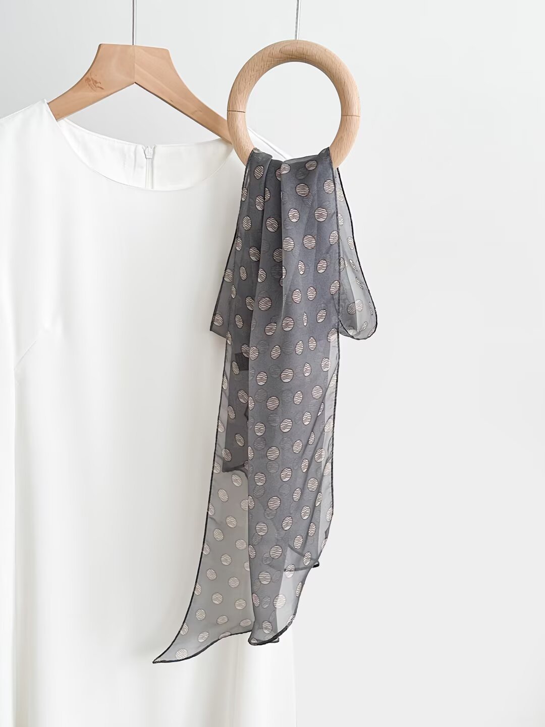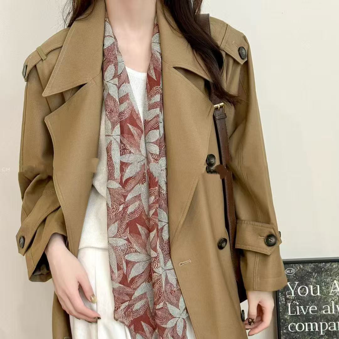 여성을위한 새로운 갈색 폴카 도트 실크 쉬폰 스카프 봄과 여름 하이 엔드 100% 뽕나무 실크 헤어 밴드 머리 긴 스카프스토어 가기
