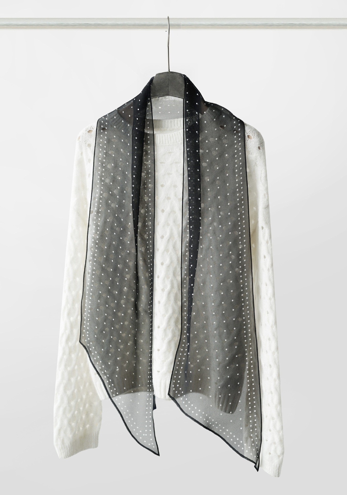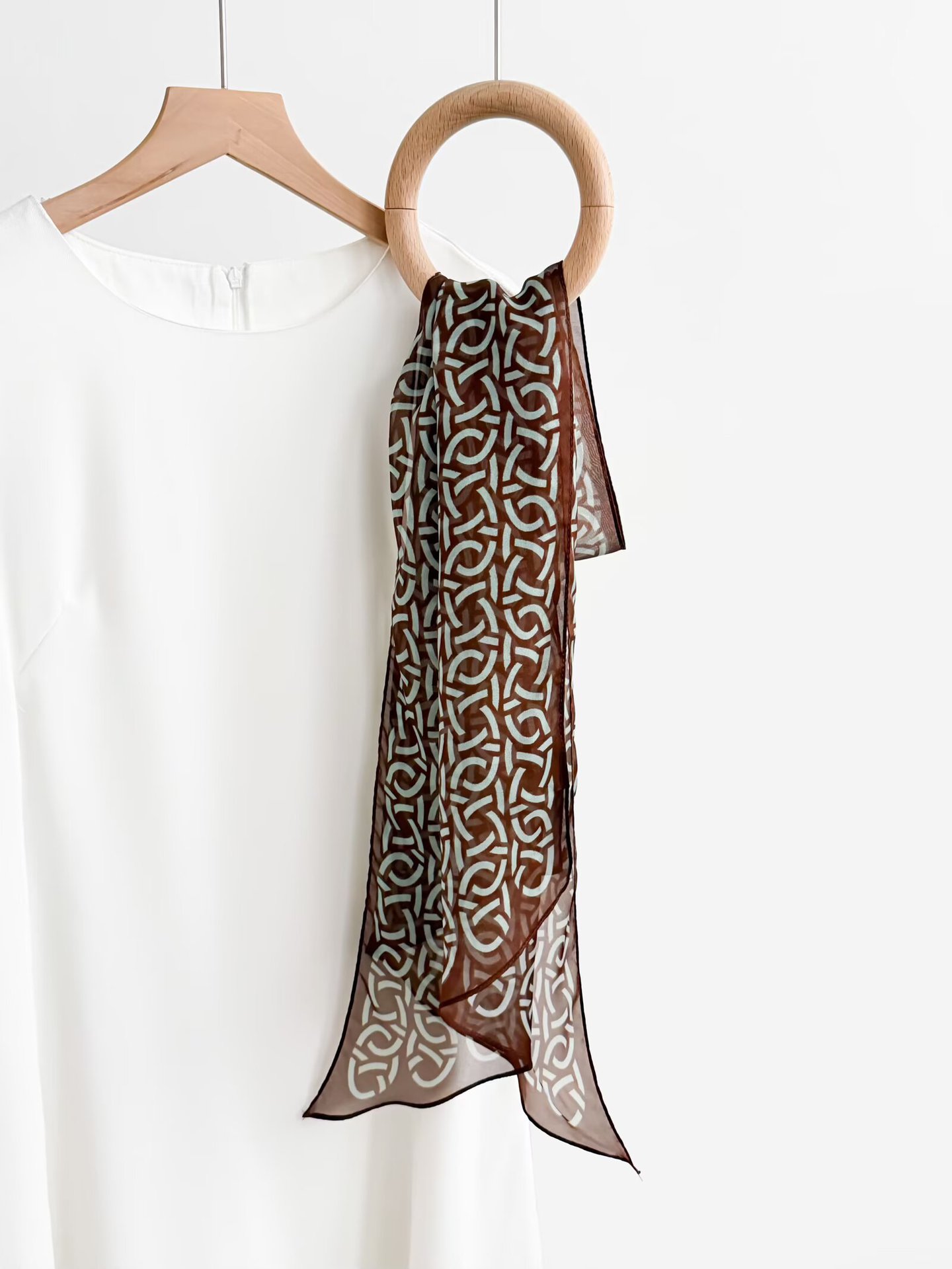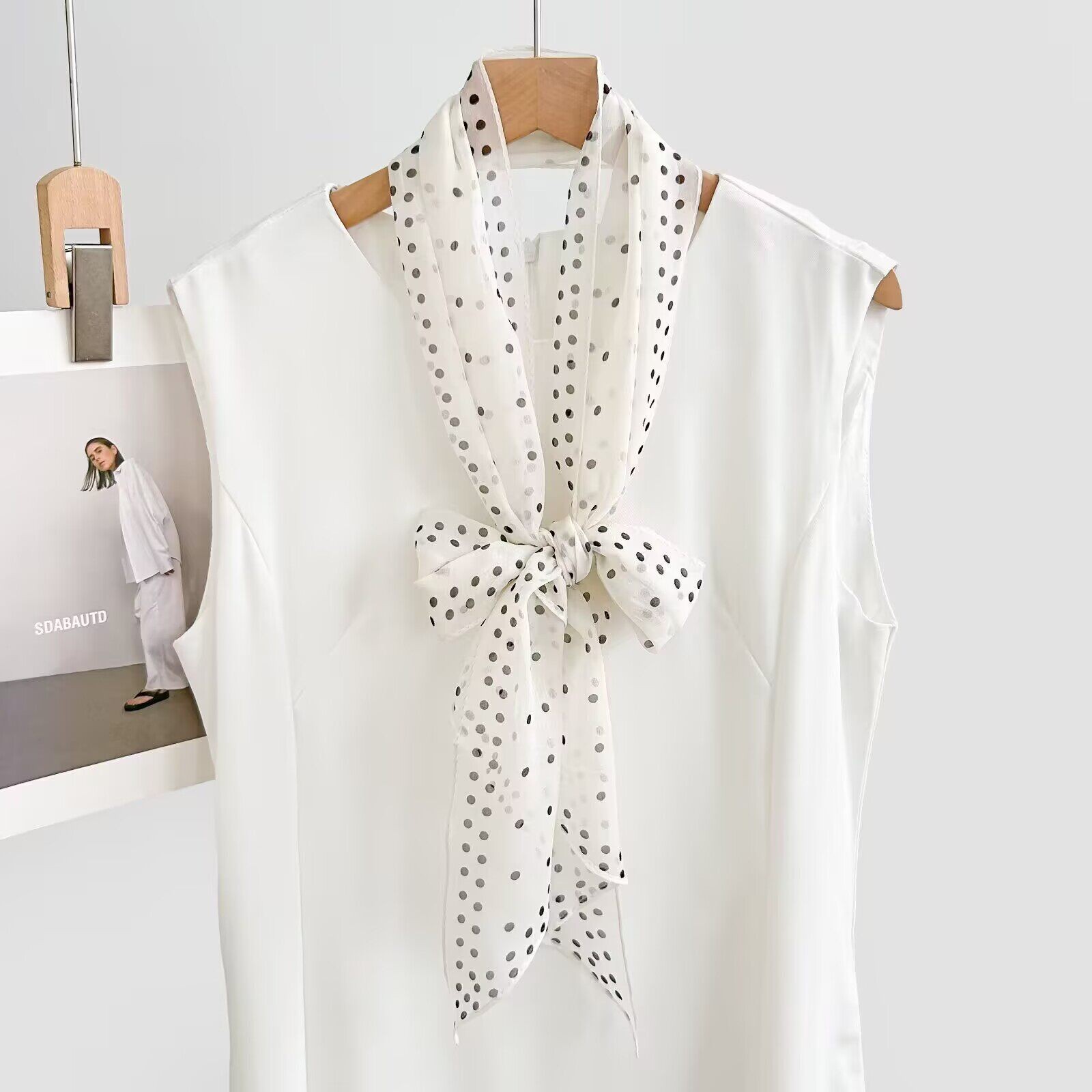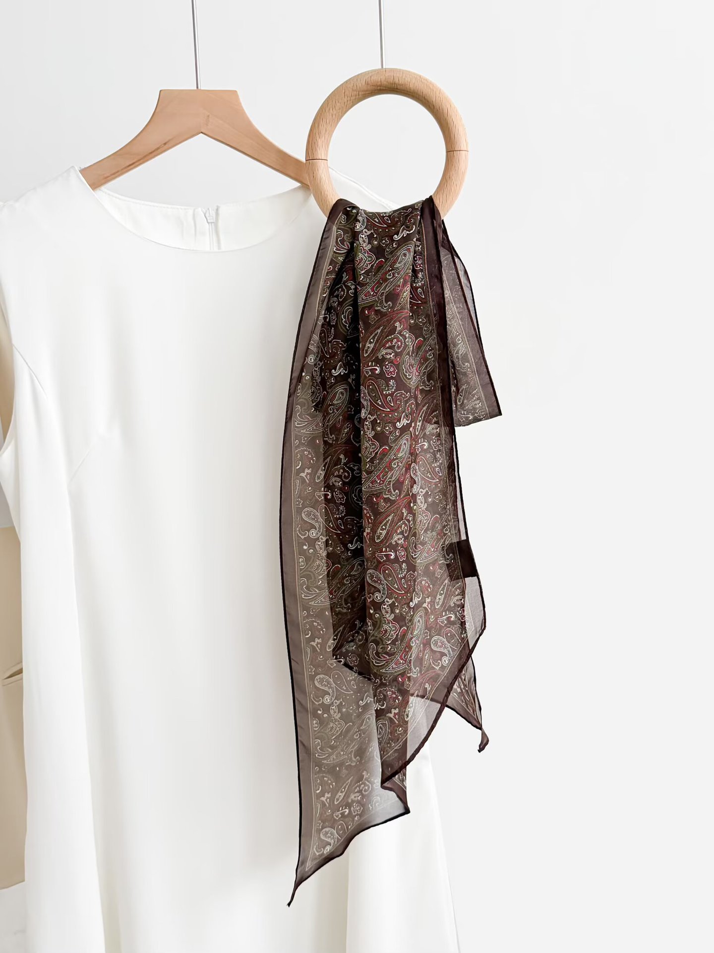 여성을위한 새로운 갈색 폴카 도트 실크 쉬폰 스카프 봄과 여름 하이 엔드 100% 뽕나무 실크 헤어 밴드 머리 긴 스카프스토어 가기