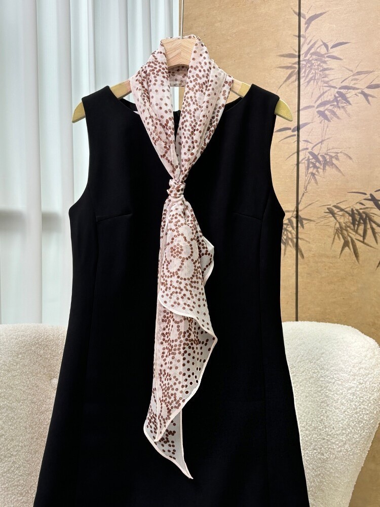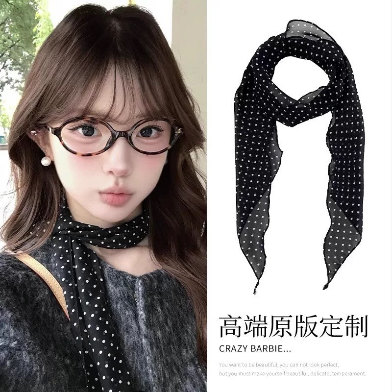 여성을위한 새로운 갈색 폴카 도트 실크 쉬폰 스카프 봄과 여름 하이 엔드 100% 뽕나무 실크 헤어 밴드 머리 긴 스카프