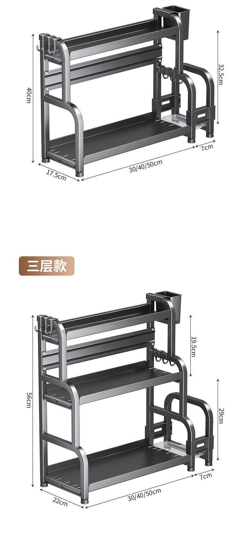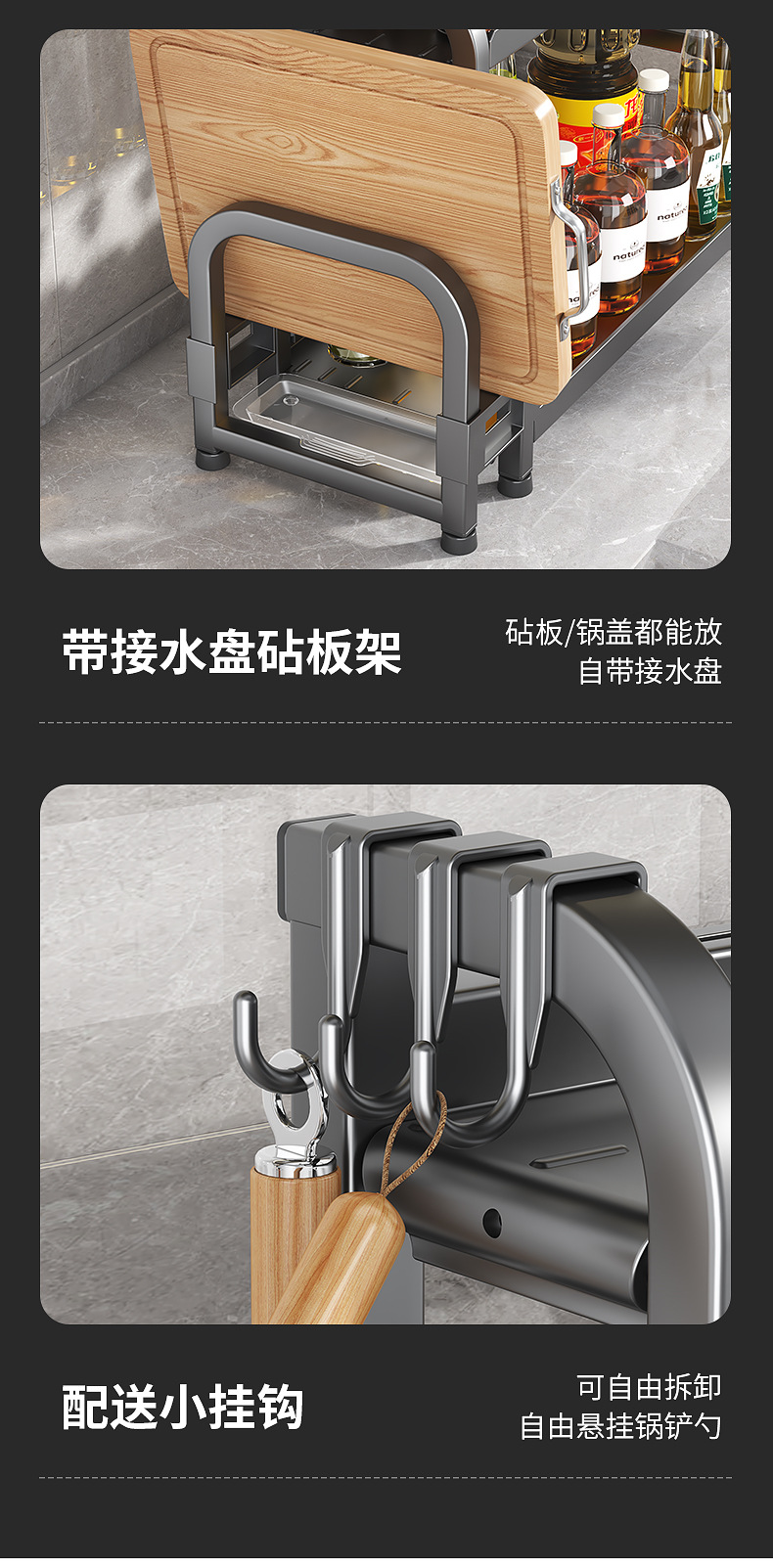 • [건그레이 3단 40cm] 칼받침 + 칼가드 + 젓가락통 + 도마걸이 + 고리*6