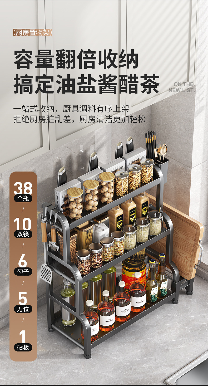 주방 수납 선반 조리대 다기능 주방 용품 칼 홀더 젓가락 소금 조미료 항아리 보관 상자 조미료 선반스토어 가기