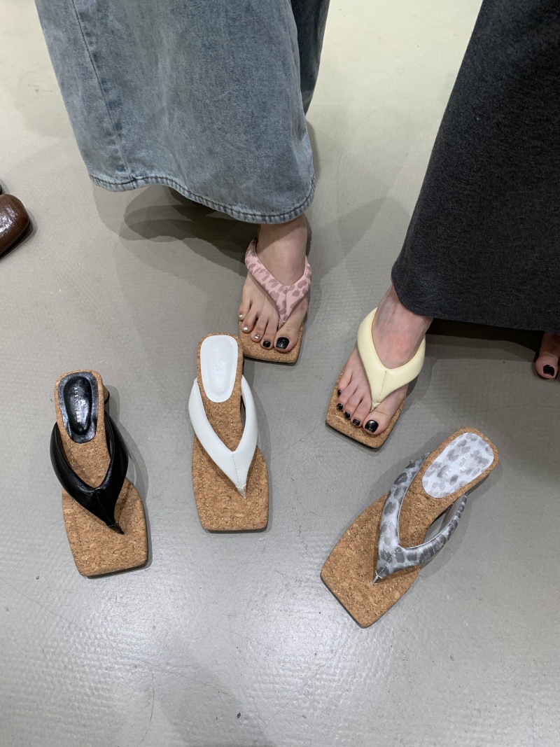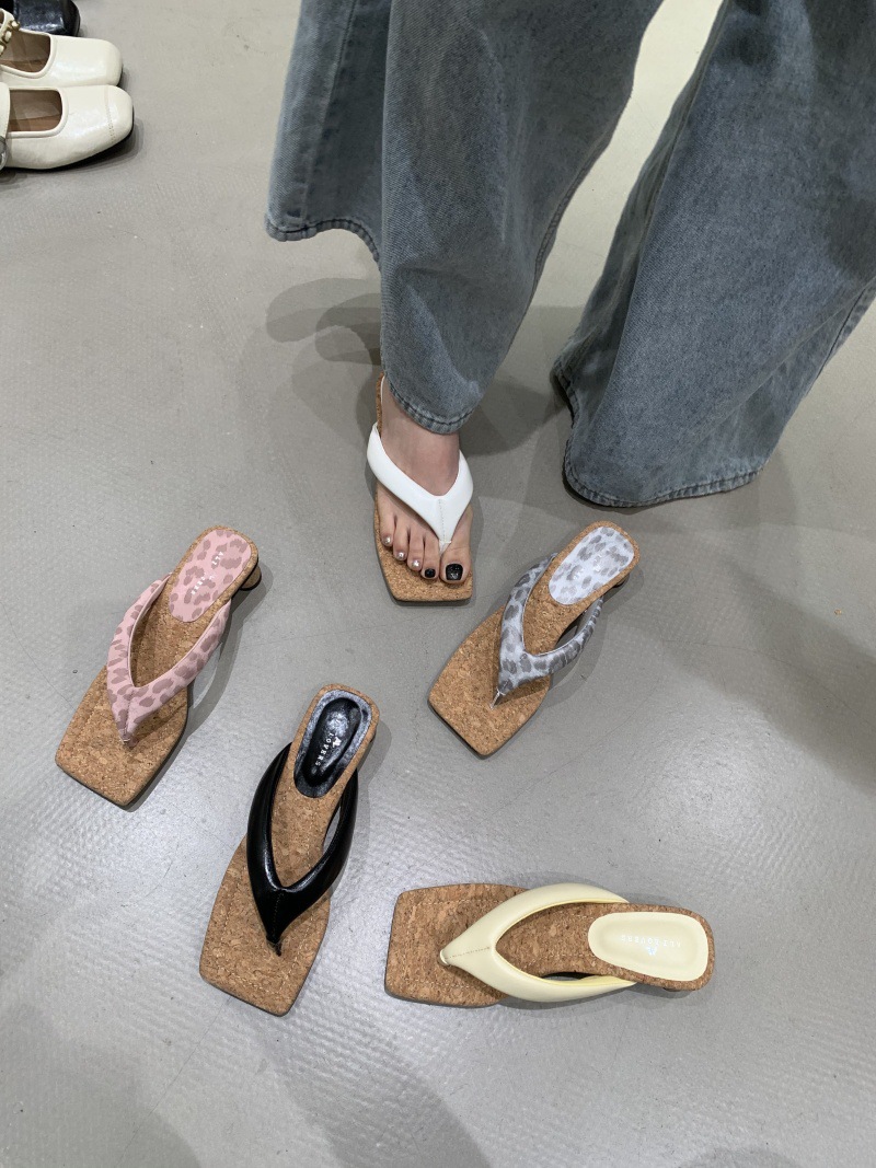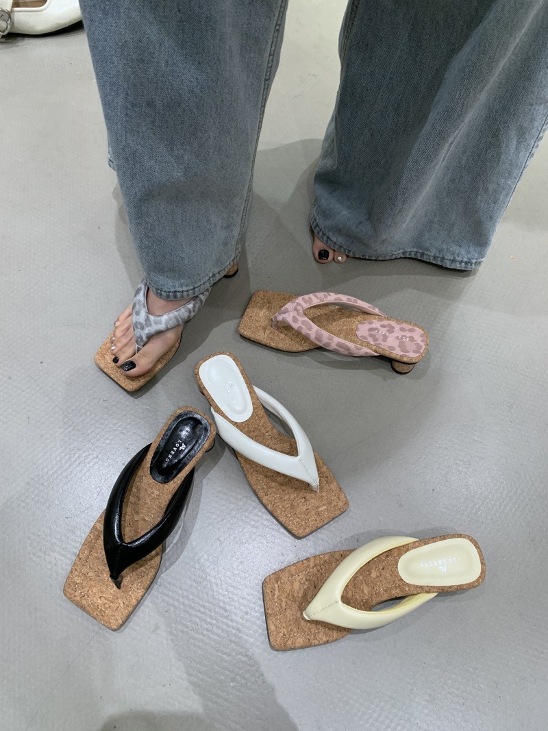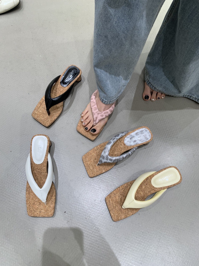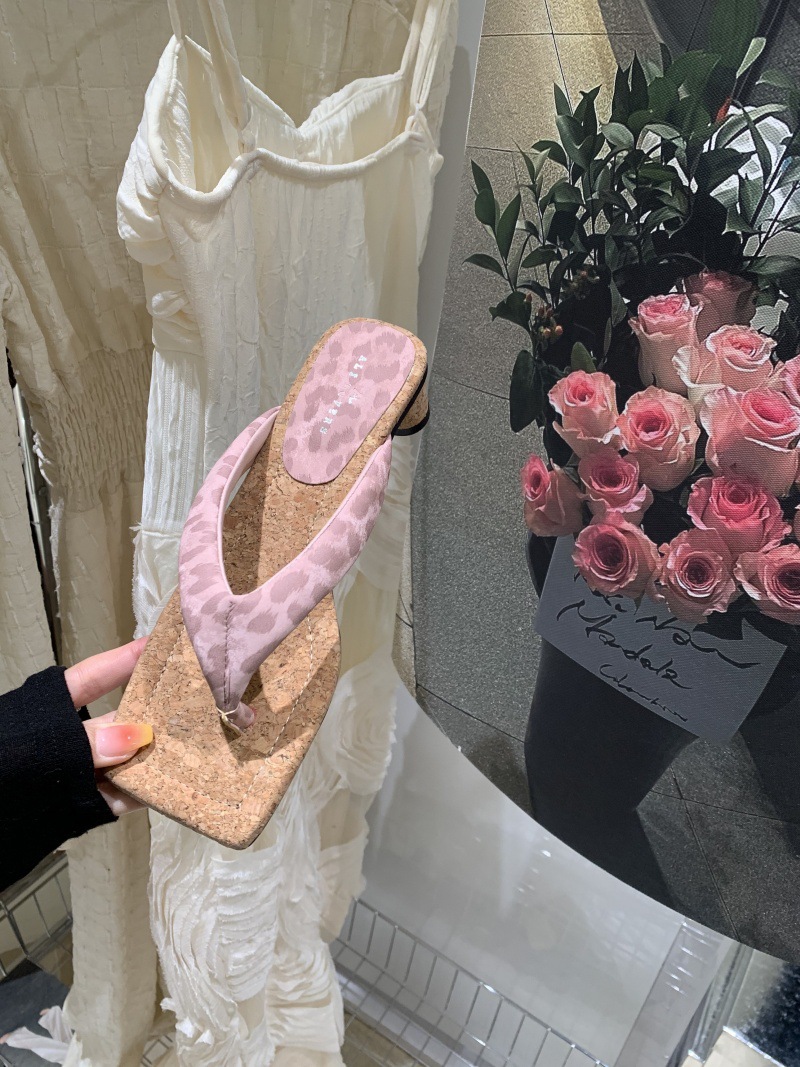 두꺼운 힐 플립 플롭 여성 아우터웨어 하이힐 플립 플롭스 2025 새로운 여름 내셔널 스타일 레오파드 무늬 아우터웨어 캐주얼 슬리퍼스토어 가기