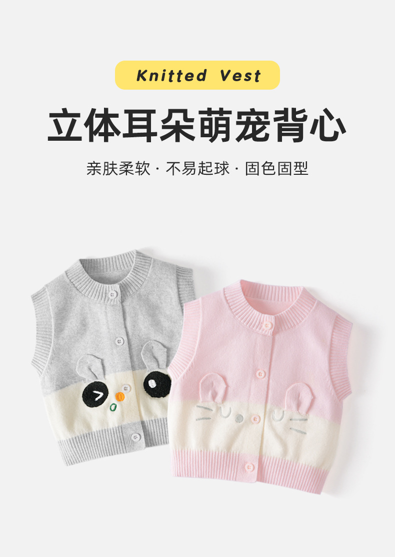 신제품 유아 조끼 카디건 한국 스타일 컬러 블록 만화 조끼 얇은 스웨터 남성과 여성 베이비 민소매 스웨터스토어 가기