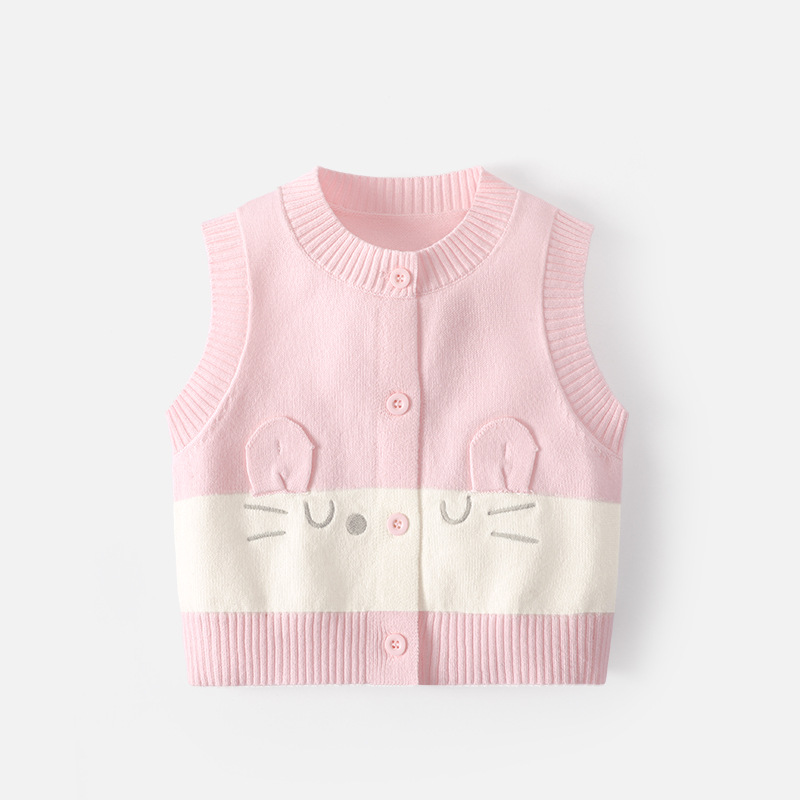 신제품 유아 조끼 카디건 한국 스타일 컬러 블록 만화 조끼 얇은 스웨터 남성과 여성 베이비 민소매 스웨터
