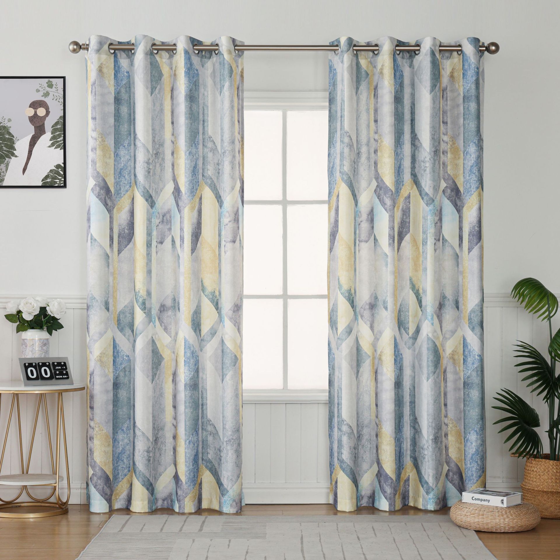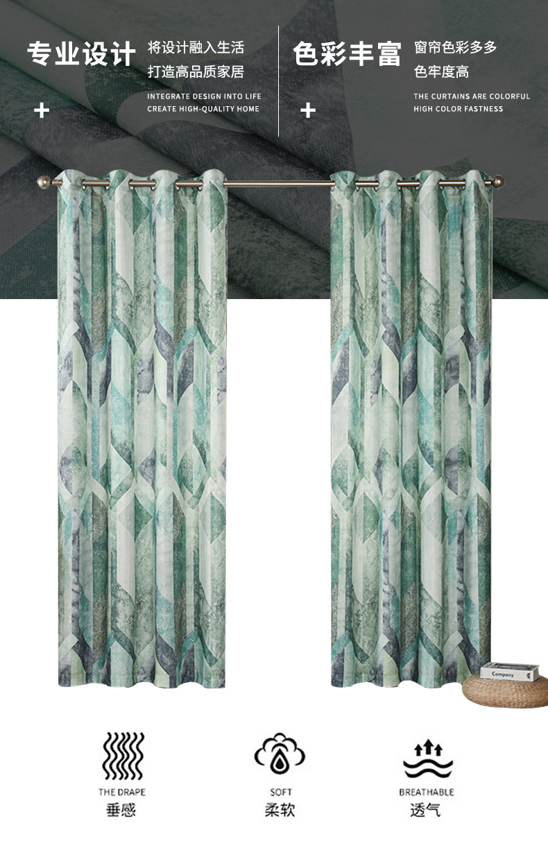 북유럽 스타일 컬렉션 그래픽 인쇄 정전 커튼 패브릭 호텔 빌라 침실 폴리 에스테르 국경 커튼 완제품스토어 가기