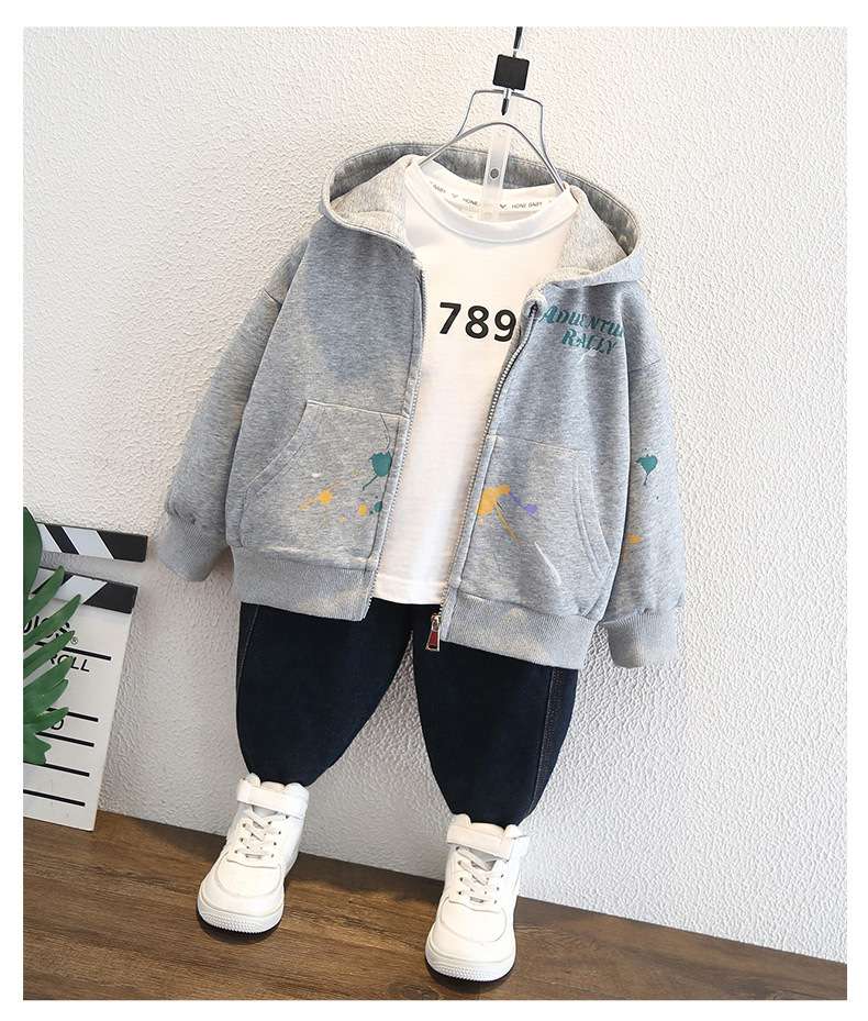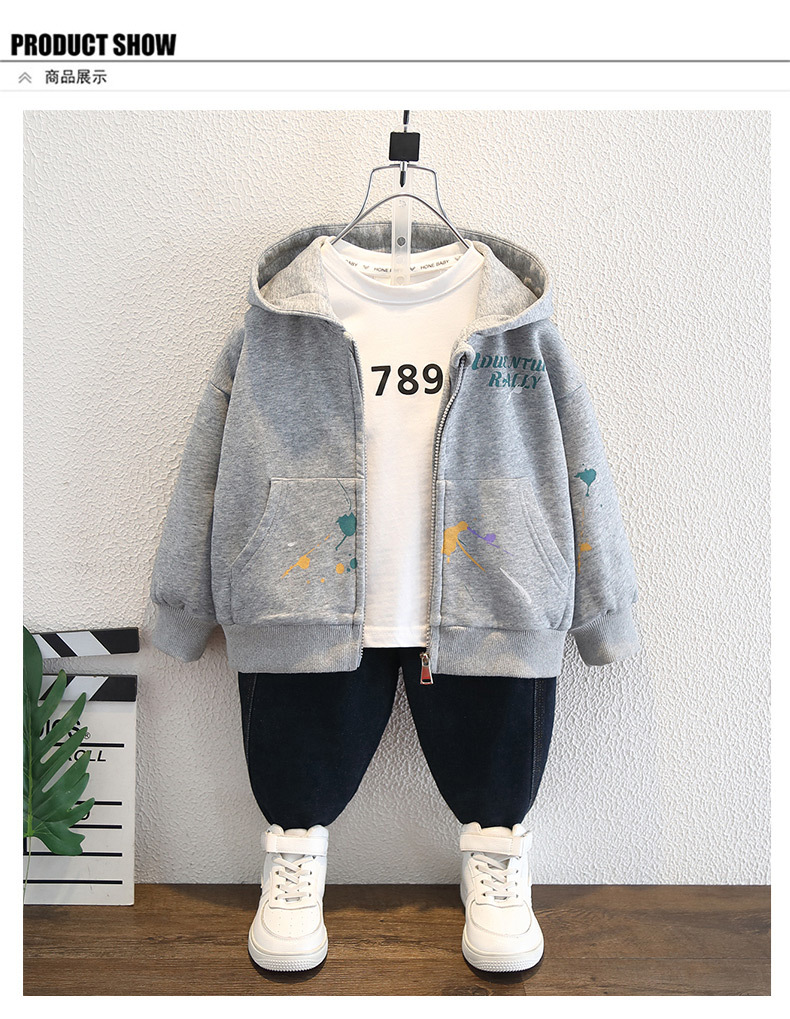 소년 지퍼 스웨트 셔츠 재킷 봄, 가을 2025 새로운 어린이 봄 옷 잘 생긴 유행 멋진 어린이 후드 가디건 봄