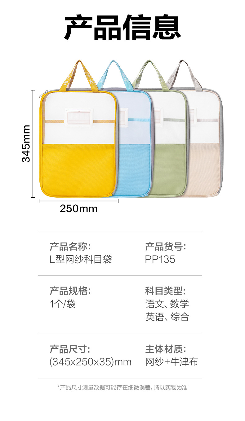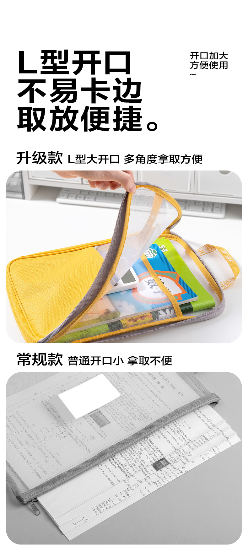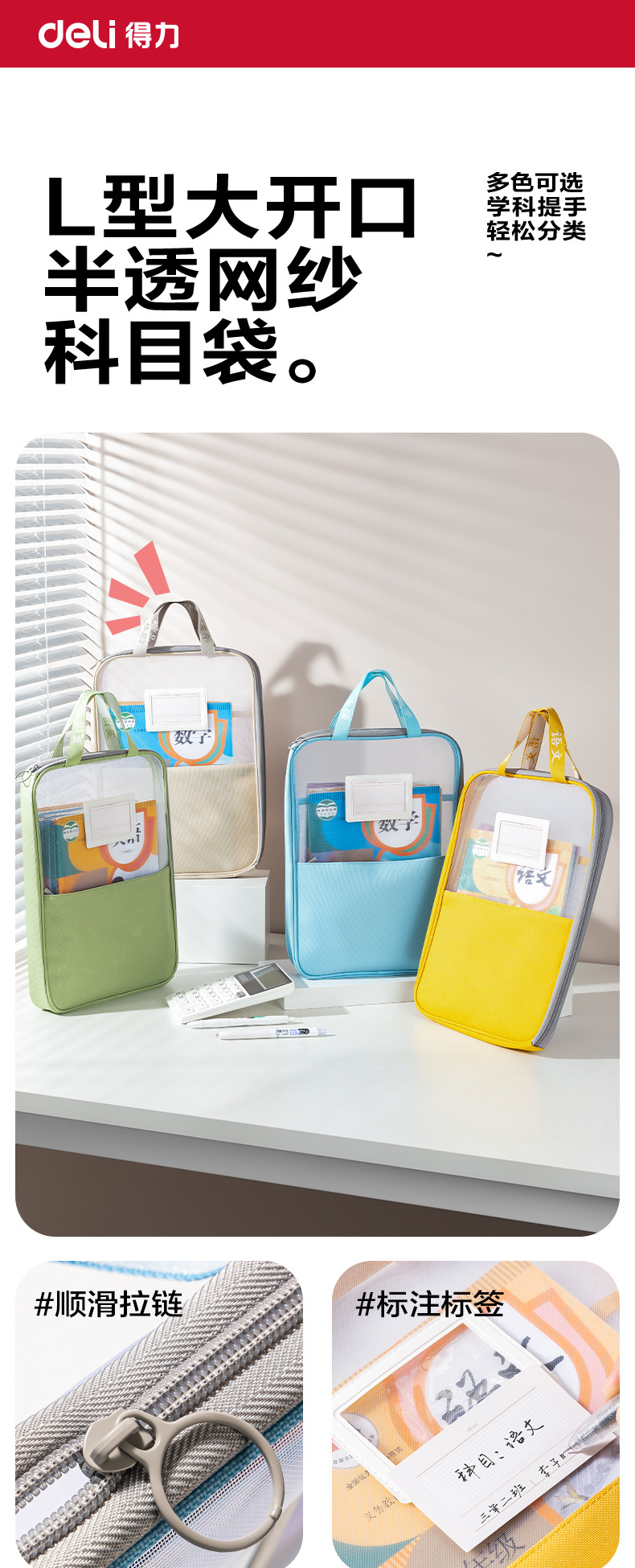 델리 L 자형 징계 지퍼 가방 투명 문서 가방 정보 가방 3 차원 메쉬 가방 운영 보관 가방 PP135스토어 가기