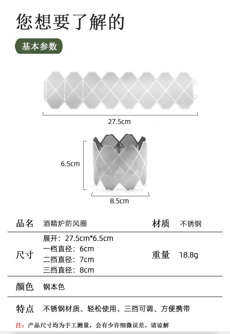 야외 알코올 스토브 방풍 링 캠핑 스테인레스 스틸 울트라 라이트 윈드 스크린 그리드 윈드 스크린 작은 알코올 스토브