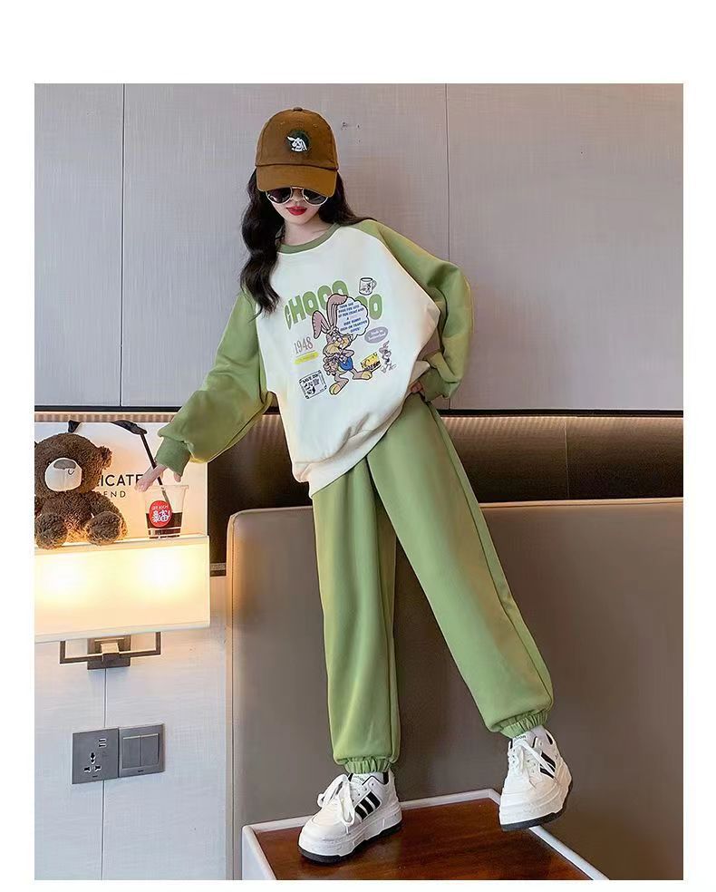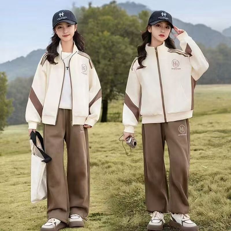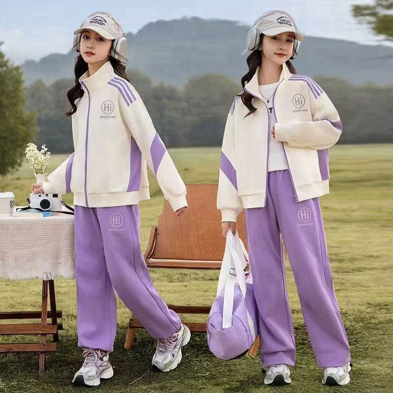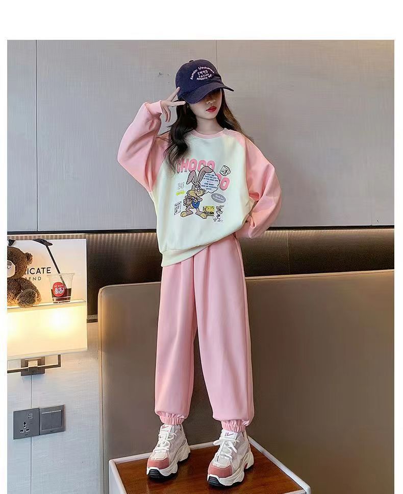 소녀 가을 원피스 2025 새로운 세트 스포츠 어린이 봄과 가을 유행 서양식 소녀 레저 투피스 세트