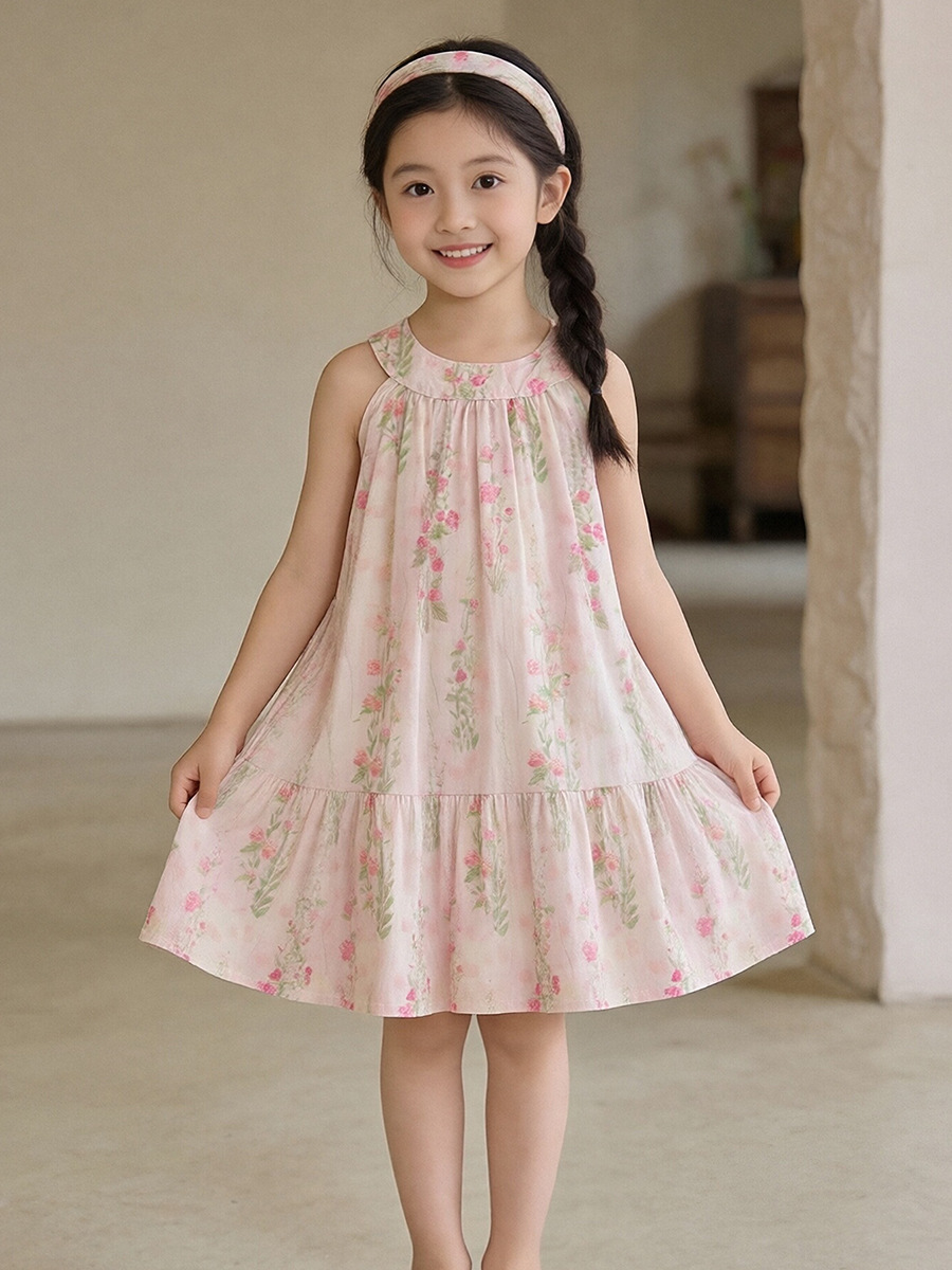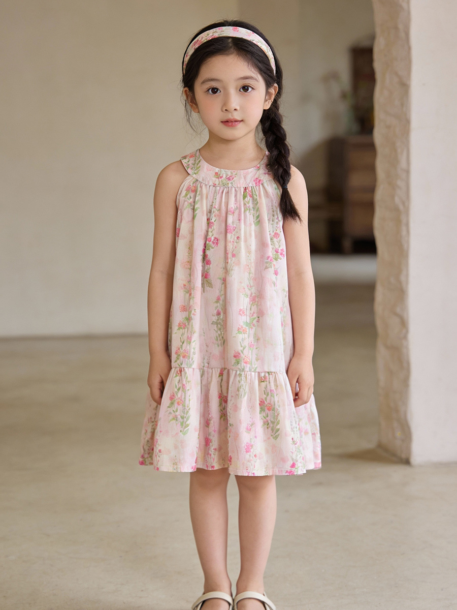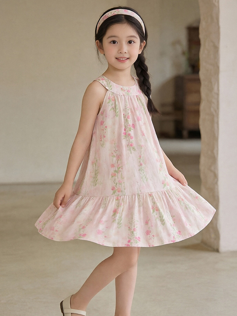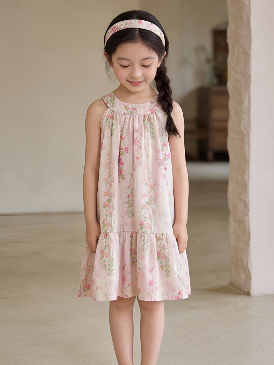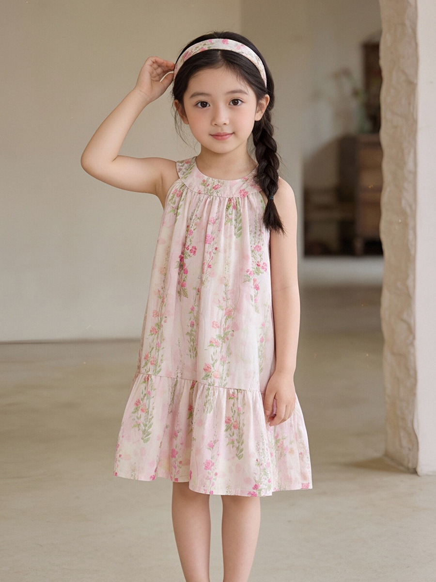 MDD 어린이 목가적 꽃 원피스 2025 여름 소녀 핑크 달콤한 목 민소매 조끼 원피스스토어 가기