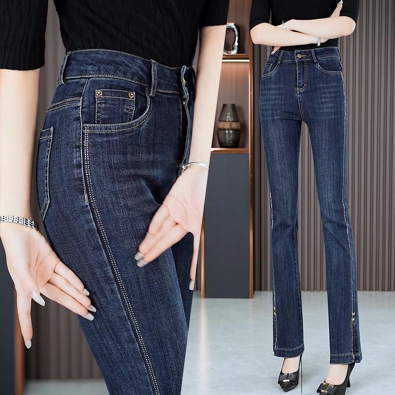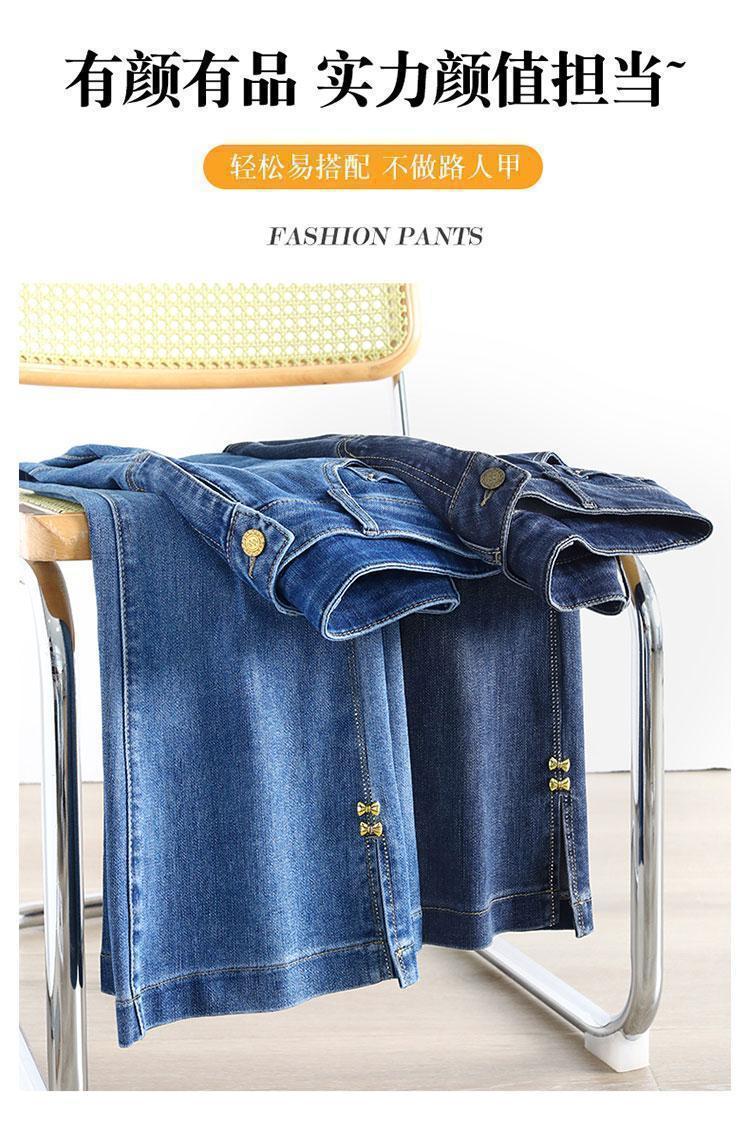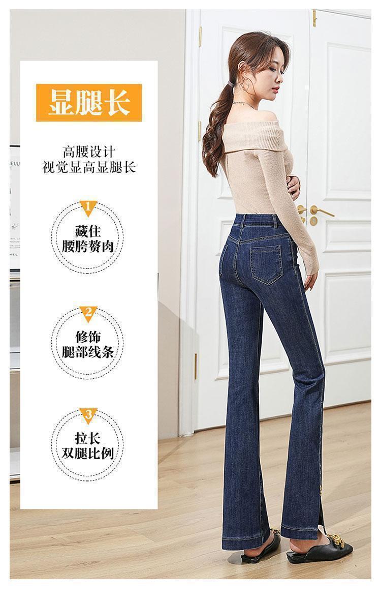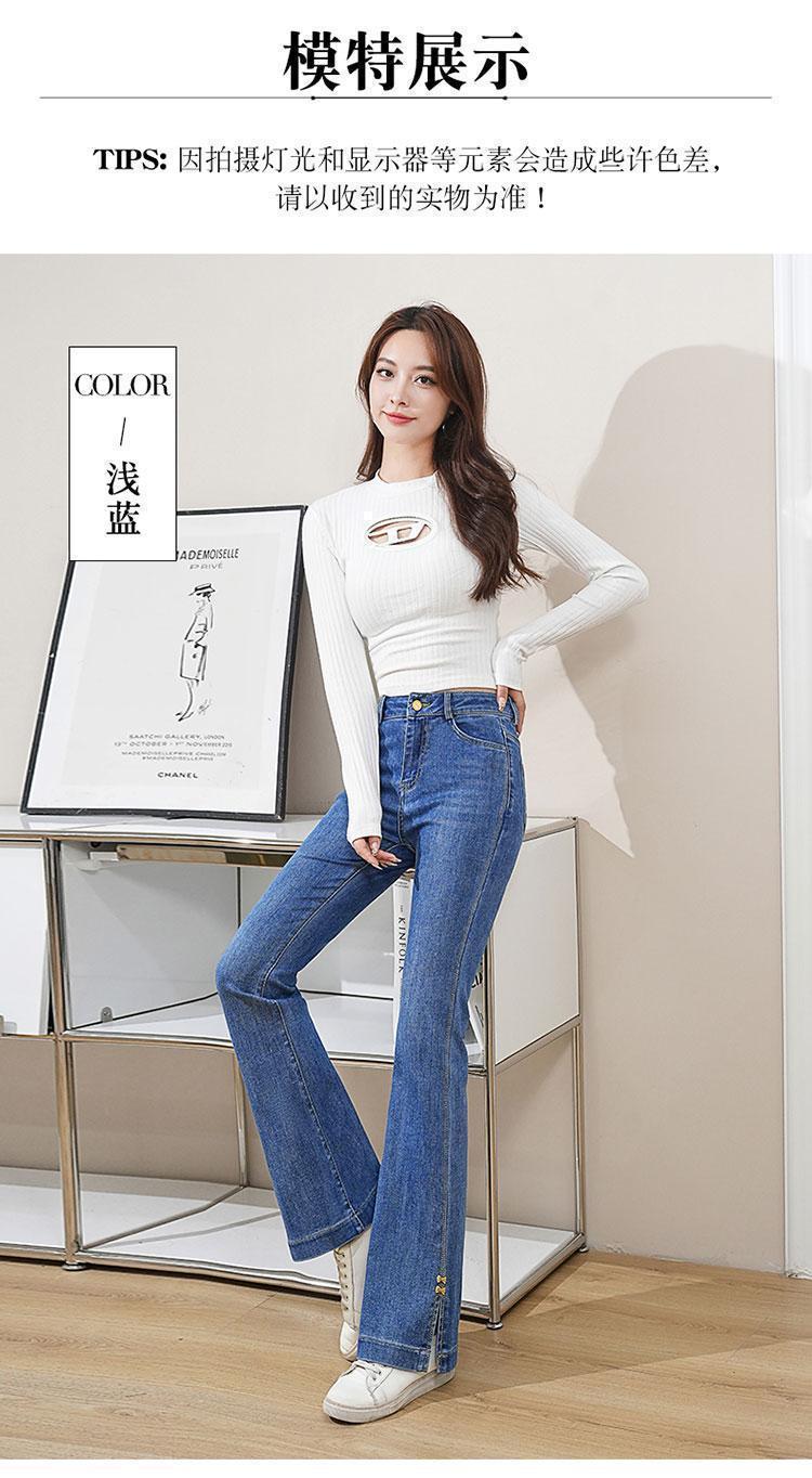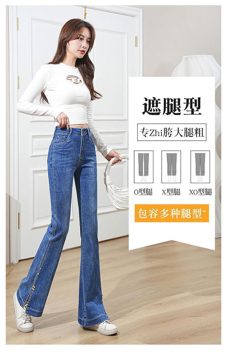 새로운 도착 자른 스키니 청바지 여성의 짧은 봄과 가을 높은 허리 스트레이트 스트레치 슬림 플레어 팬츠스토어 가기