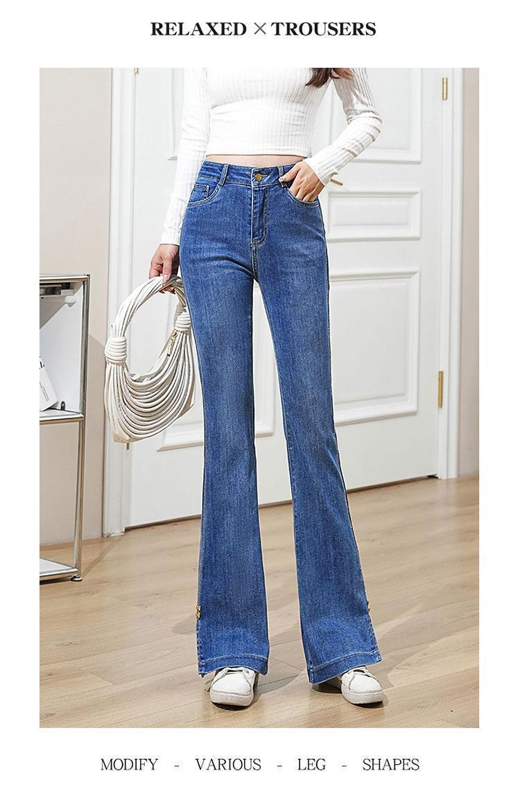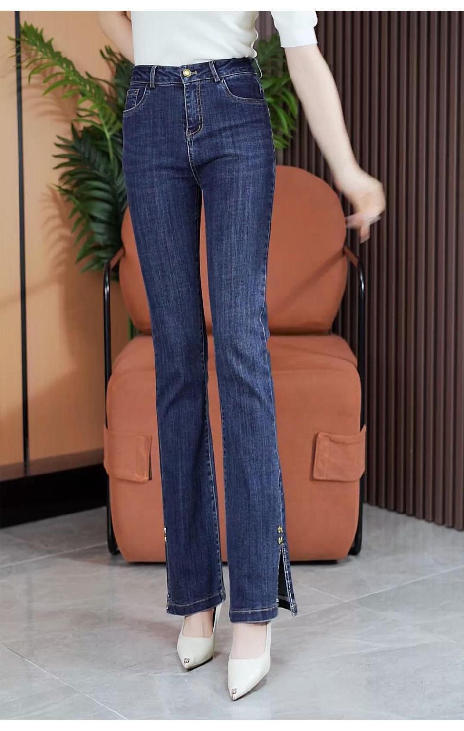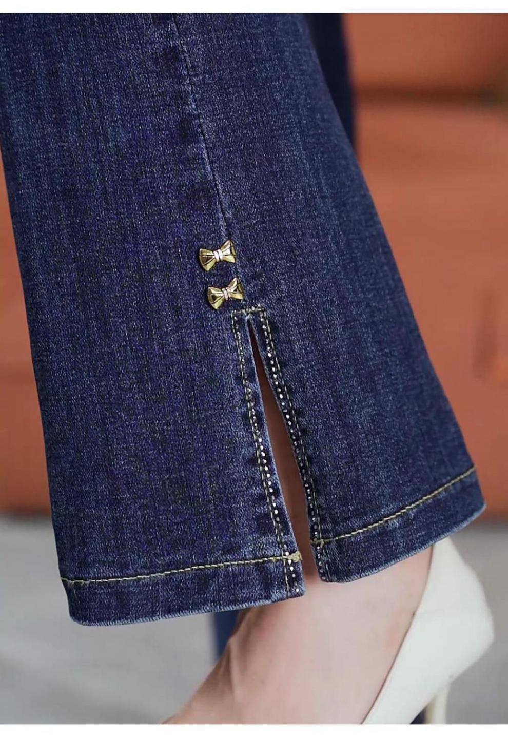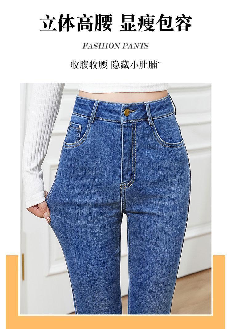 새로운 도착 자른 스키니 청바지 여성의 짧은 봄과 가을 높은 허리 스트레이트 스트레치 슬림 플레어 팬츠스토어 가기