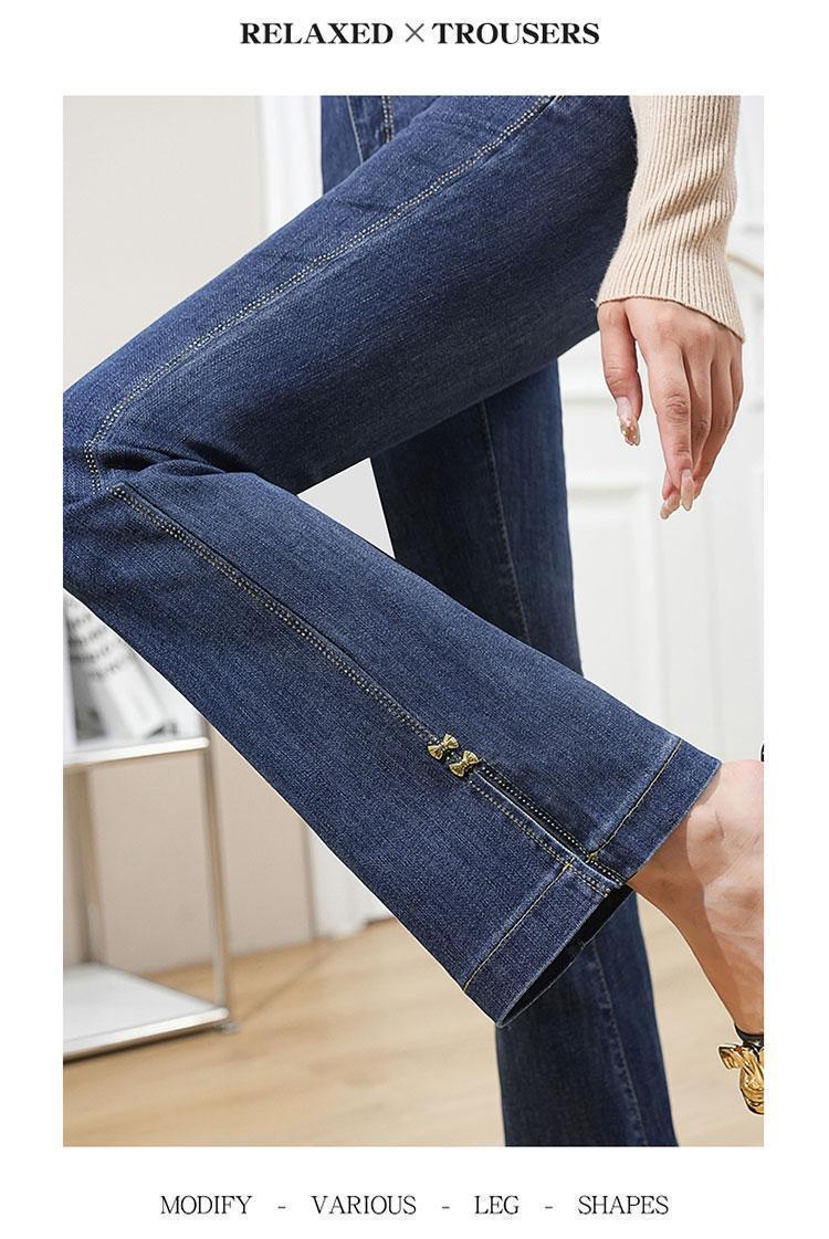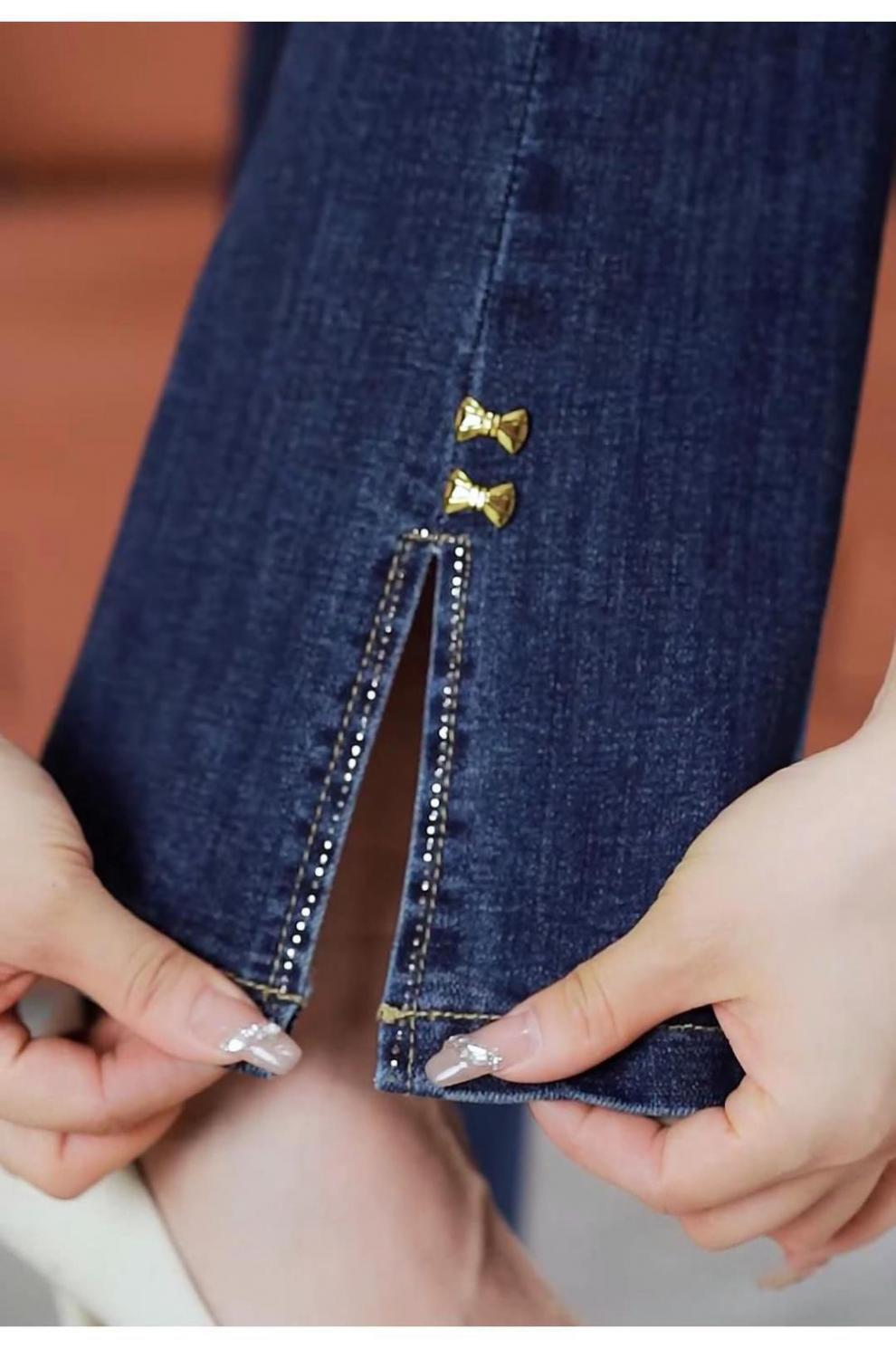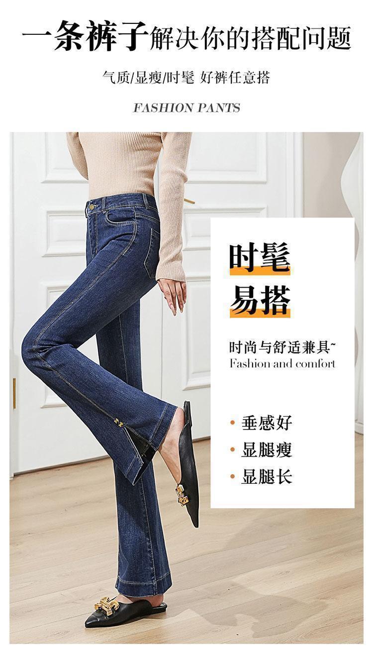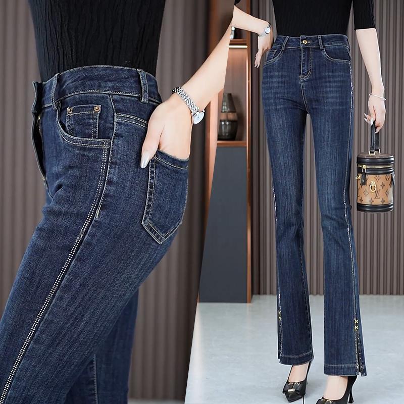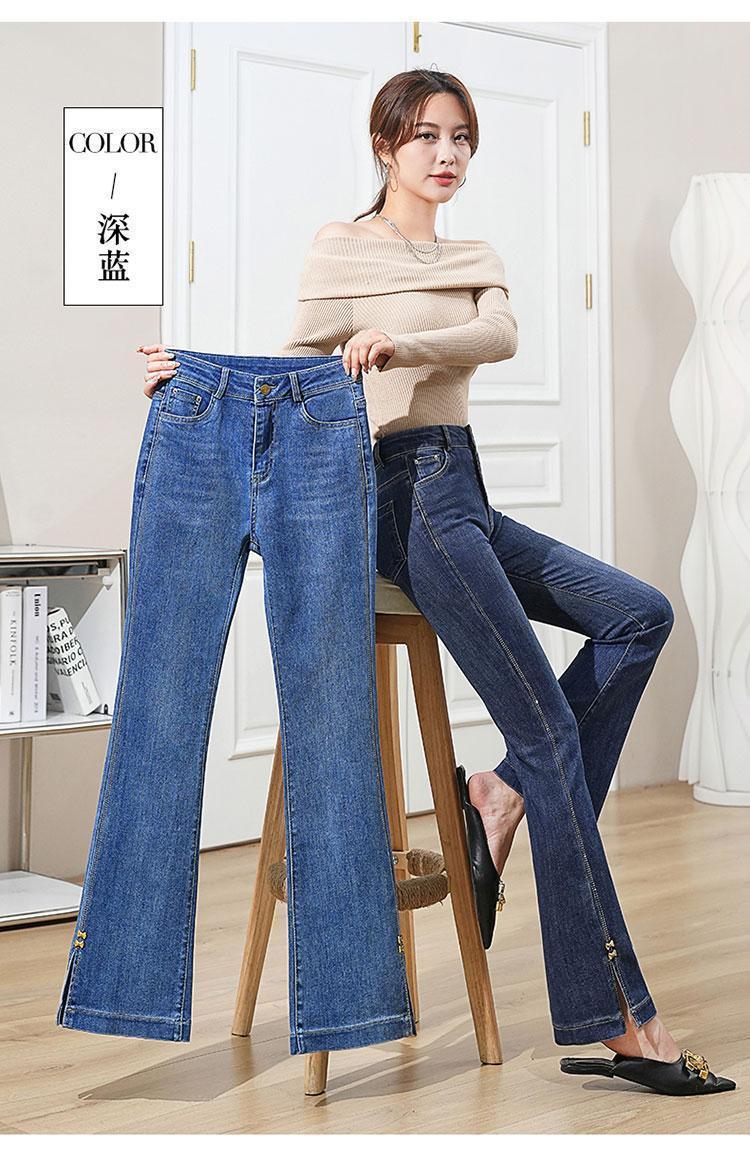 새로운 도착 자른 스키니 청바지 여성의 짧은 봄과 가을 높은 허리 스트레이트 스트레치 슬림 플레어 팬츠스토어 가기