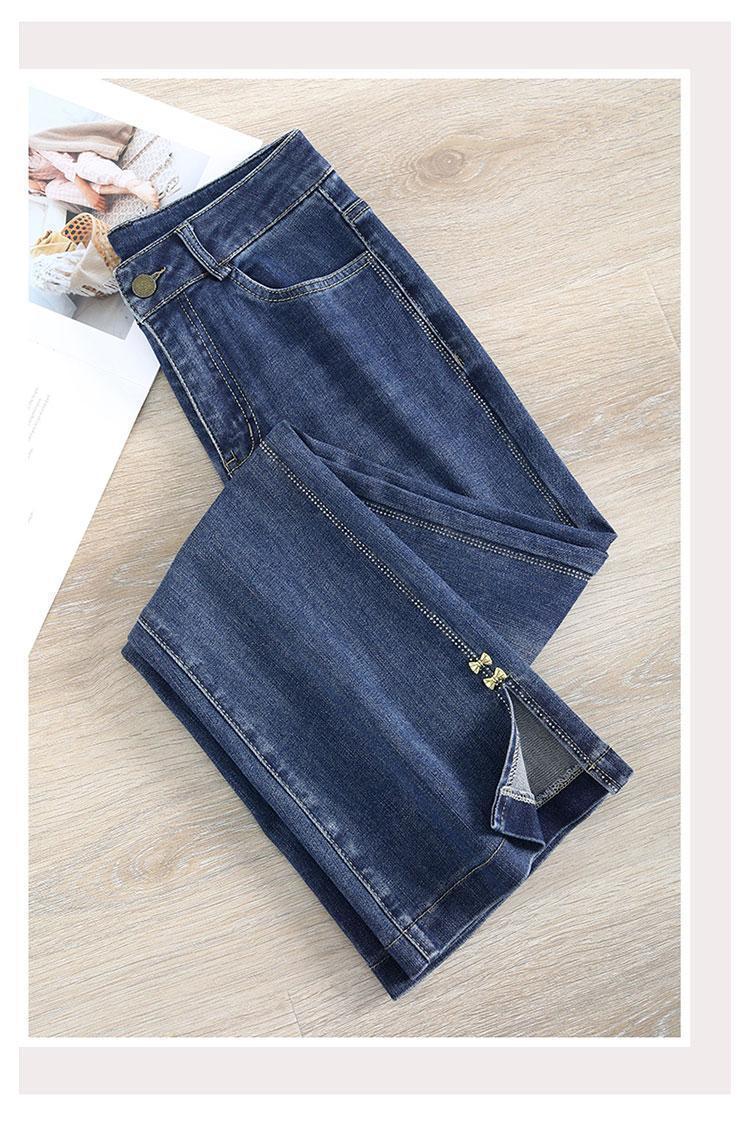새로운 도착 자른 스키니 청바지 여성의 짧은 봄과 가을 높은 허리 스트레이트 스트레치 슬림 플레어 팬츠