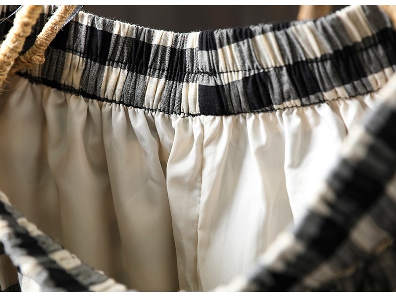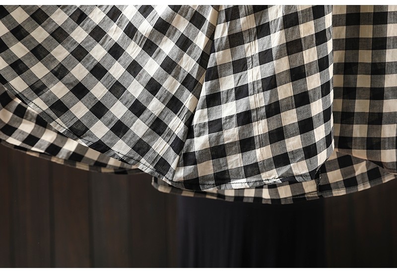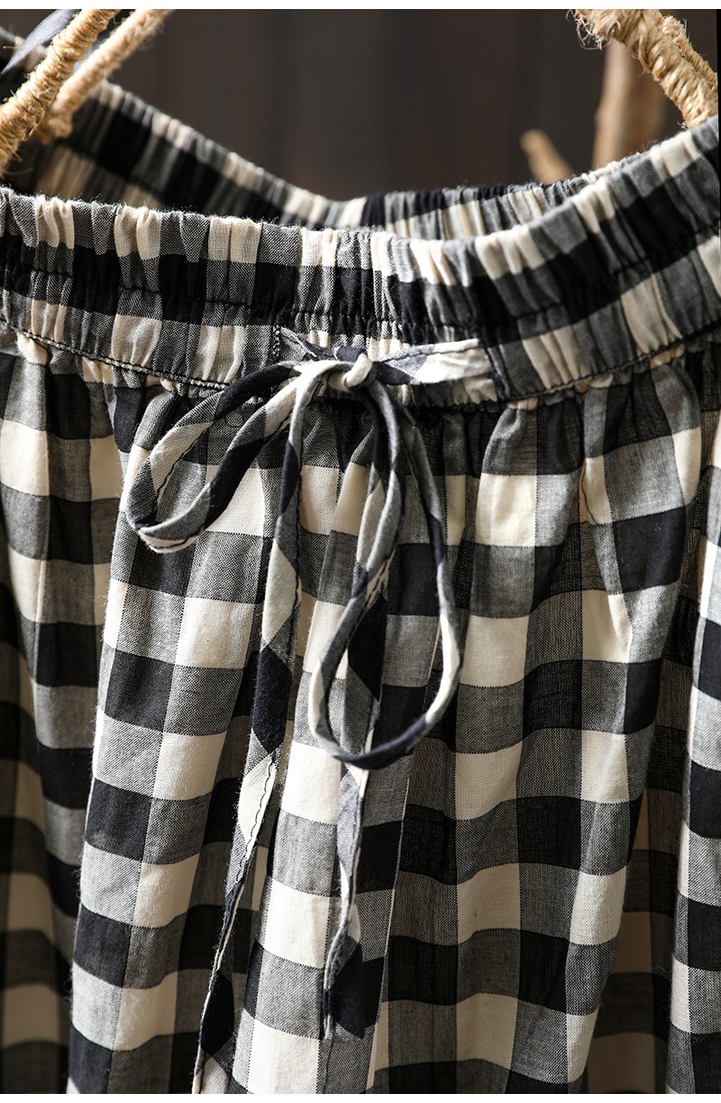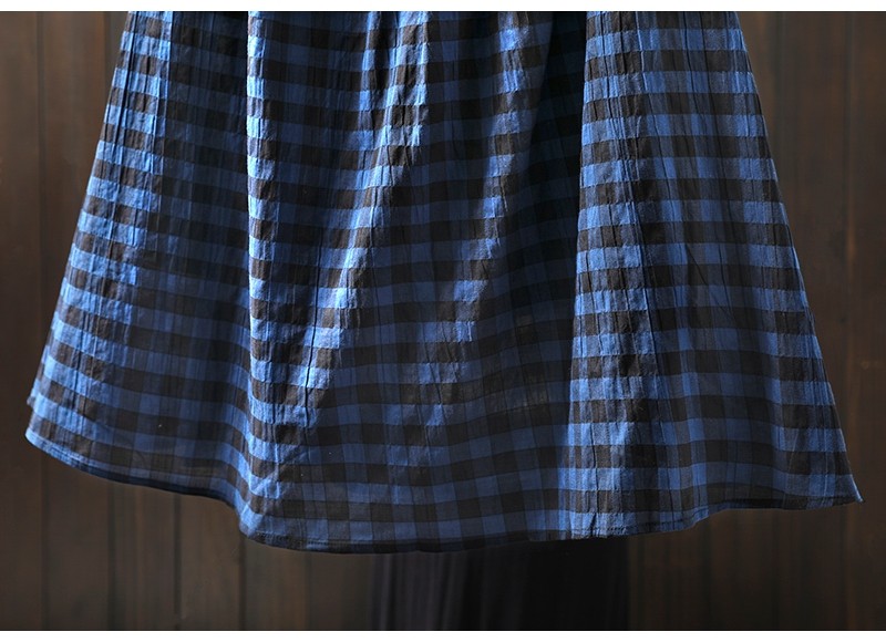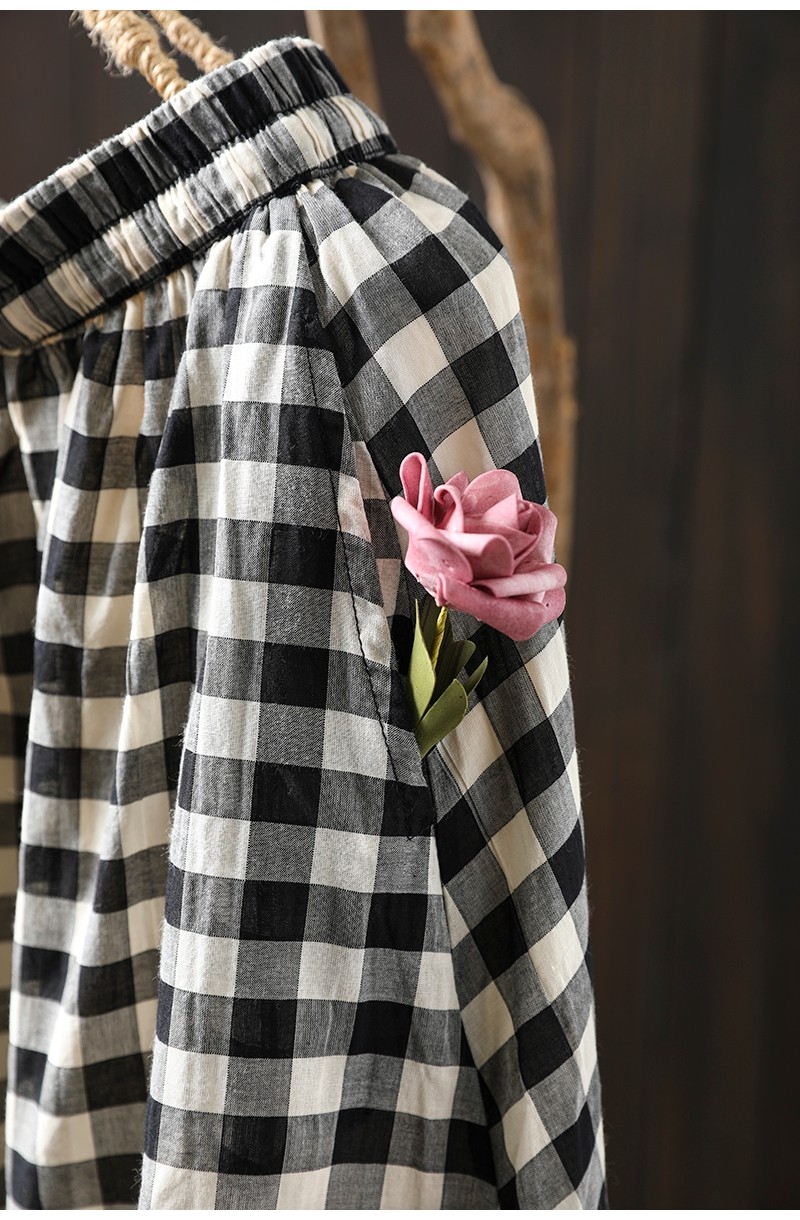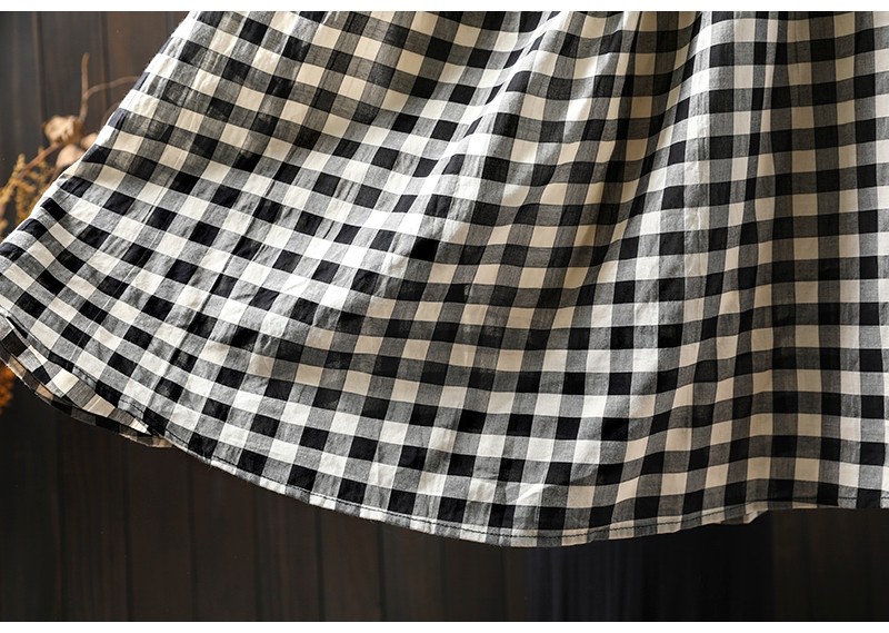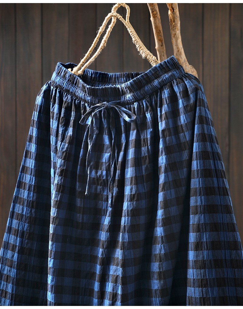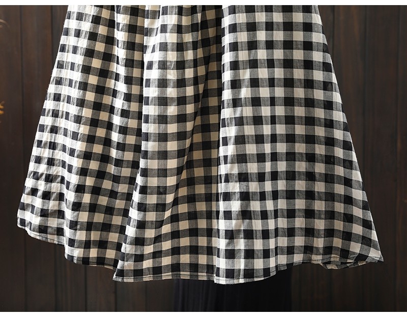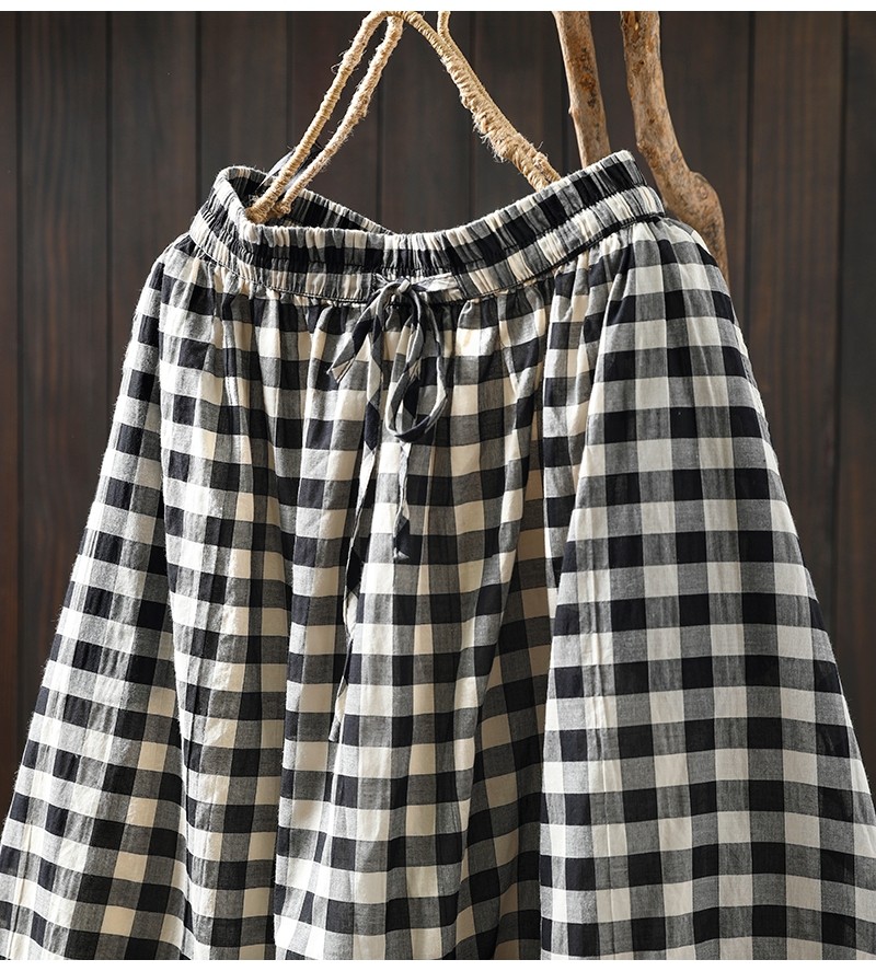 2025 봄 새로운 면 격자 무늬 스커트 여성 느슨한 핏 캐주얼 예술적 중간 길이의 대형 스윙 A 라인 스커트스토어 가기