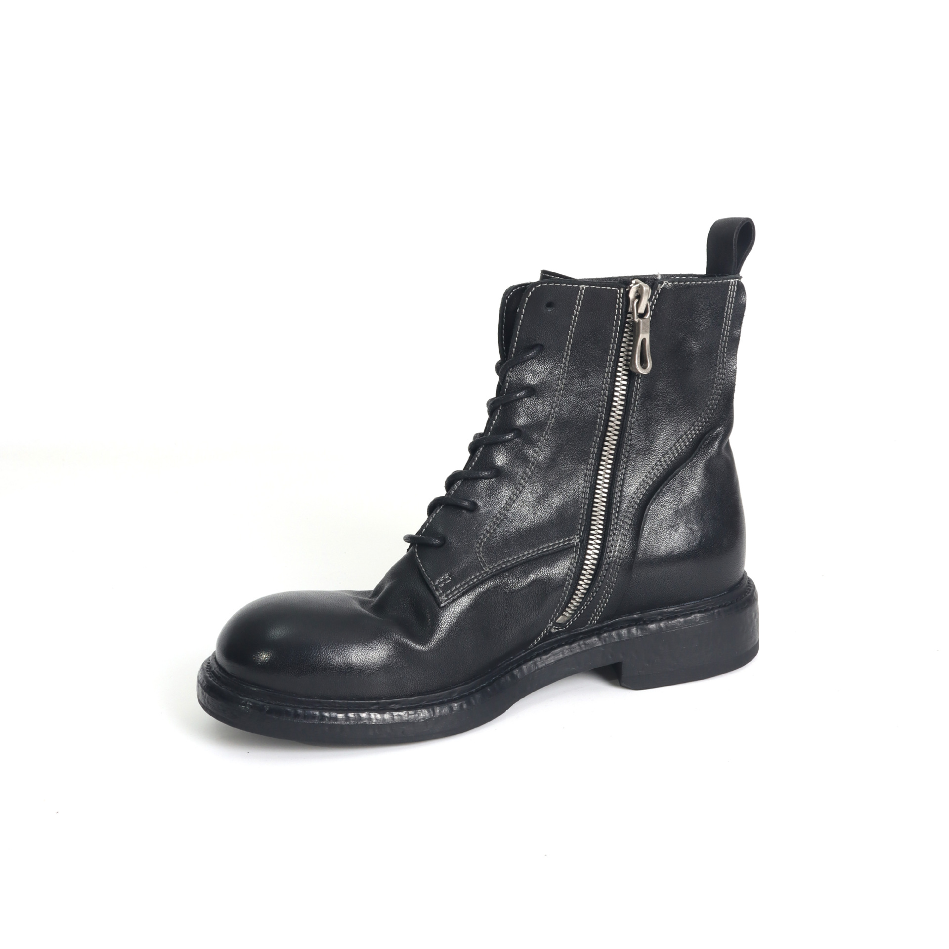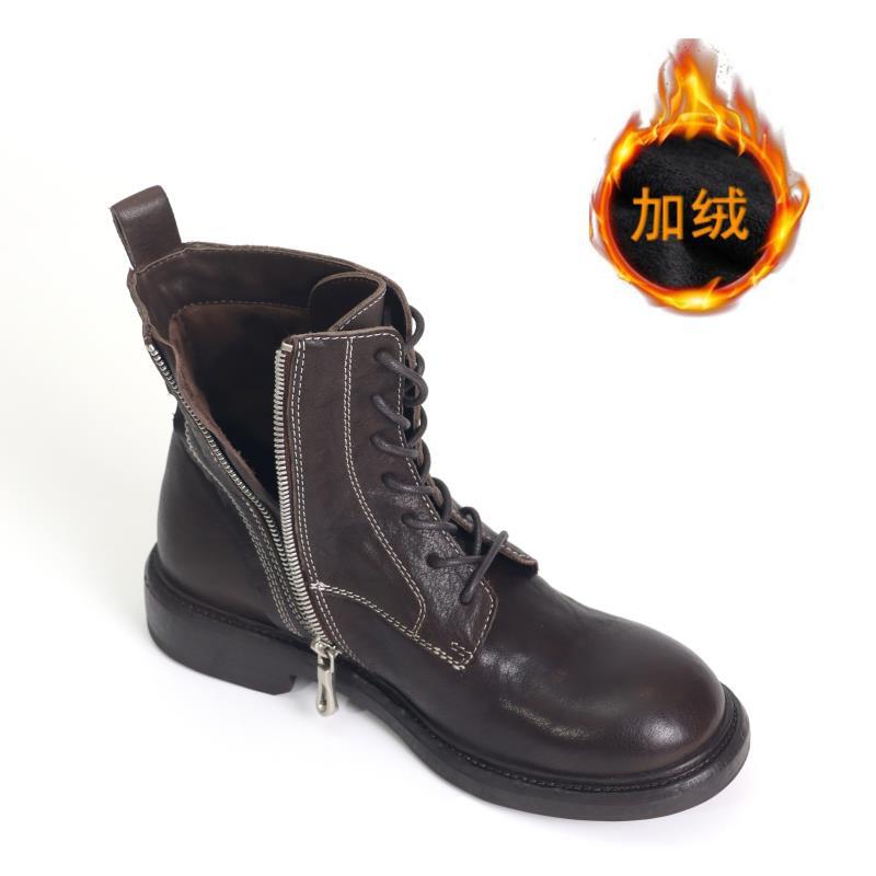 여성용 소가죽 핸드메이드 마틴 부츠, 브리티시 스타일 라운드 토 레이스업 플랫 사이드 지퍼 숏부츠, 오토바이 부츠 2921-19스토어 가기