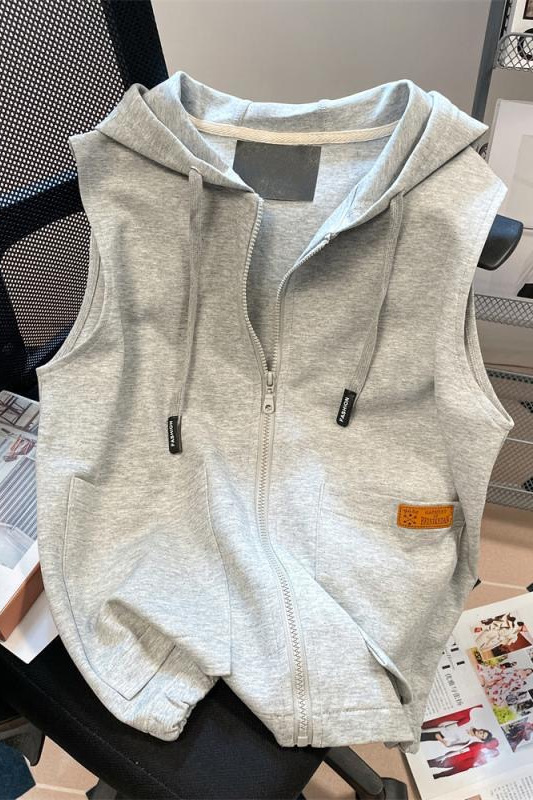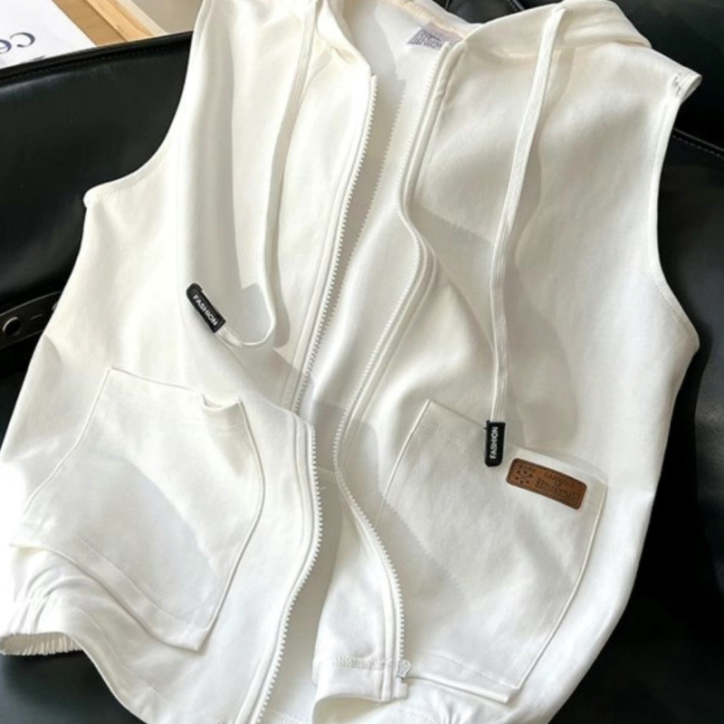 여성을 위한 초봄 신상 민소매 스웨트셔츠 후드 재킷, 니치 디자인, 컬리지 스타일 조끼 탑, 아우터용 가디건스토어 가기