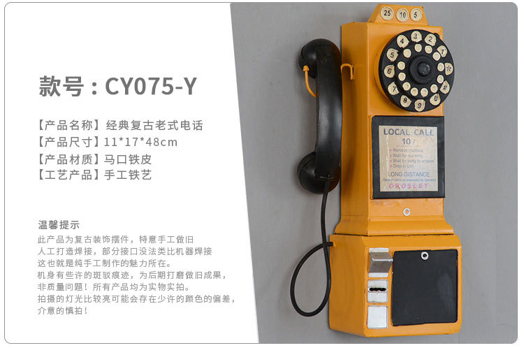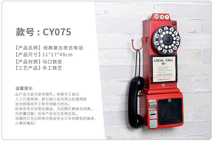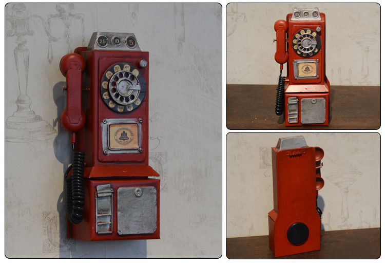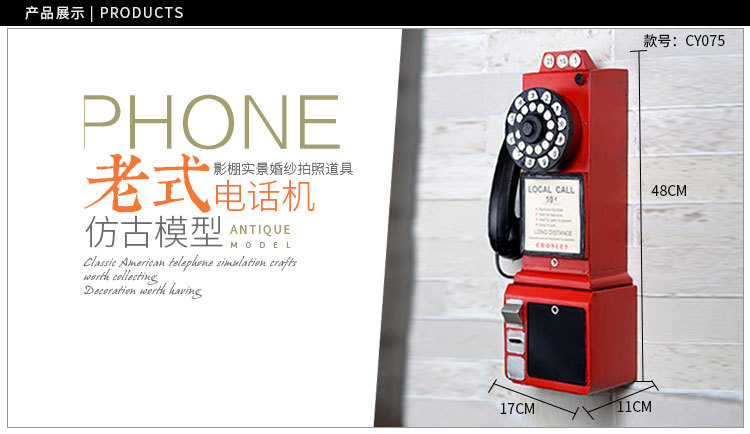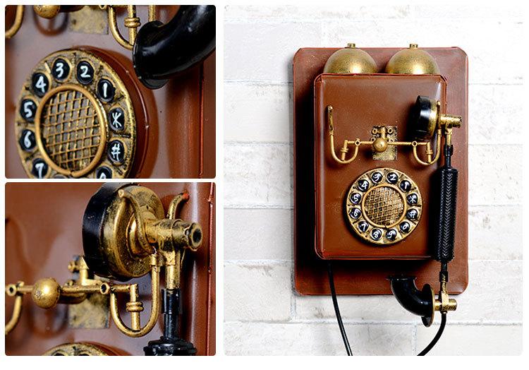 복고풍 구식 벽걸이 전화 모델 의류 매장 바 창 장식 벽 장식 사진 소품 없음스토어 가기