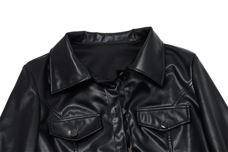 유럽과 미국의 스트리트 핫걸 스타일 오토바이 재킷 라펠 버튼 가죽 재킷 여성 여름 섹시한 배꼽 노출 스트리트 짧은 재킷 탑