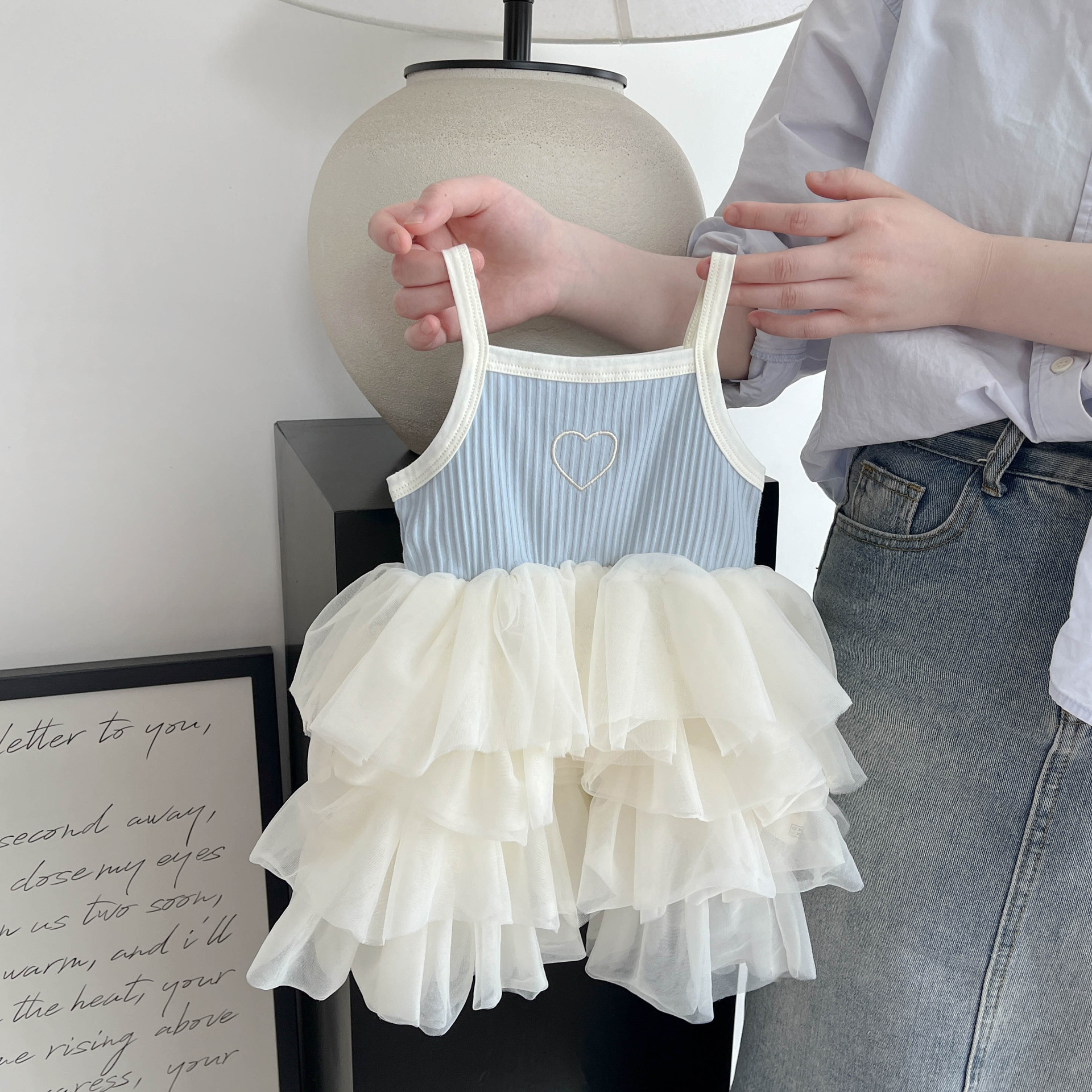 아기 소녀 원피스 2025 여름 새로운 아기 슬링 푹신한 스커트 바느질 메쉬 스커트 소녀 케이크 스커트스토어 가기
