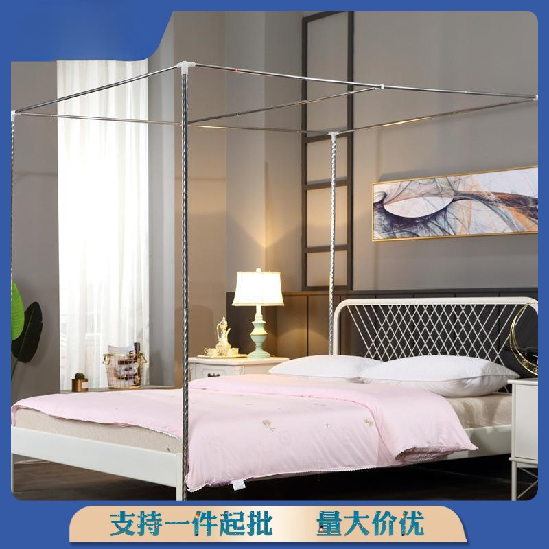 모기장 브래킷, 폴 액세서리, 3개의 개방형 스테인레스 스틸 튜브, 사각형 상단 선반, 두꺼운 단일 개방형 바닥에서 천장까지의 공주 모기장