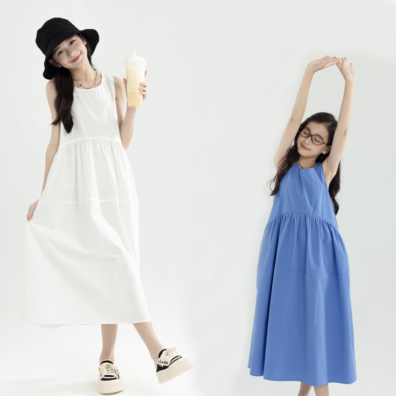 2025 년 여름 새 스타일 큰 어린이 빈 스커트 여중생 민소매 원피스 중학생 긴 스커트 독특한 한국 A 라인 스커트