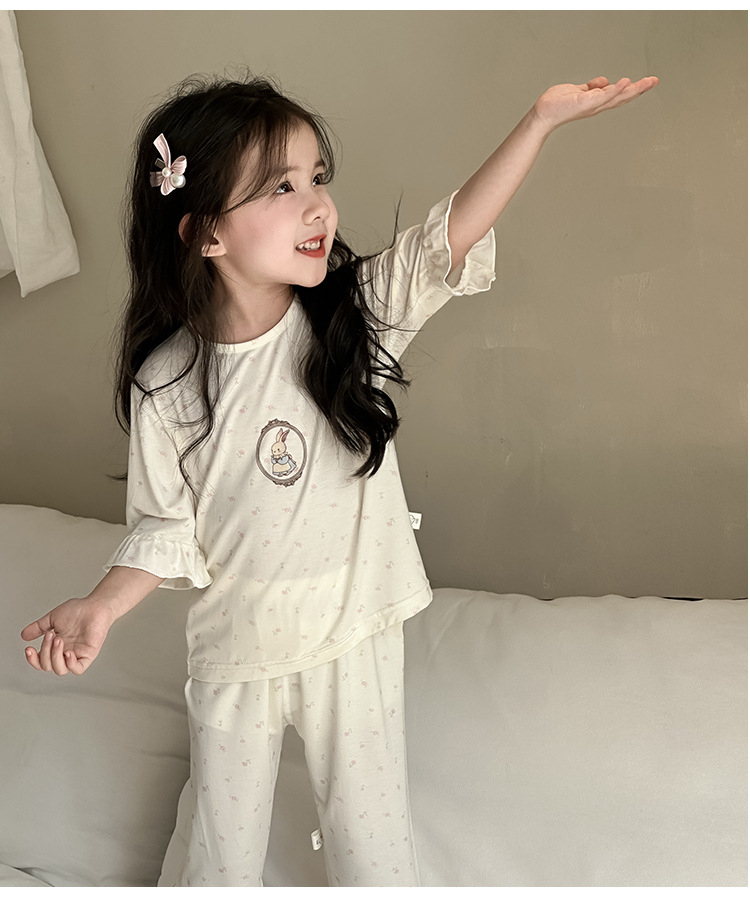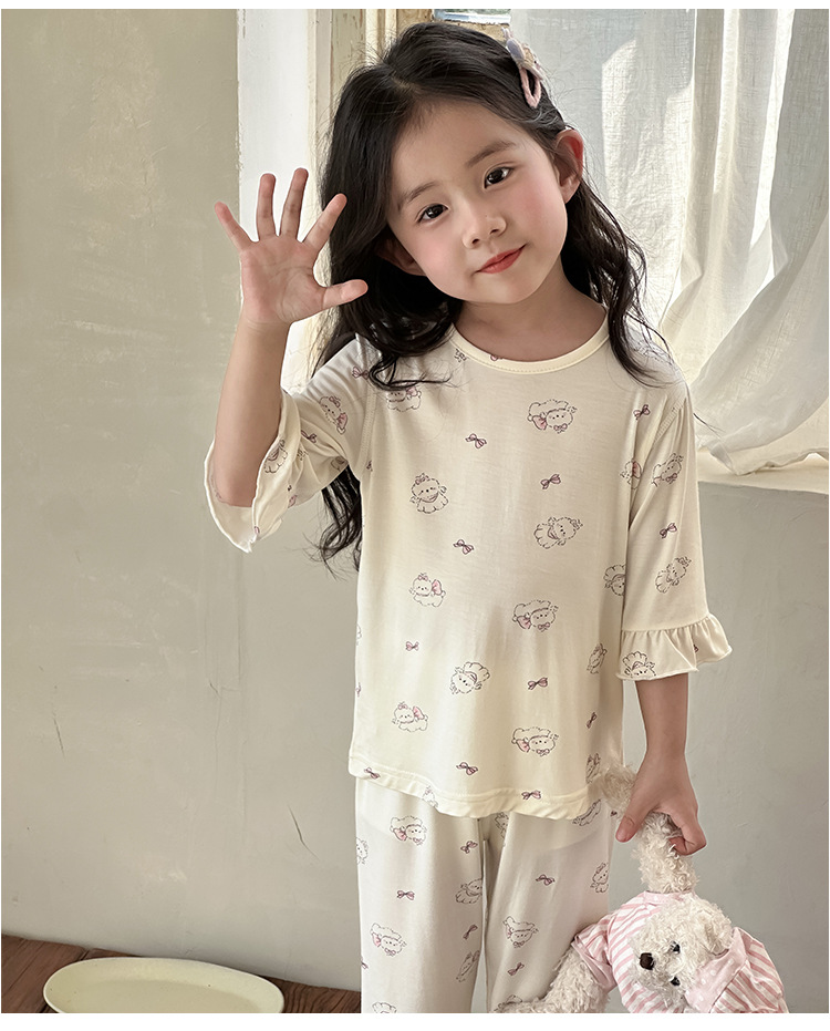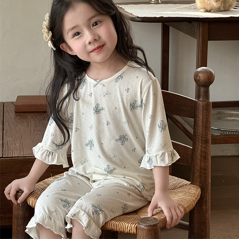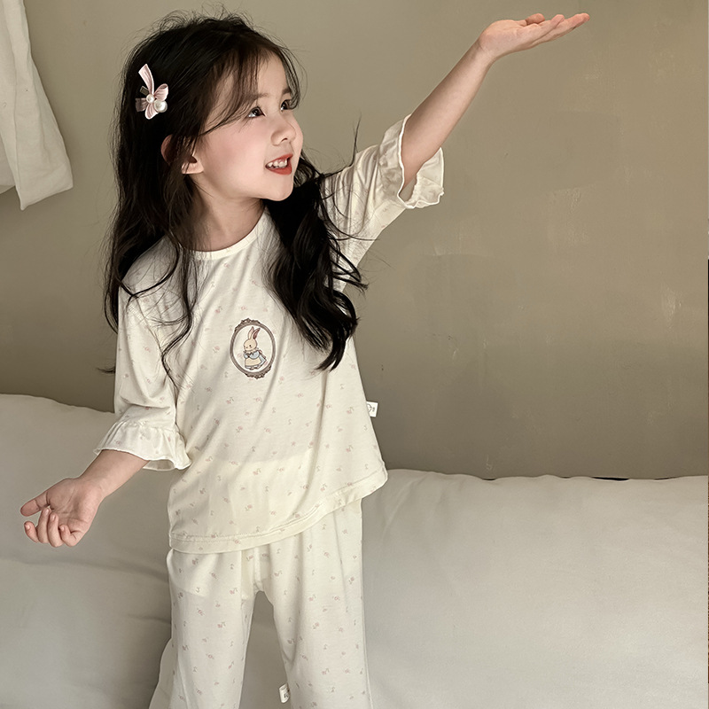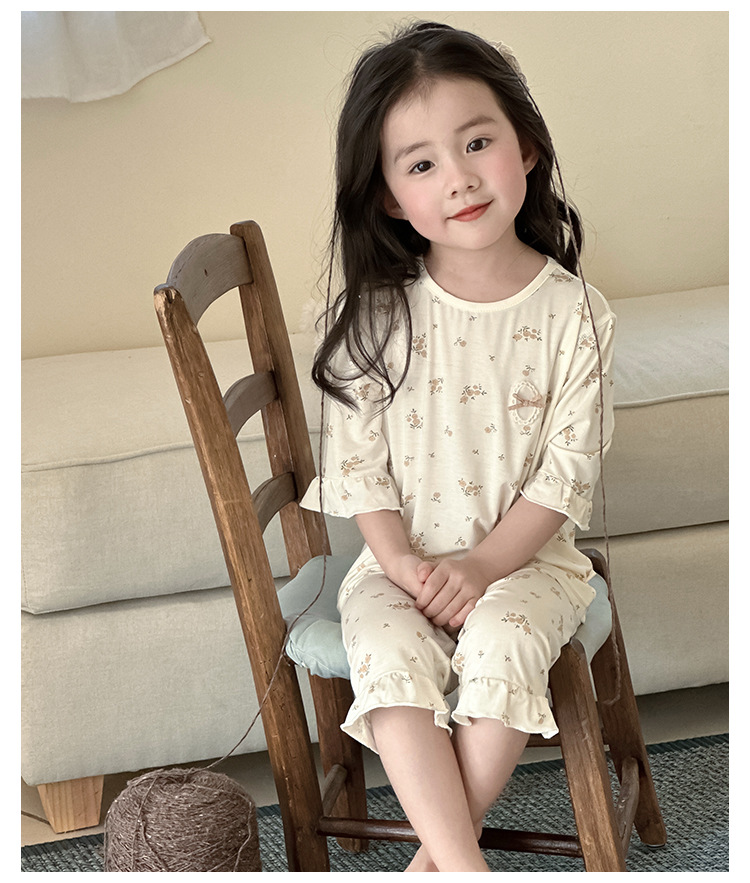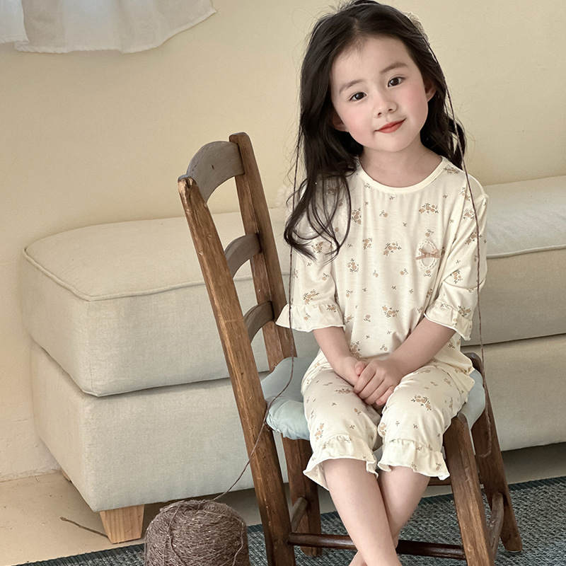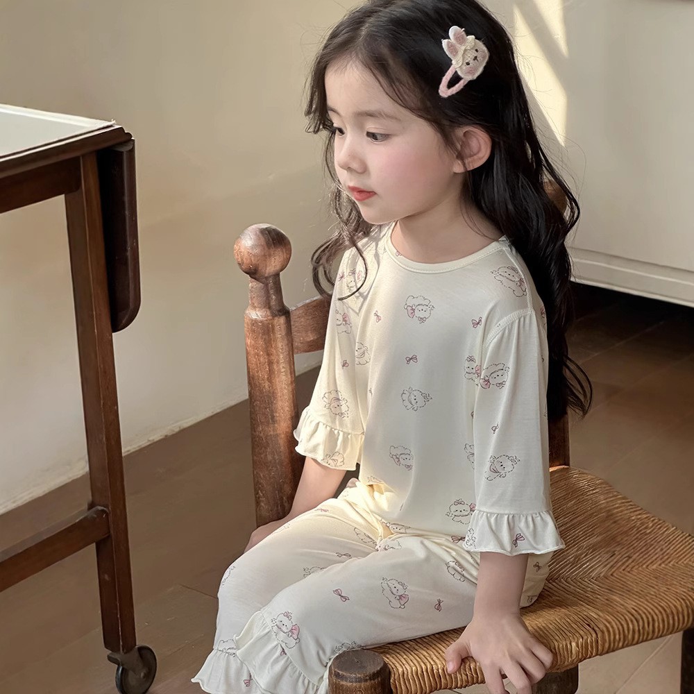 어린이 잠옷 소녀 여름 쿨 센스 모달 아기 홈 옷 소녀 공주 스타일 한국 스타일 7 점 소매 세트스토어 가기