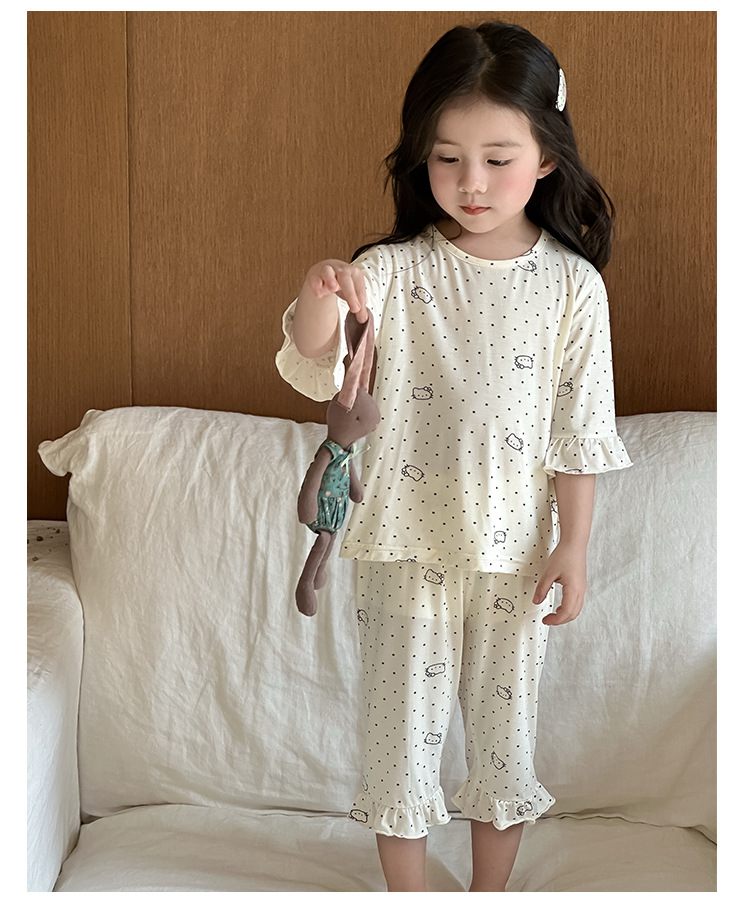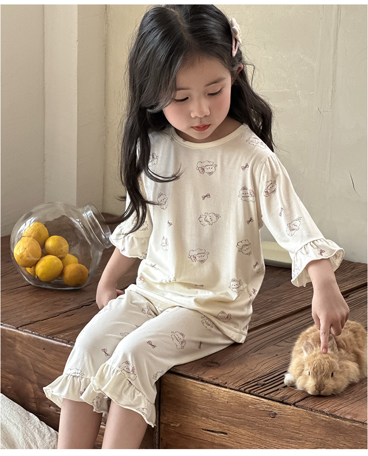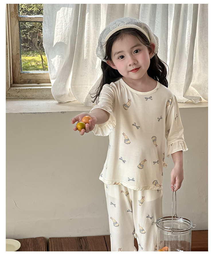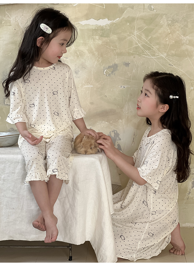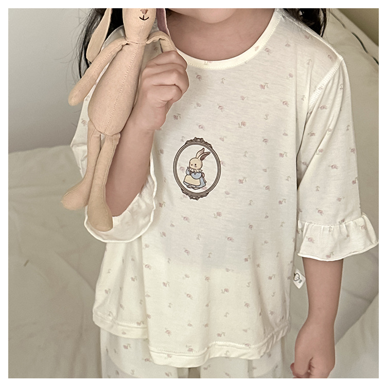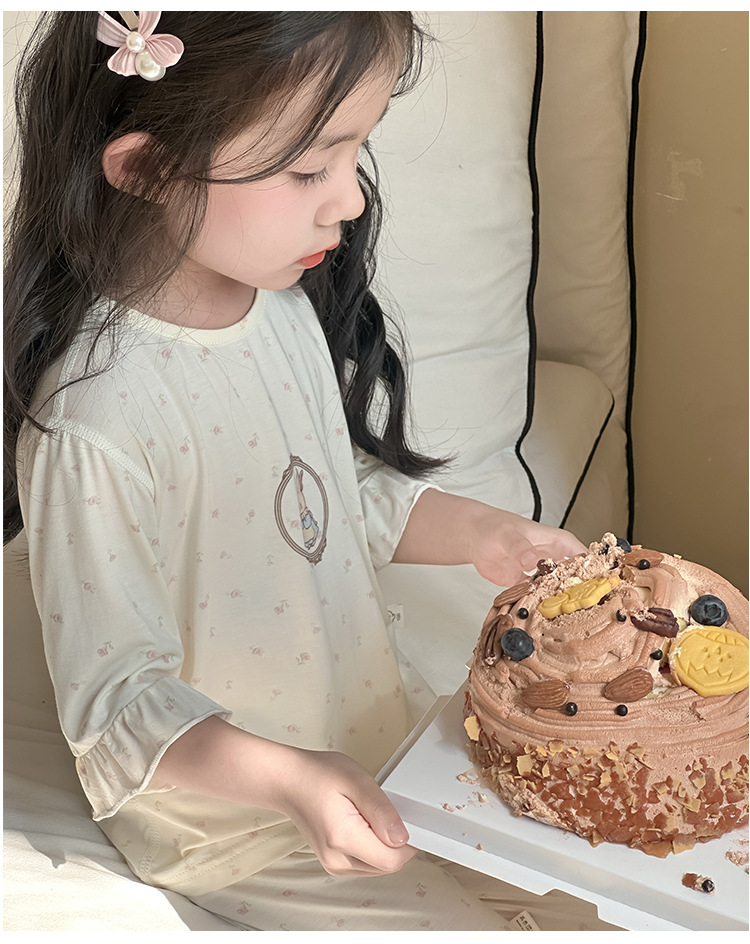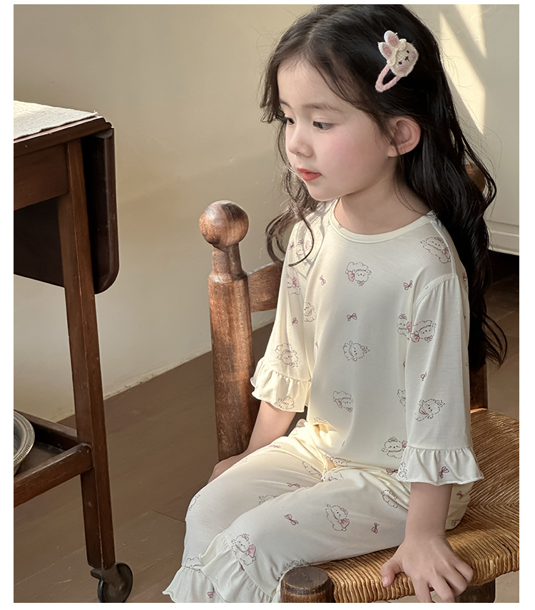 어린이 잠옷 소녀 여름 쿨 센스 모달 아기 홈 옷 소녀 공주 스타일 한국 스타일 7 점 소매 세트스토어 가기