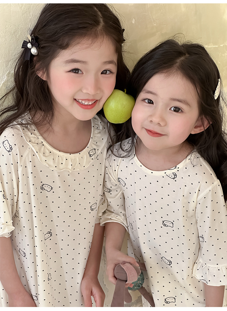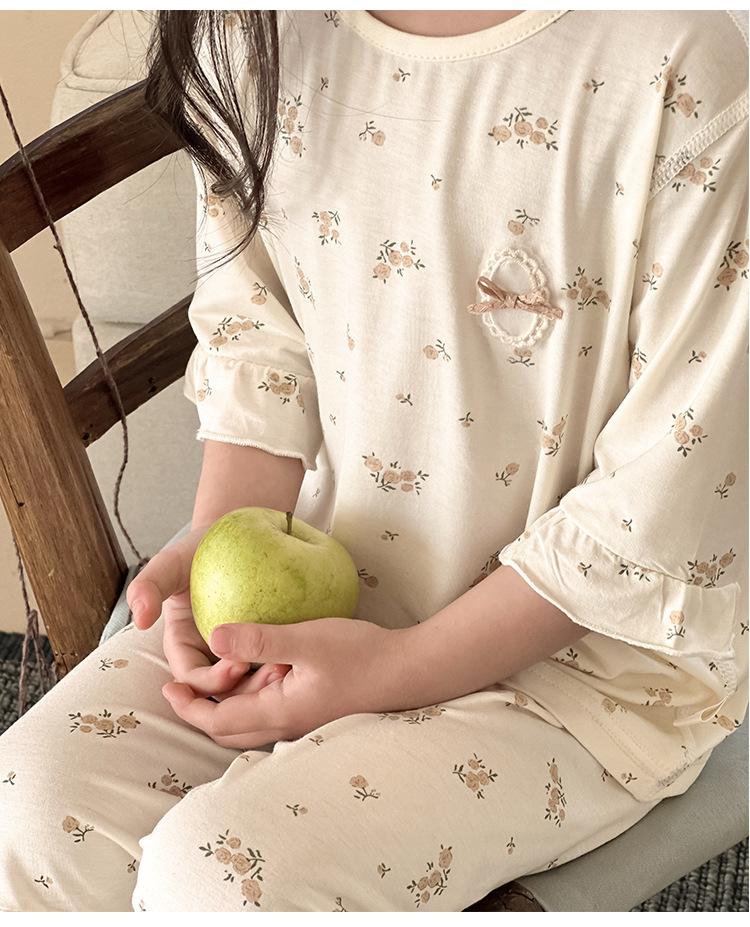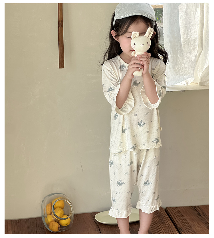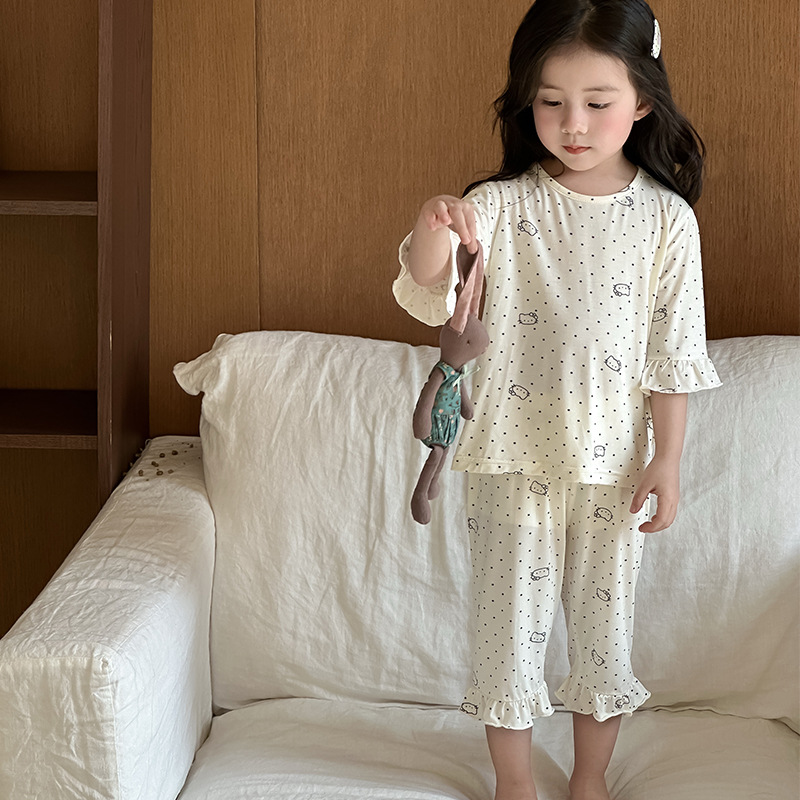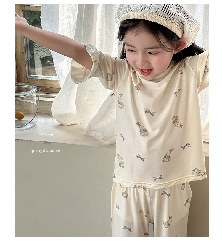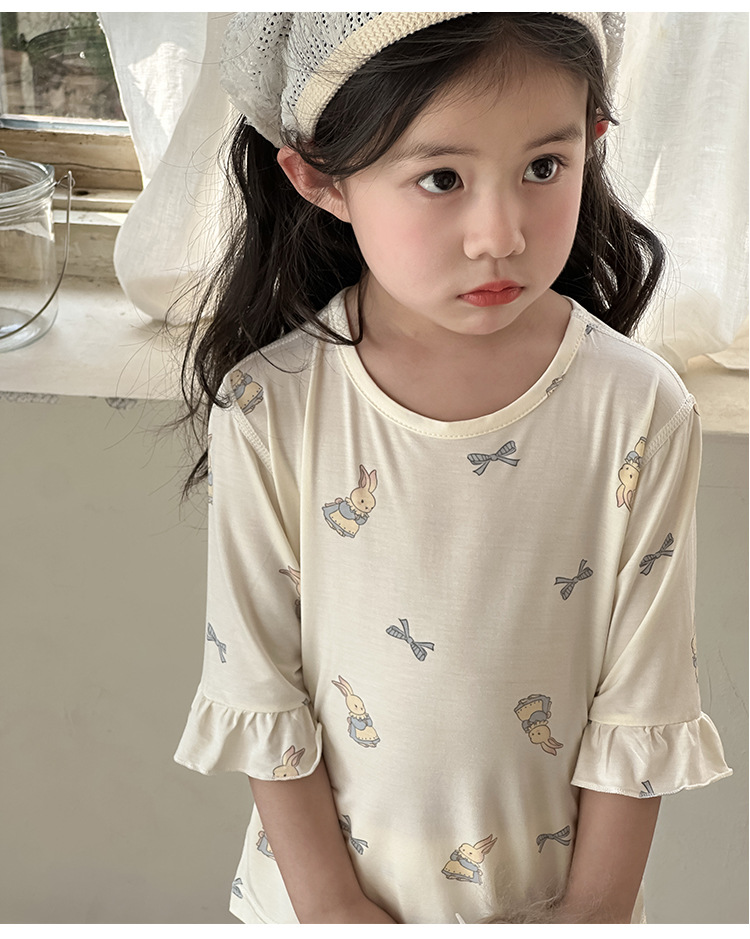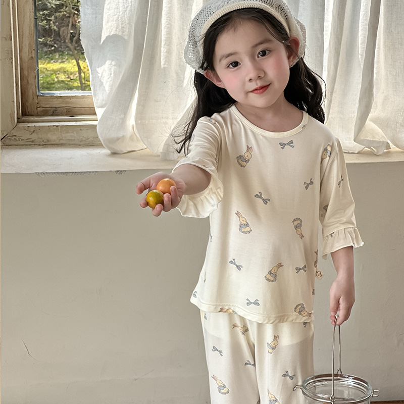 어린이 잠옷 소녀 여름 쿨 센스 모달 아기 홈 옷 소녀 공주 스타일 한국 스타일 7 점 소매 세트스토어 가기