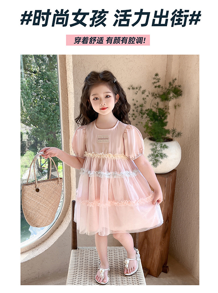 여자 드레스 여름 2025 새로운 퍼프 슬리브 아기 소녀 유행 한국 스타일 공주 드레스 어린이 메쉬 스커트스토어 가기