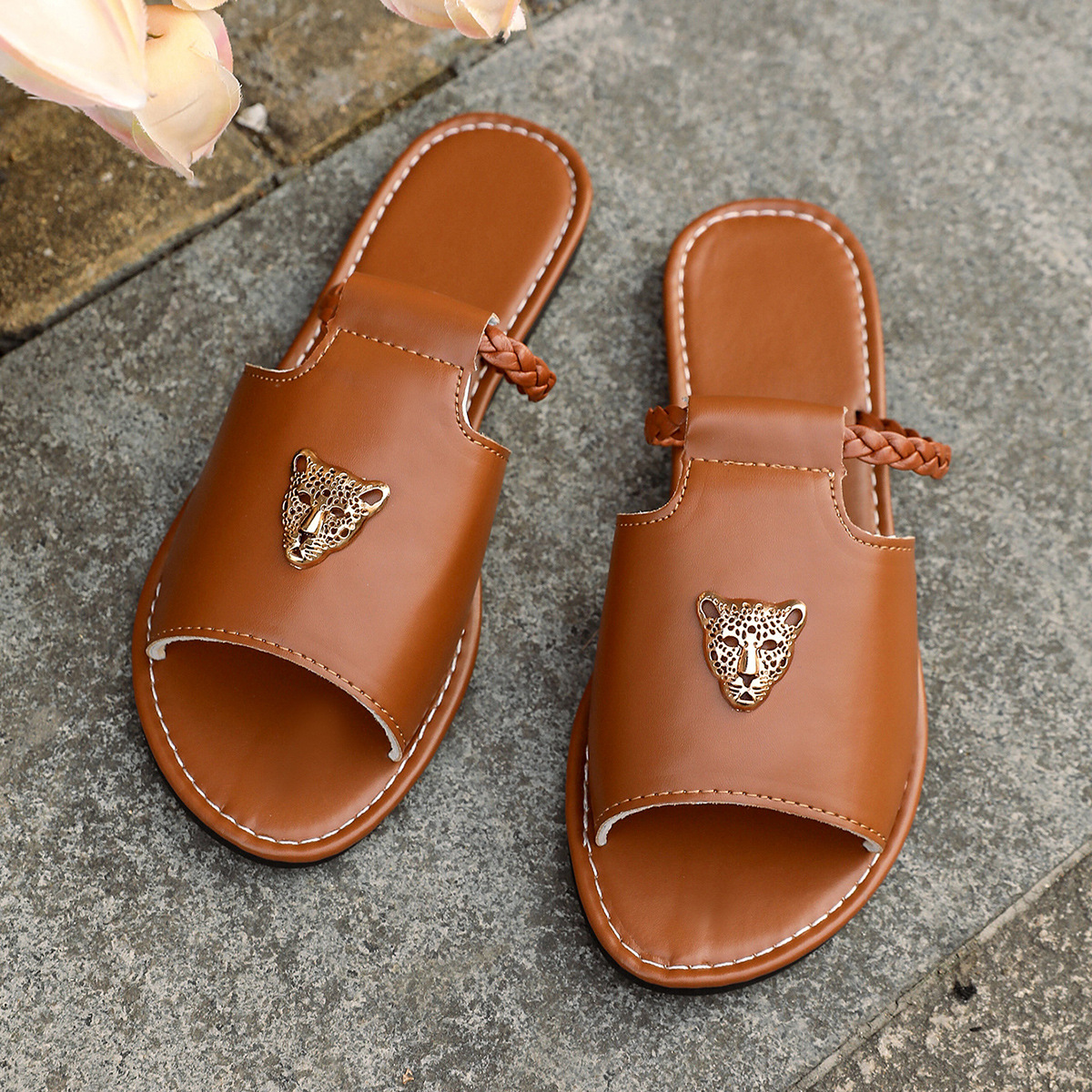 대외 무역 플러스 사이즈 여성 플랫 샌들과 슬리퍼 2025 봄과 여름 새로운 중공 디자인 단색 생선 입 여성 신발 도매