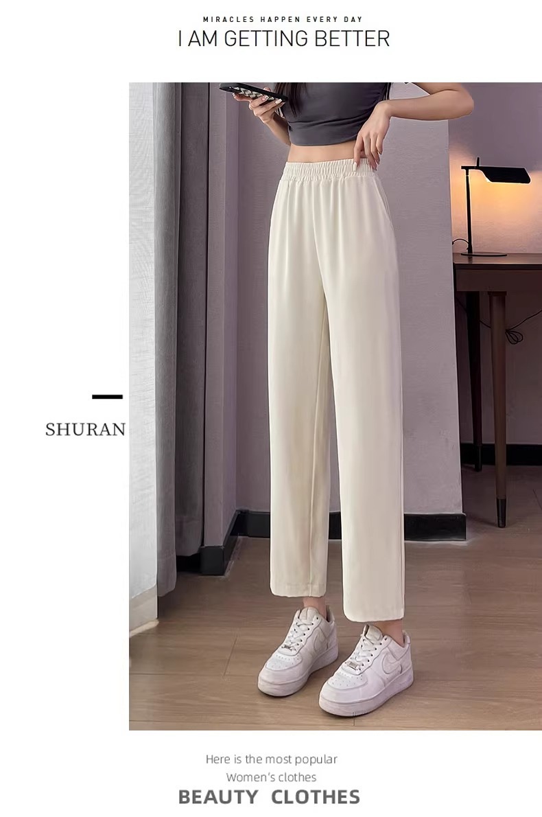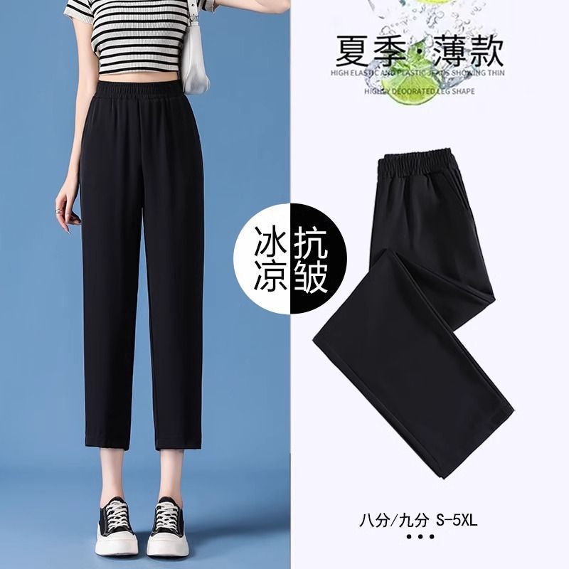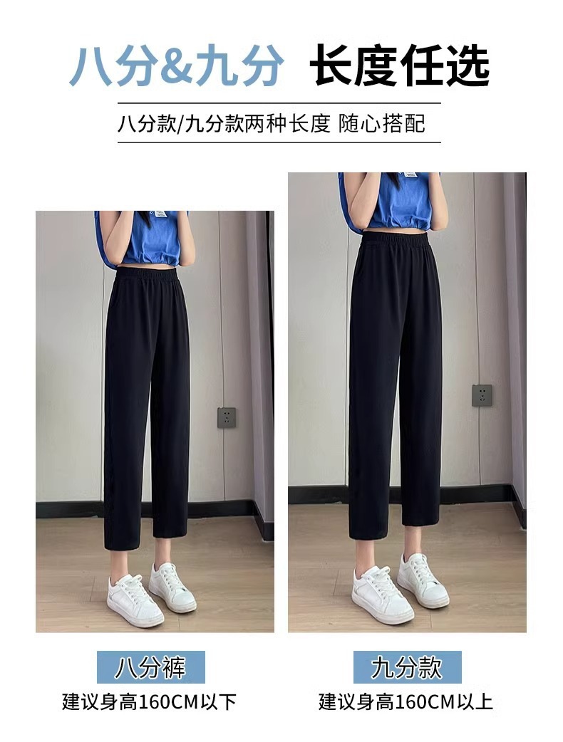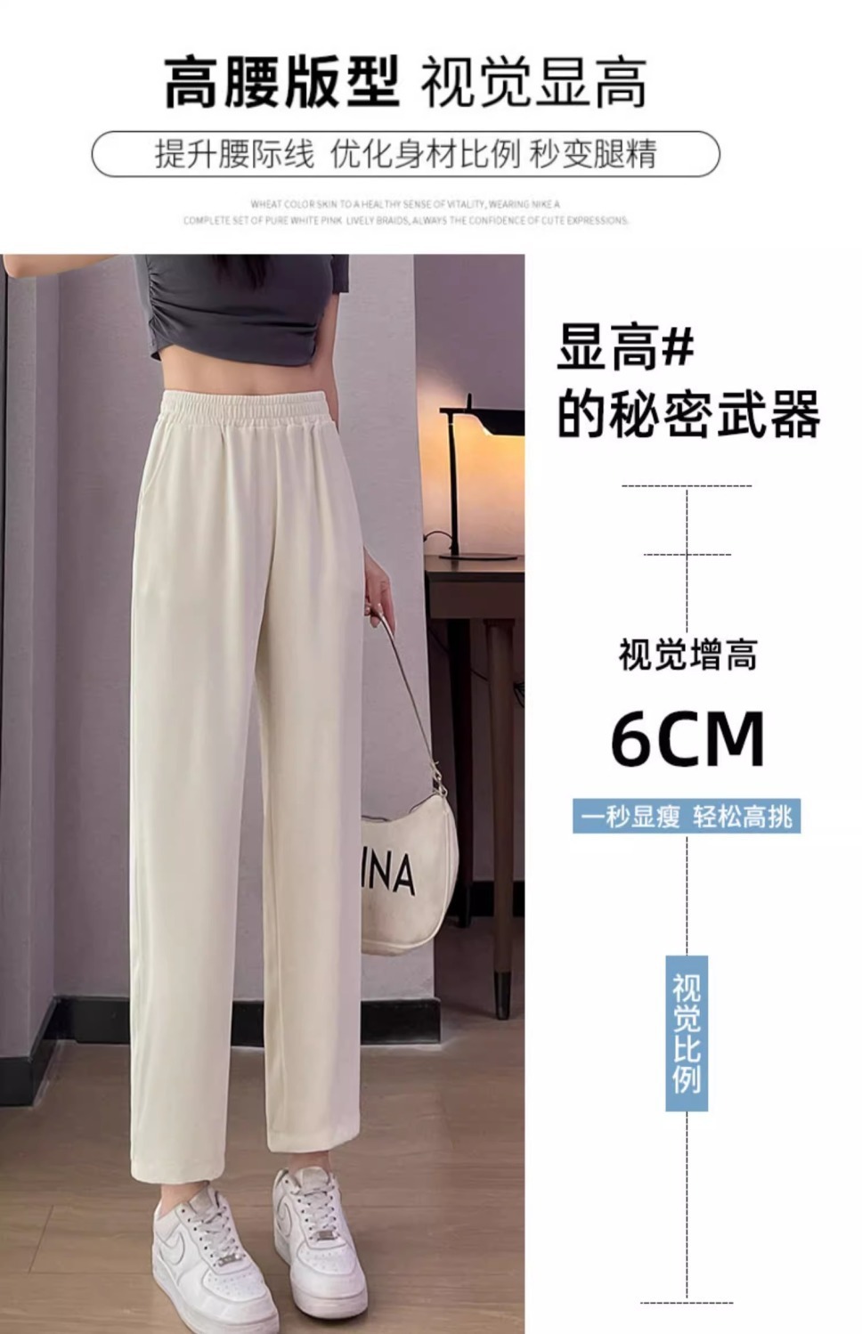 여름 얇은 8 점 쿨 아이스 실크 바지 여성의 작은 느슨한 자른 바지 높은 허리 슬리밍 스트레이트 파이프 바지스토어 가기