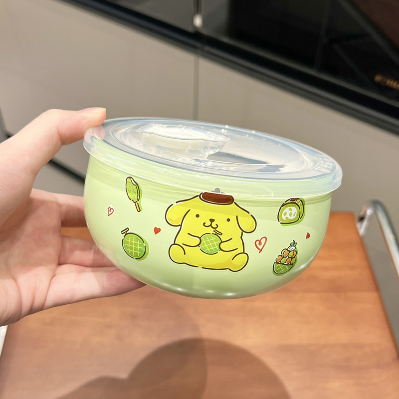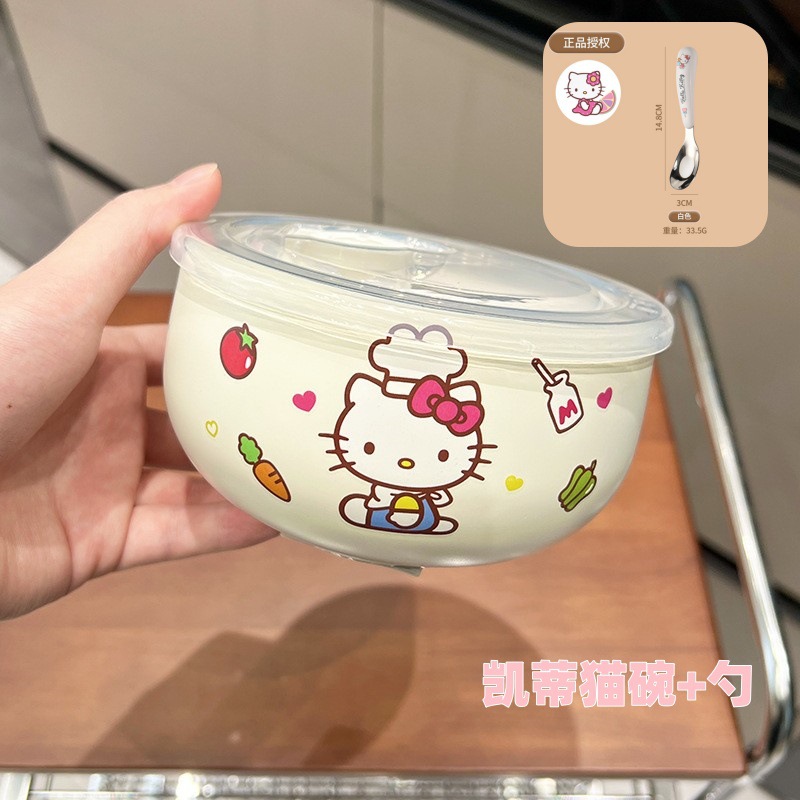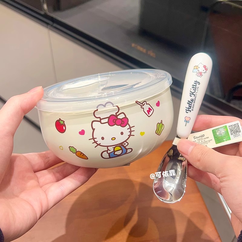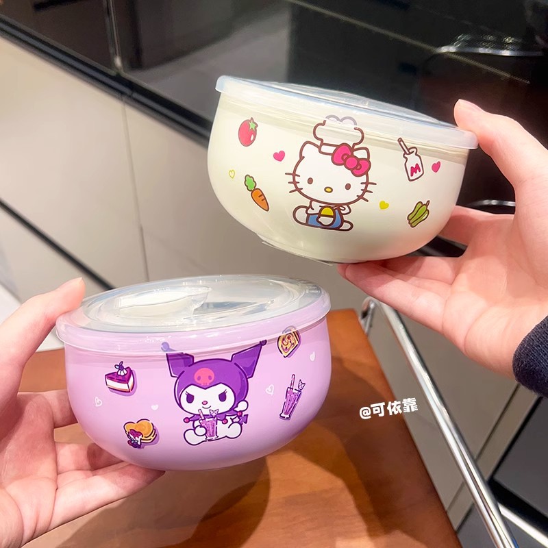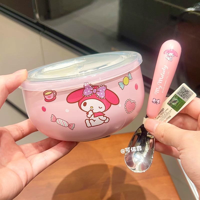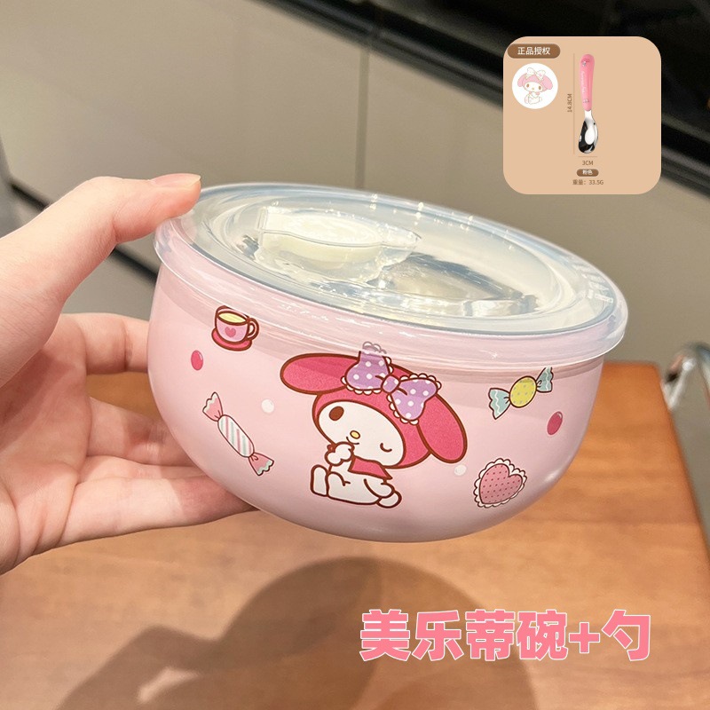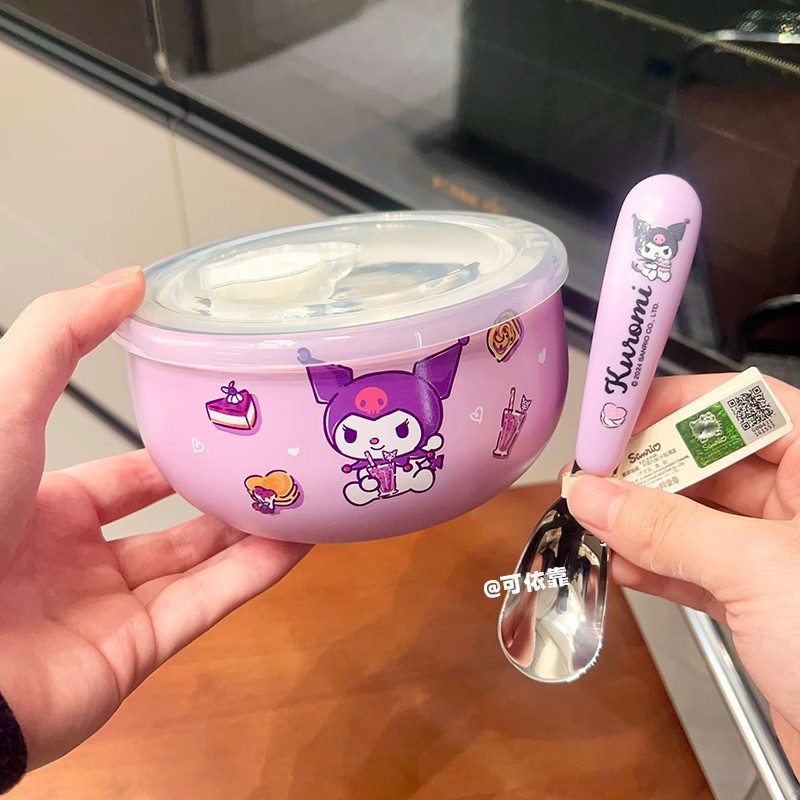 만화 Sanrio 316 스테인레스 스틸 그릇 어린이 가정용 쌀 그릇 Kulomi 학생 사무실 학생 국수 그릇 뚜껑