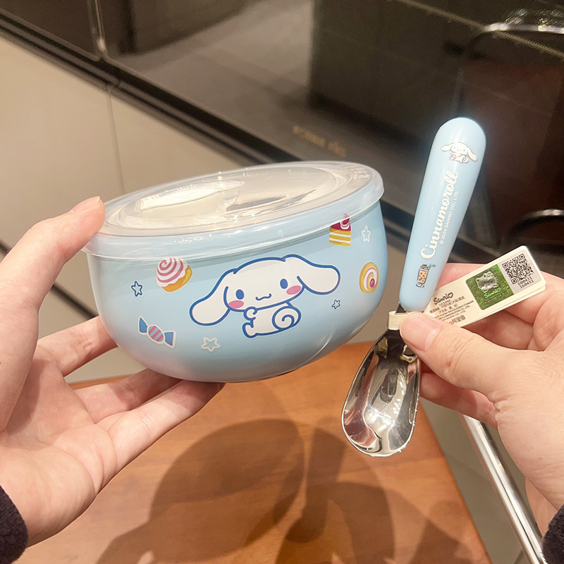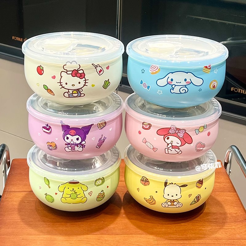 만화 Sanrio 316 스테인레스 스틸 그릇 어린이 가정용 쌀 그릇 Kulomi 학생 사무실 학생 국수 그릇 뚜껑스토어 가기