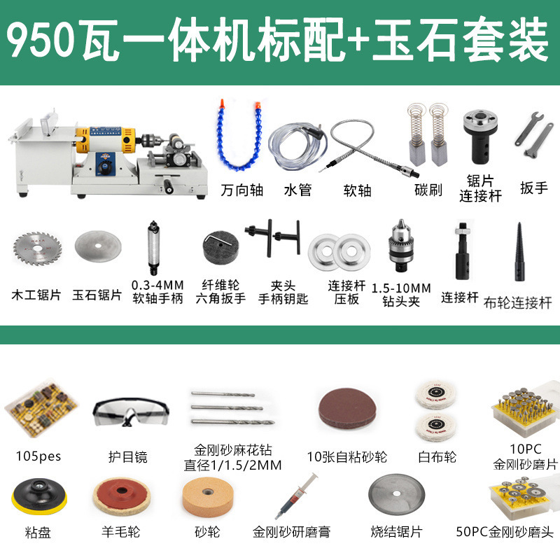 • 950W 메인 머신 + 왼쪽 연삭 휠 + 오른쪽 천 휠 * 2